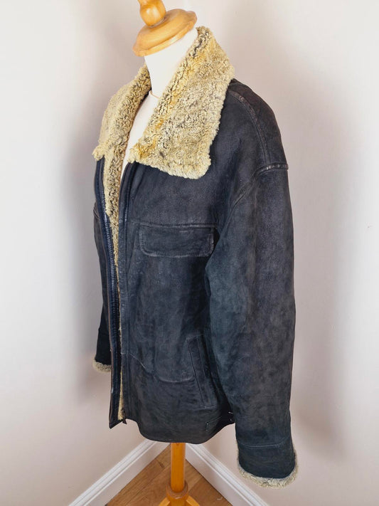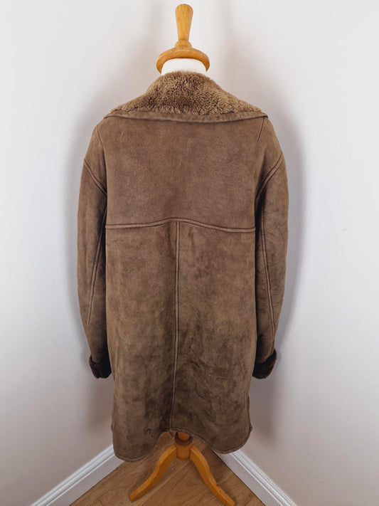 Mens 1970s Suede Sheepskin Coat L XL
