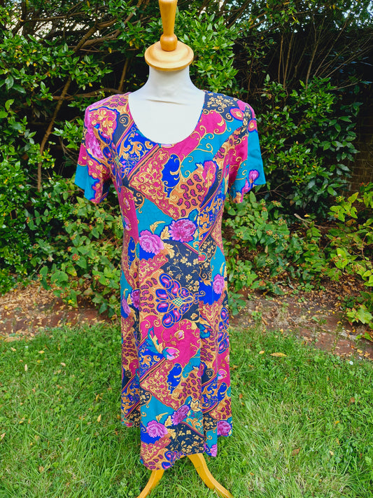 Vintage 1980s Funky Midi Slip Dress With Slits S UK10