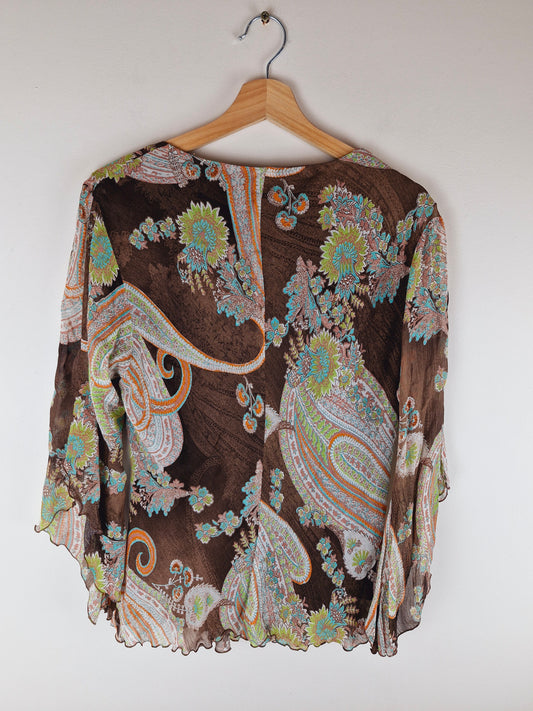 Vintage 90s Beach Wrap Midi Viscose Skirt L
