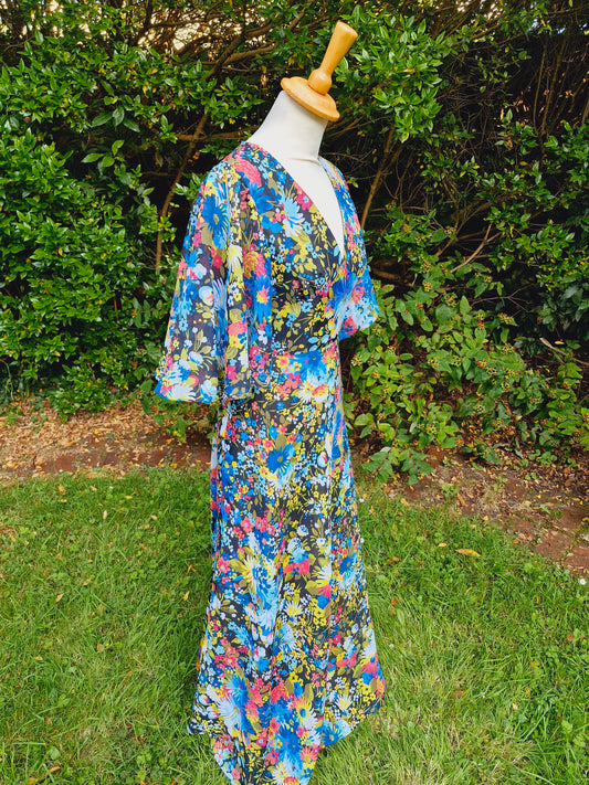 Vintage 1970s Handmade Flared Sleeve Maxi Dress XS