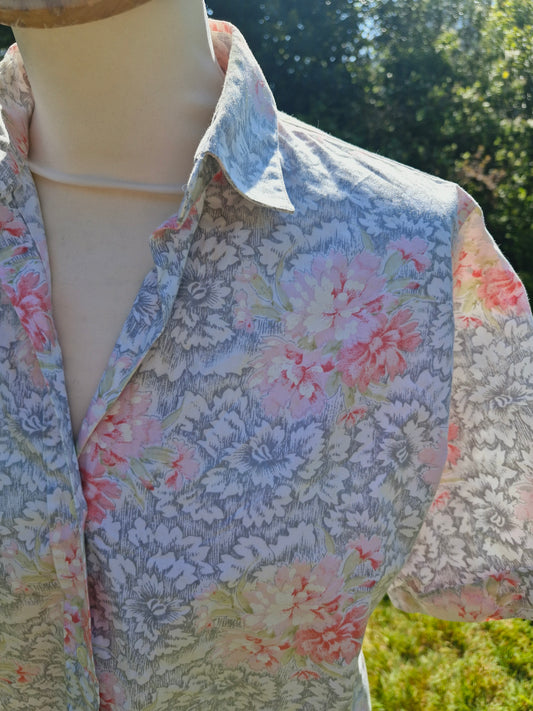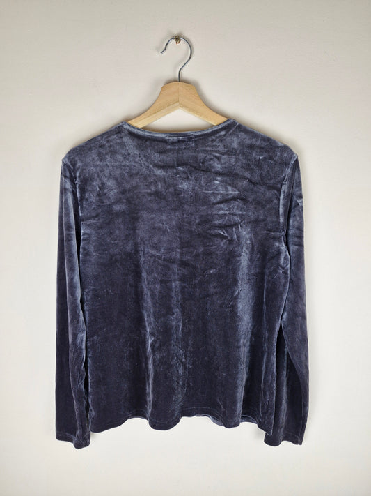 Vintage 90s Grey Silver Velvet Long Sleeve Top Cardigan M