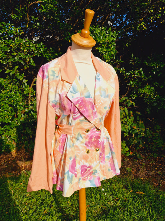 Vintage Blue Black Metallic Leather Jacket Coat L