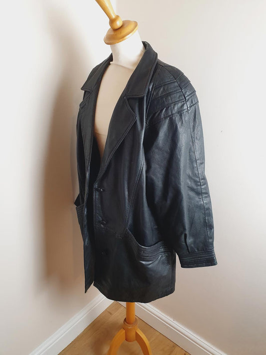 1980s Leather Coat XL UK16