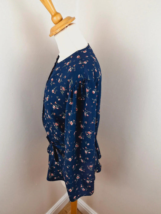 Blue Floral Summer Shirt Top Blouse L