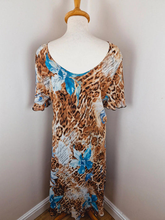 Womens Vintage 90s Long Midi Maxi Slip Dress Leopard Print Viscose L