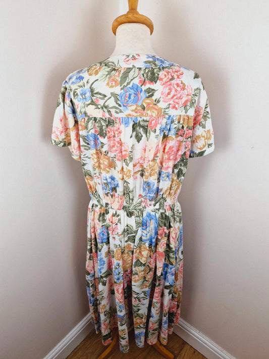 Womens Vintage St Michael Viscose Cotton Long Midi Cottagecore Dress XL