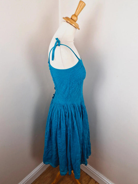 Womens Vintage 1970s 70s Indian Cotton Strappy Boho Turquoise Dress XS