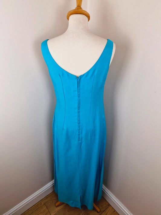 Womens Vintage 60s 1960s Turquoise Long Maxi Dress Embroidered Beaded S