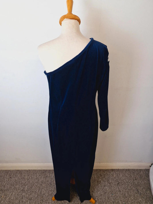 Womens Vintage One Shoulder Long Maxi Velvet Dress L