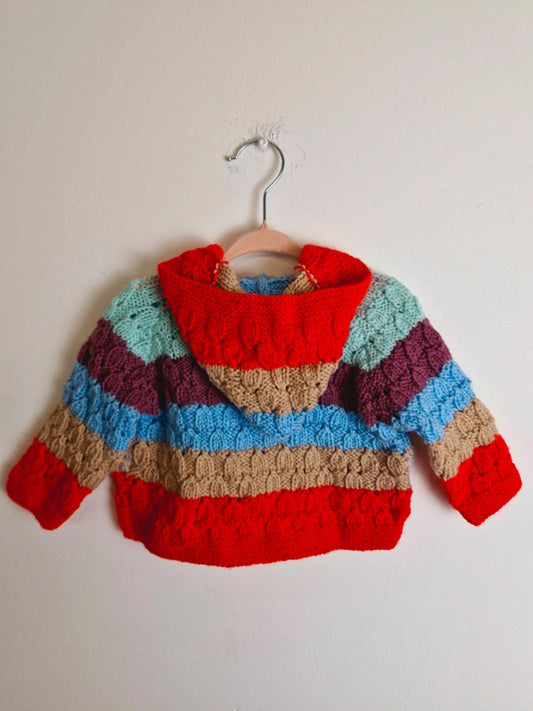 Vintage Kids Baby Girls Handknitted Cardigan Hoody Jumper 18 Months 2 Years