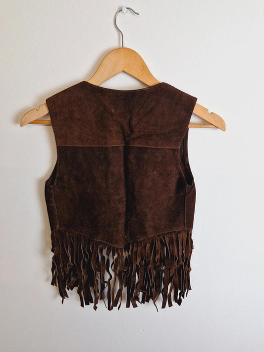 Kids Girls Boys Vintage 1970s 70s Suede Tassel Fringe Waistcoat Boho 6 yrs