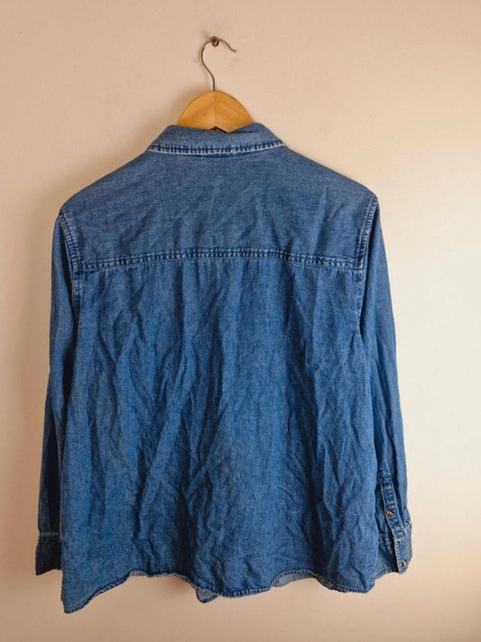 Womens Vintage Christmas Long Sleeve Embroidered Denim Shirt Top Blouse Cotton XL