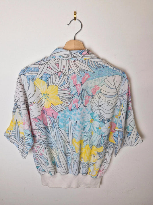 Womens Vintage Funky Retro Cropped Top Shirt Blouse Tshirt S