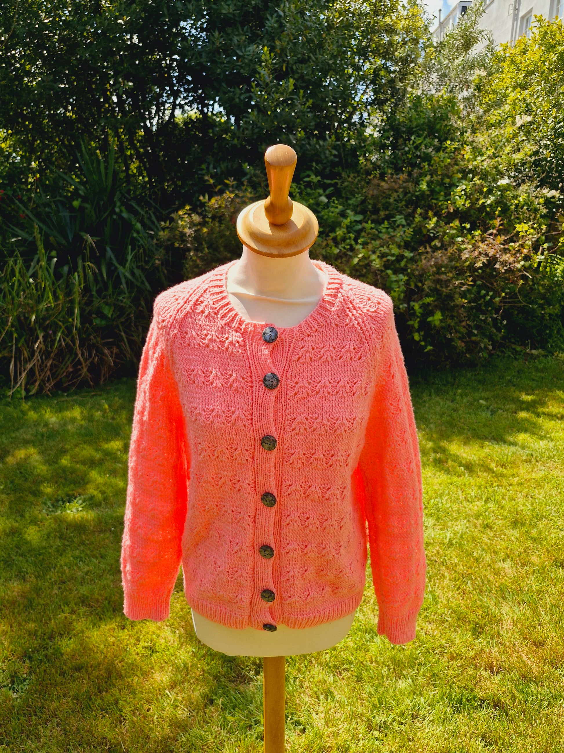 Handknitted Pink Vintage Cardigan Jumper Sweater L
