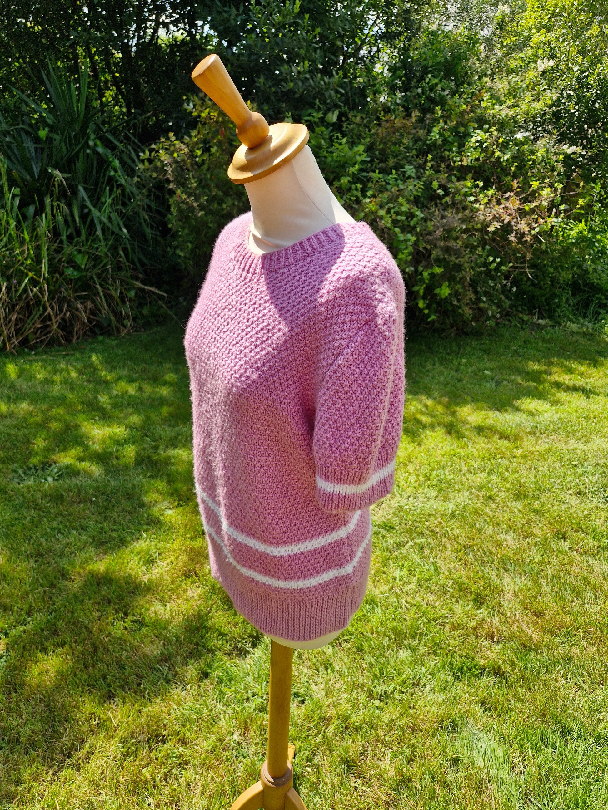 Handknitted Vintage Short Sleeve Pink Lilac Jumper M L