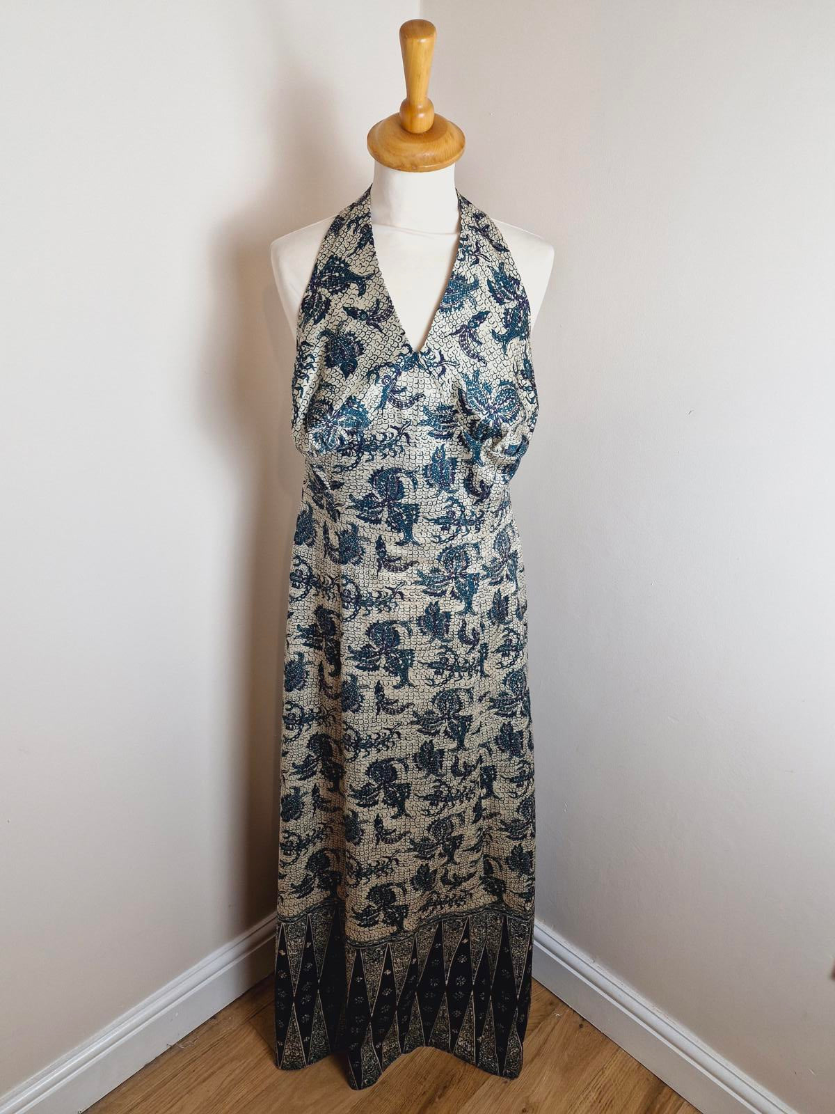 Vintage 1970s 70s Long Maxi Dress Handmade Halterneck Boho Summer UK12 M