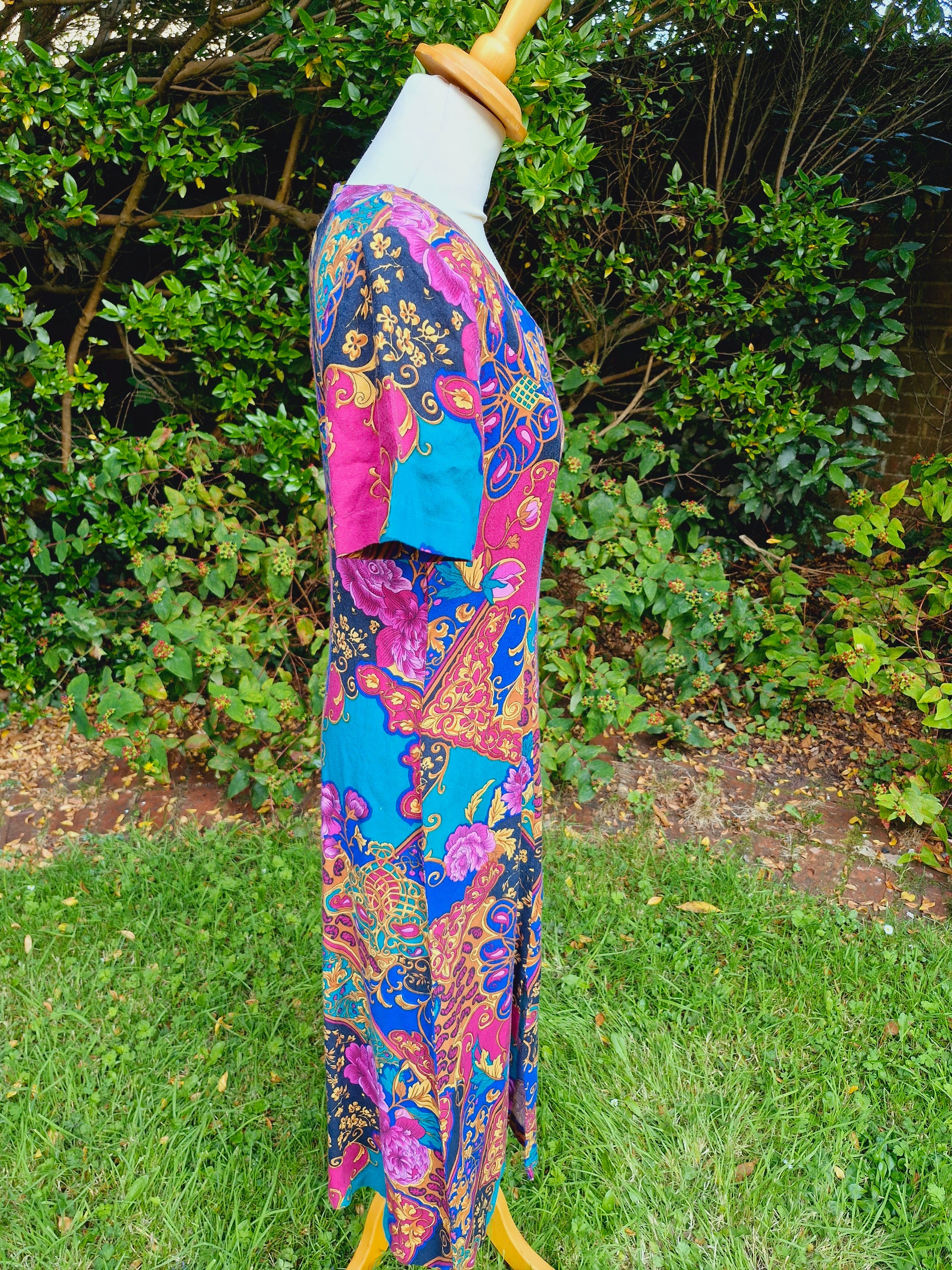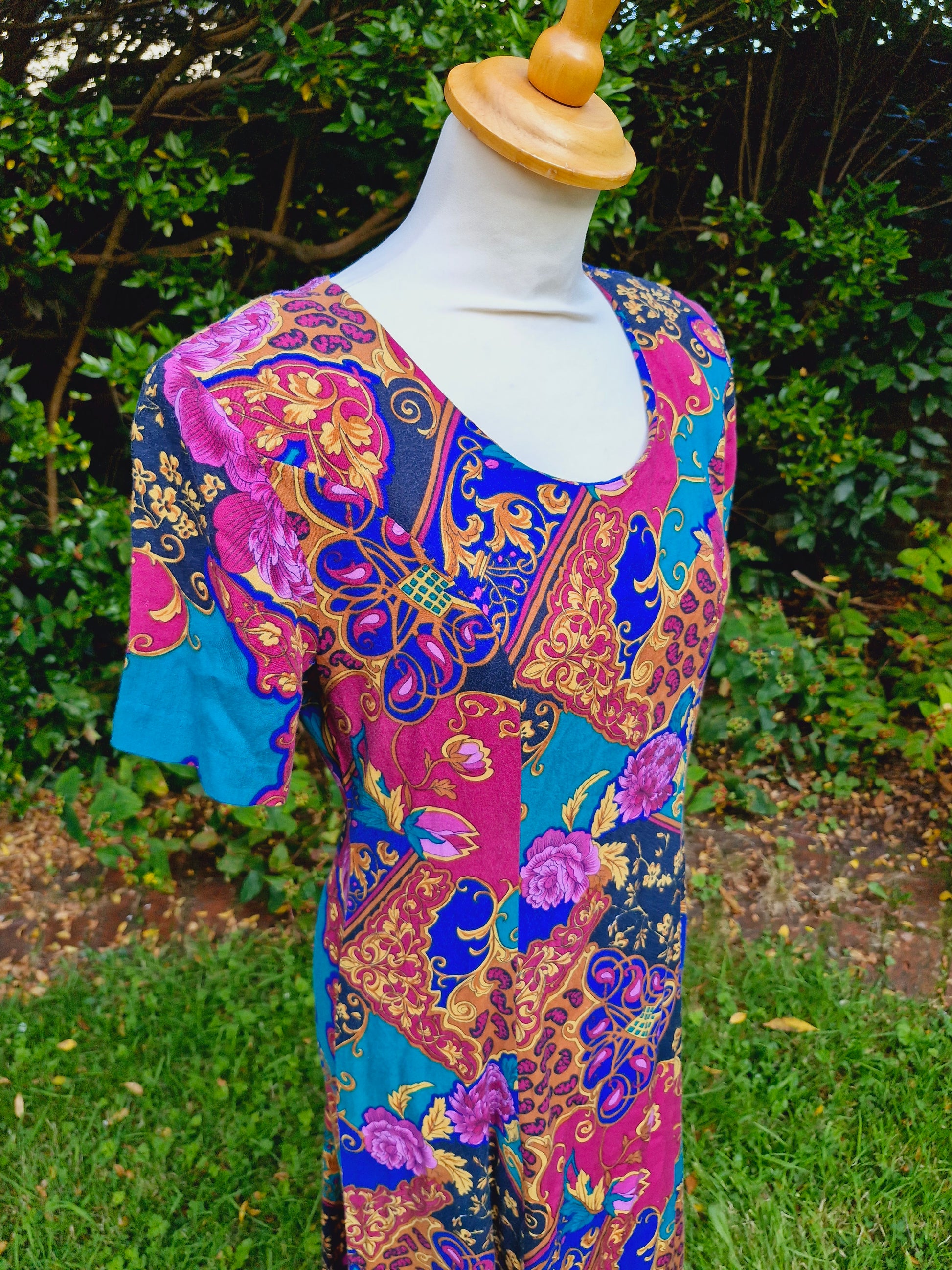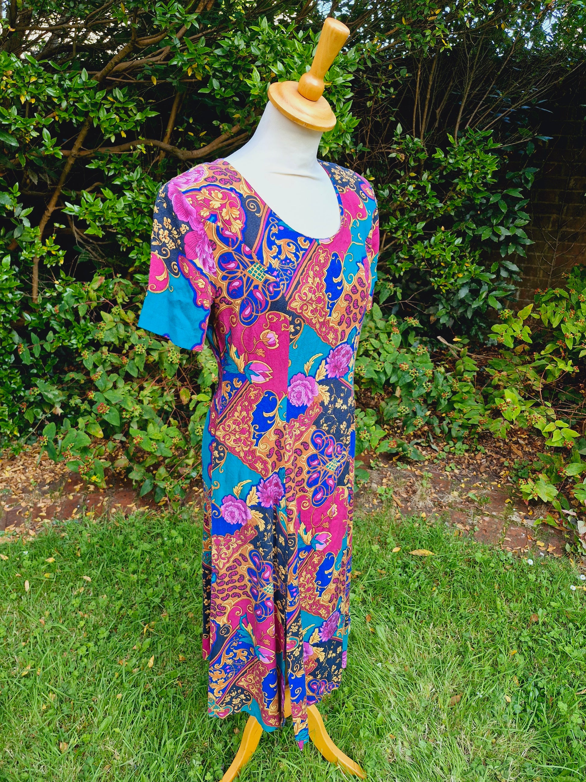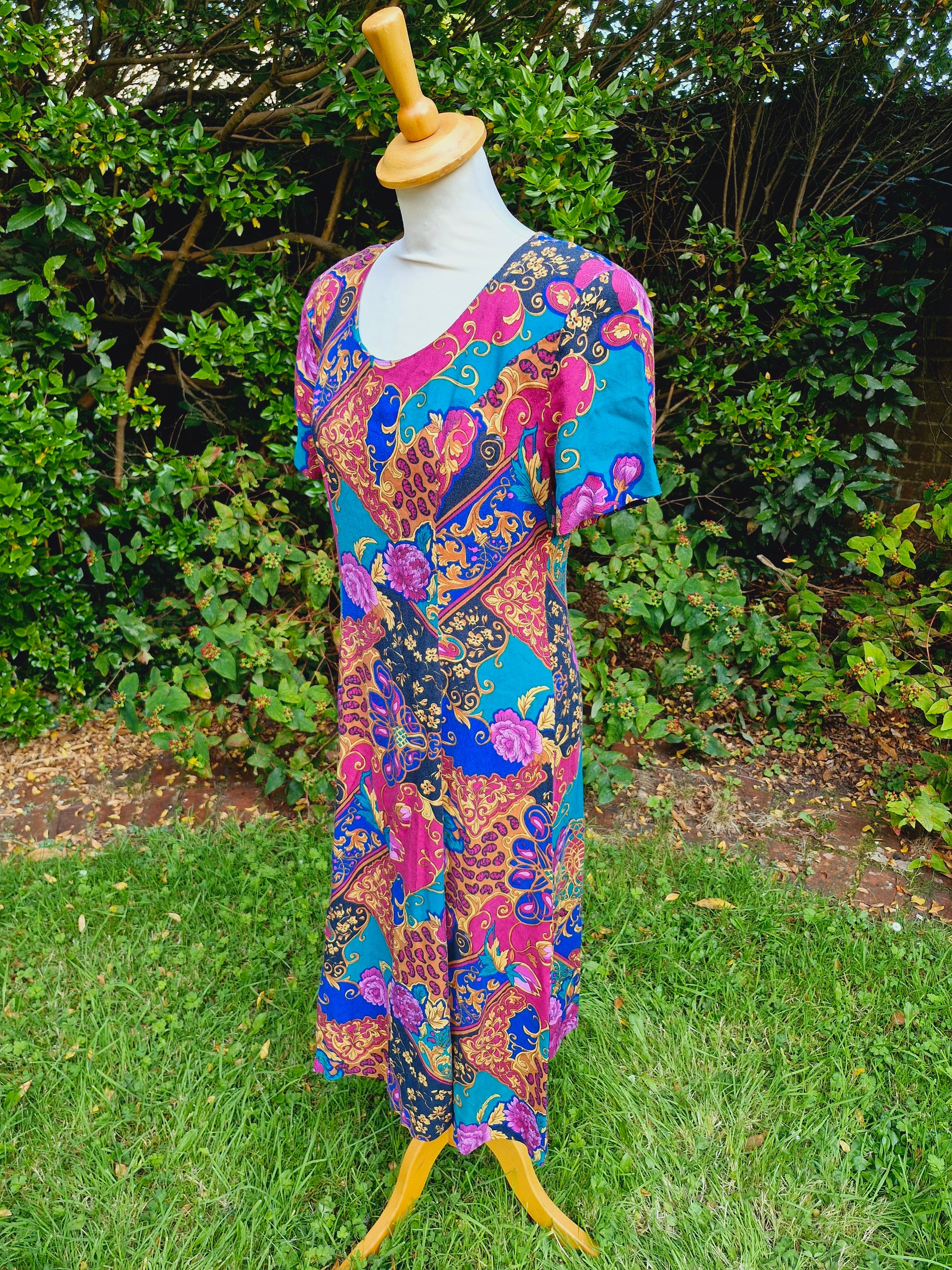Vintage 1980s Funky Midi Slip Dress With Slits S UK10