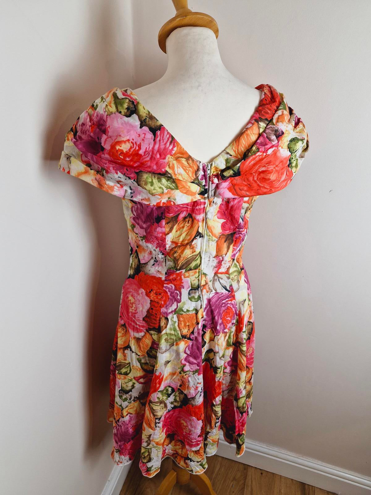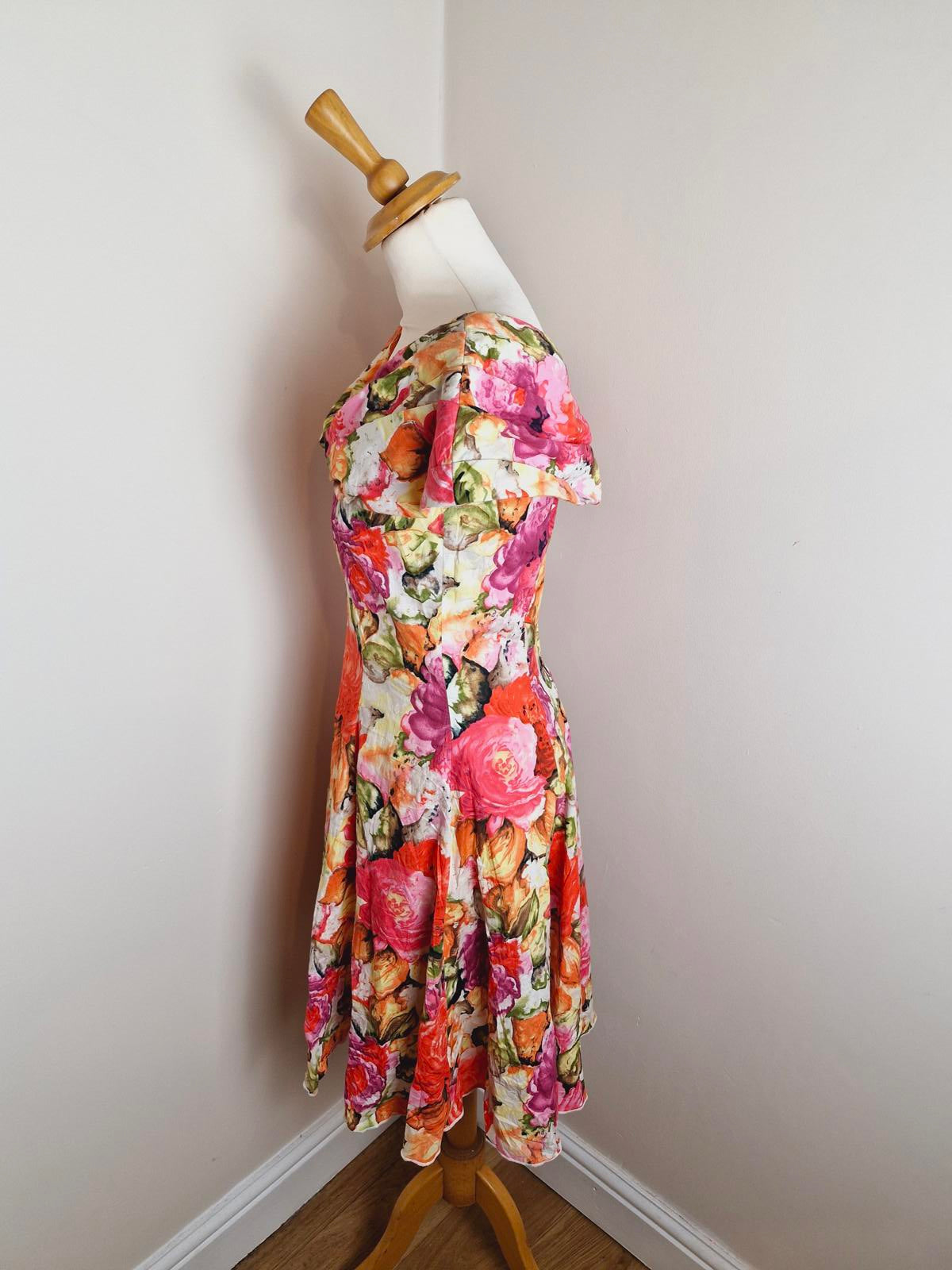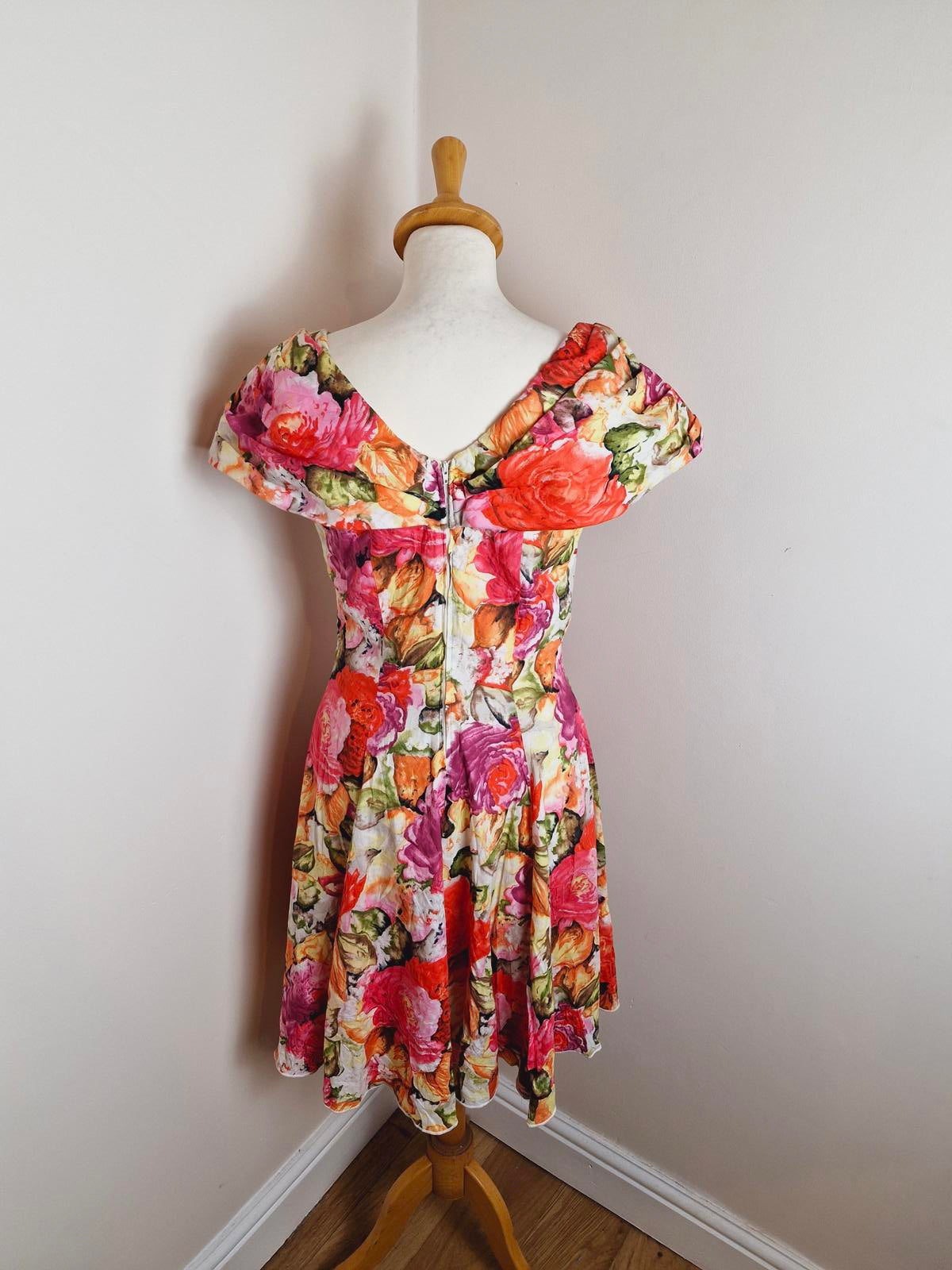Vintage 80s summer dress retro Midi off shoulder bardot retro S UK8