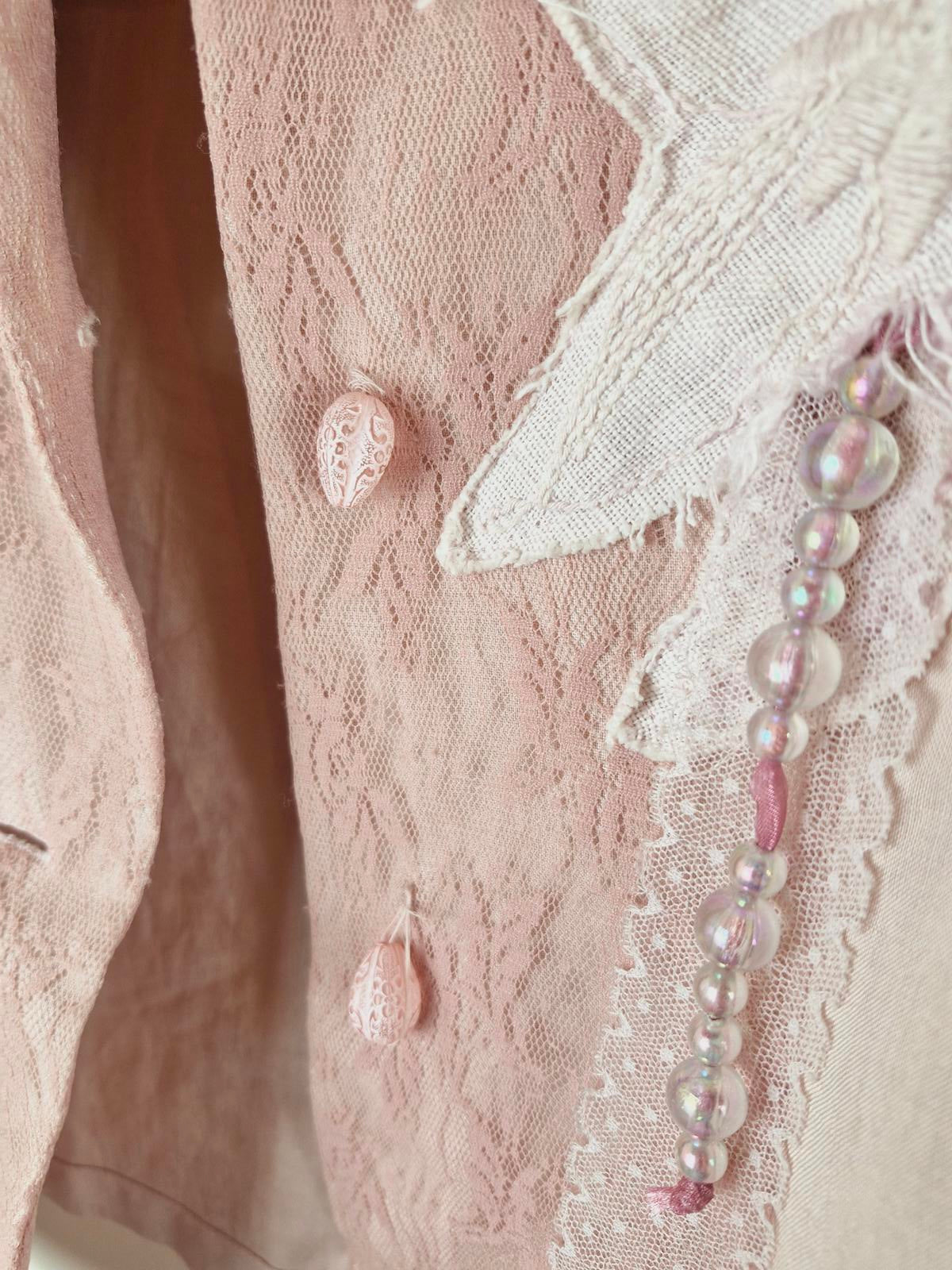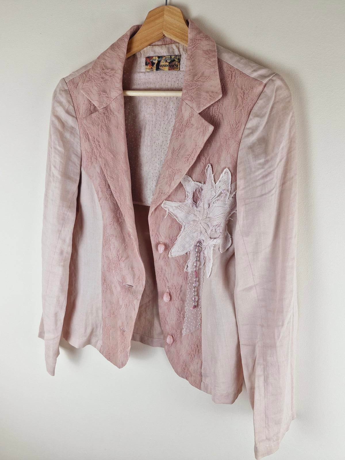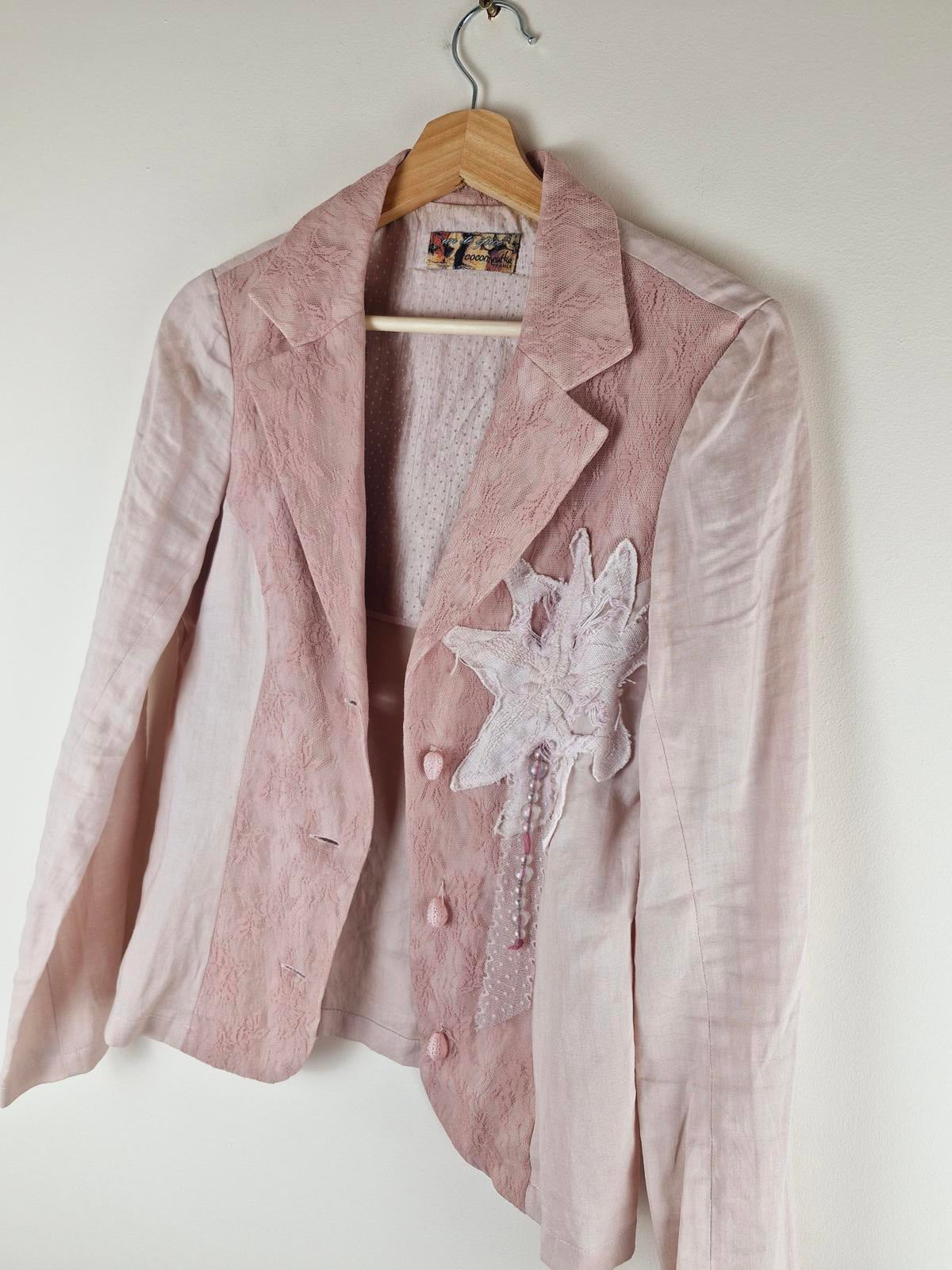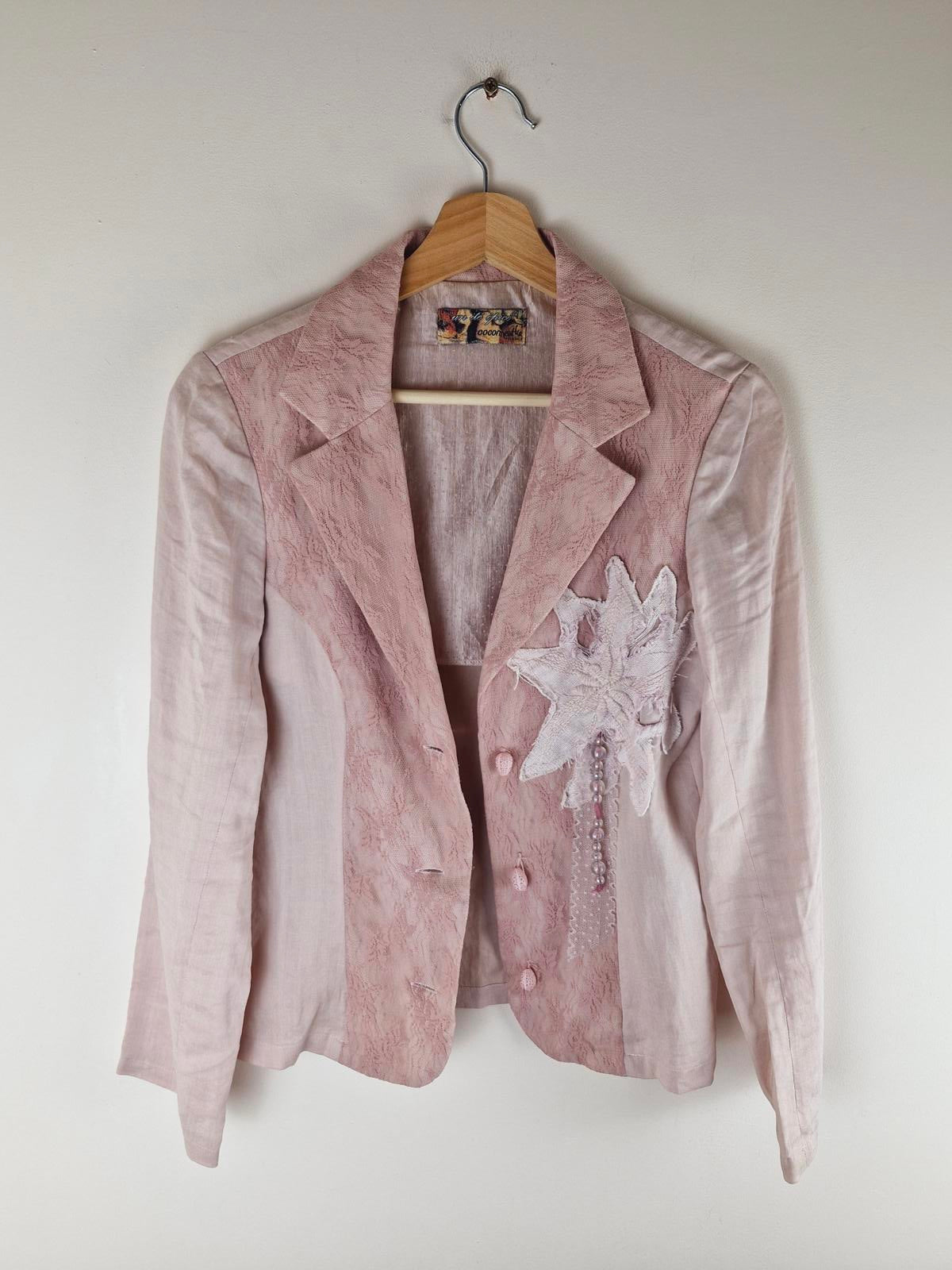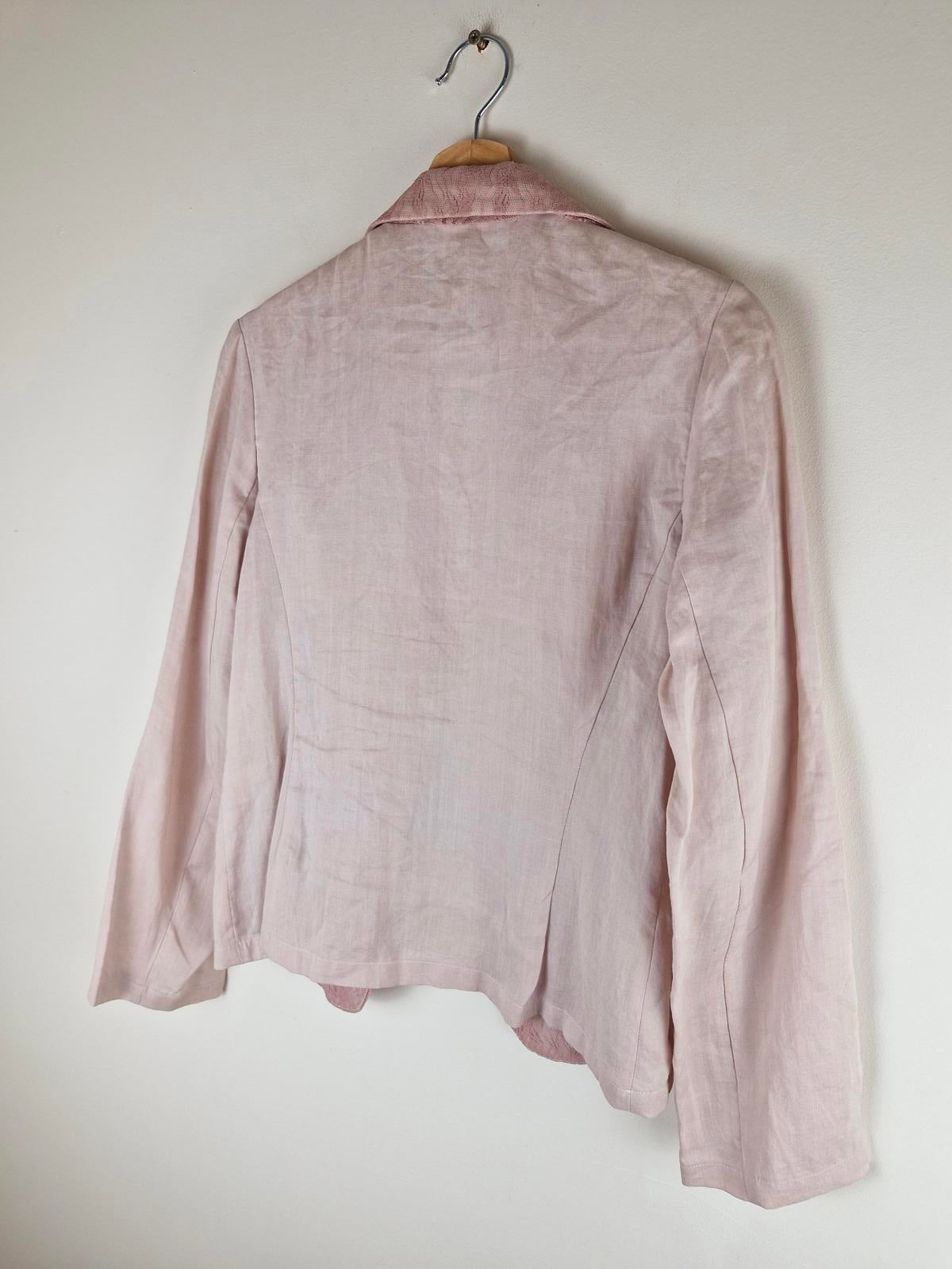 Vintage Coquette Pink Linen Blend Summer Jacket Blazer S