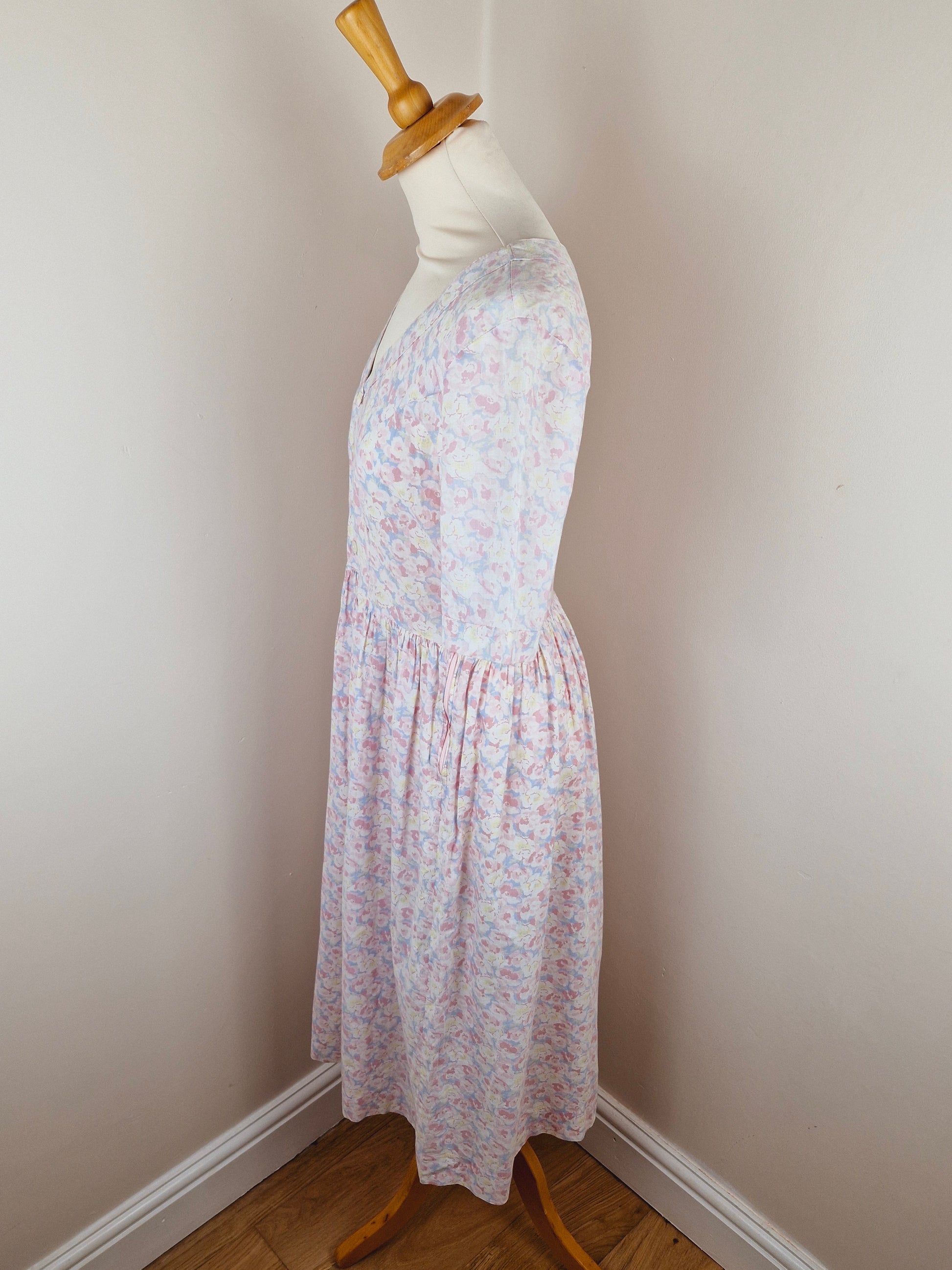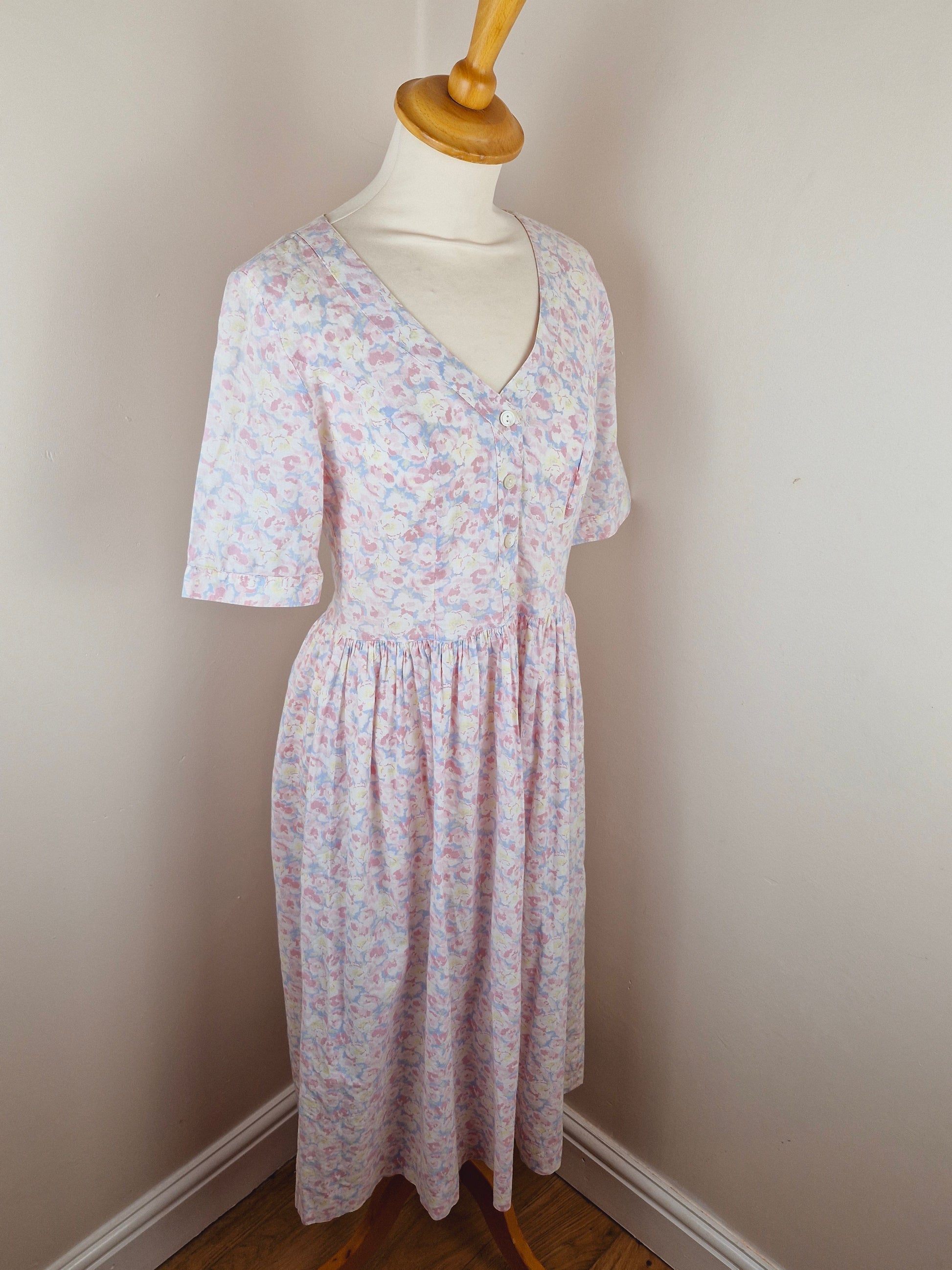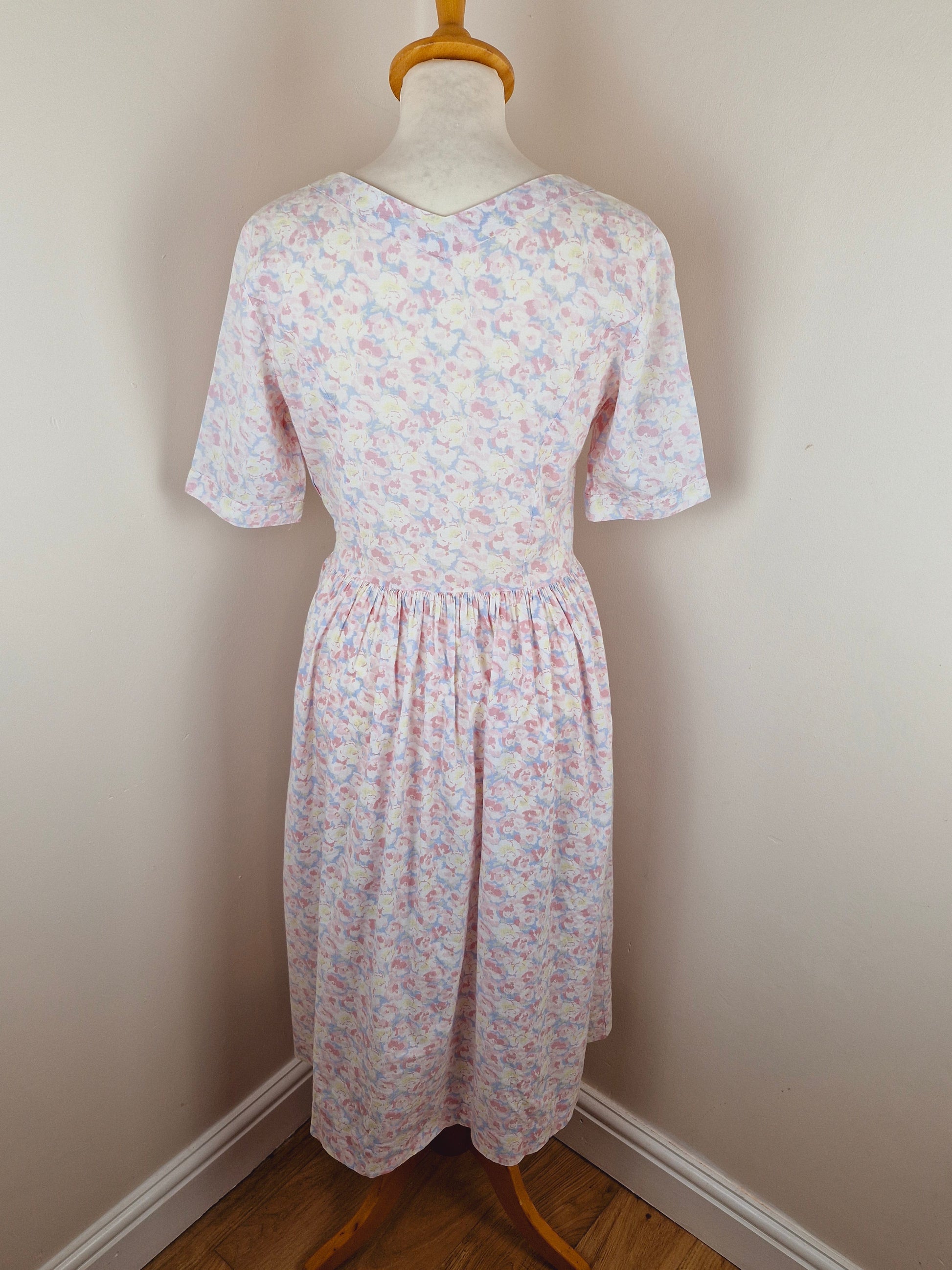 Vintage Cotton Midi Summer Pink Floral Dress S M
