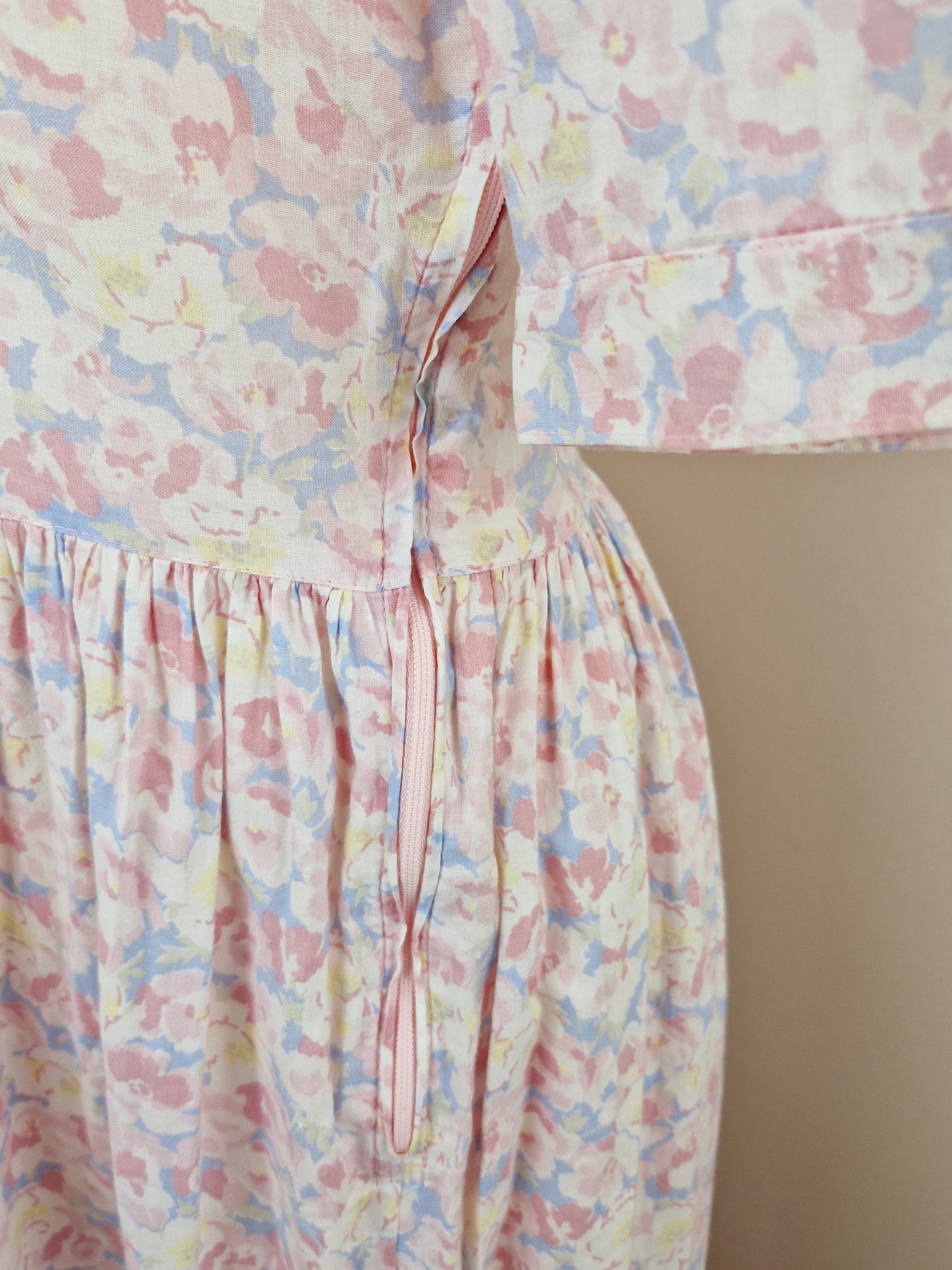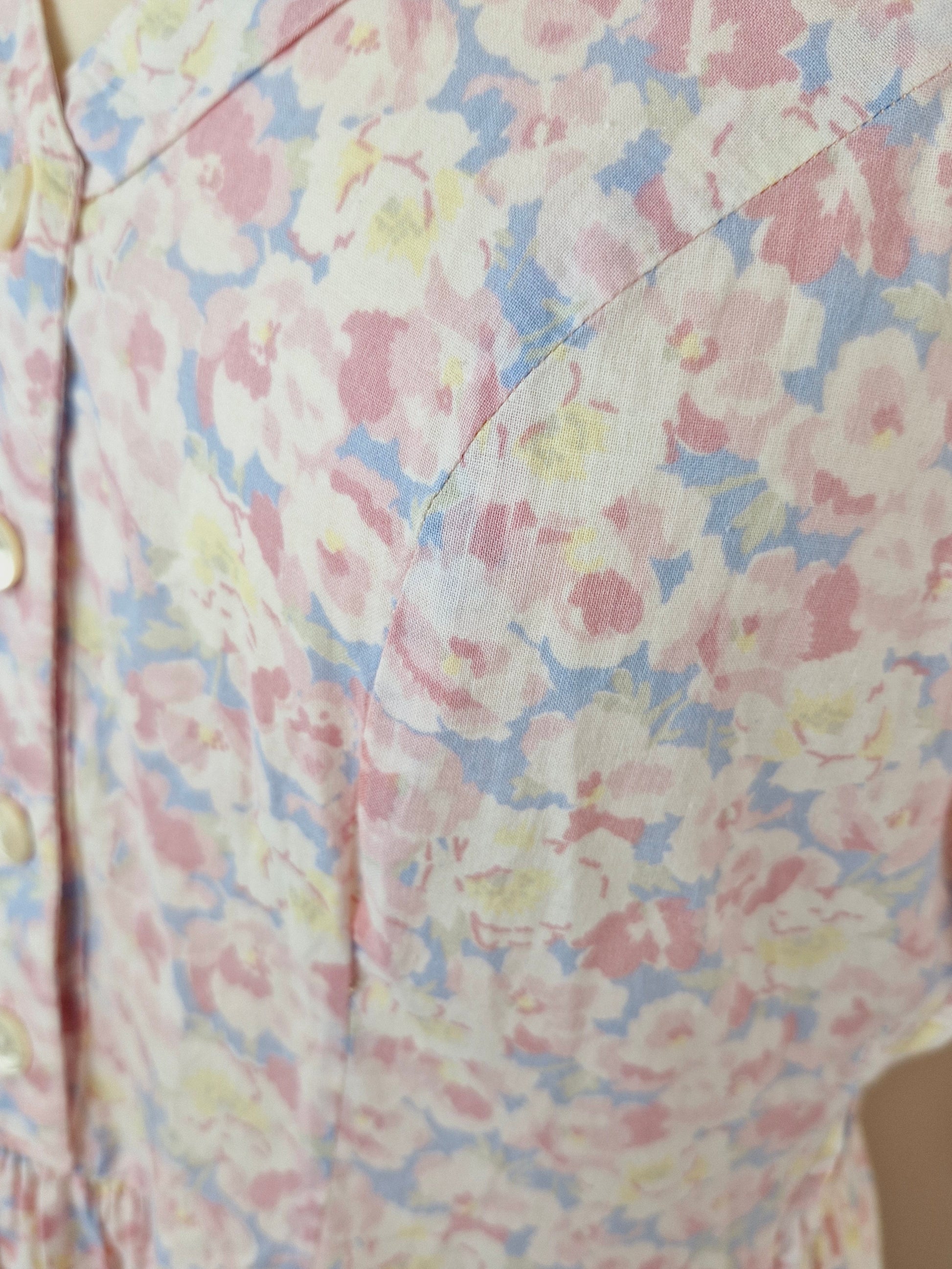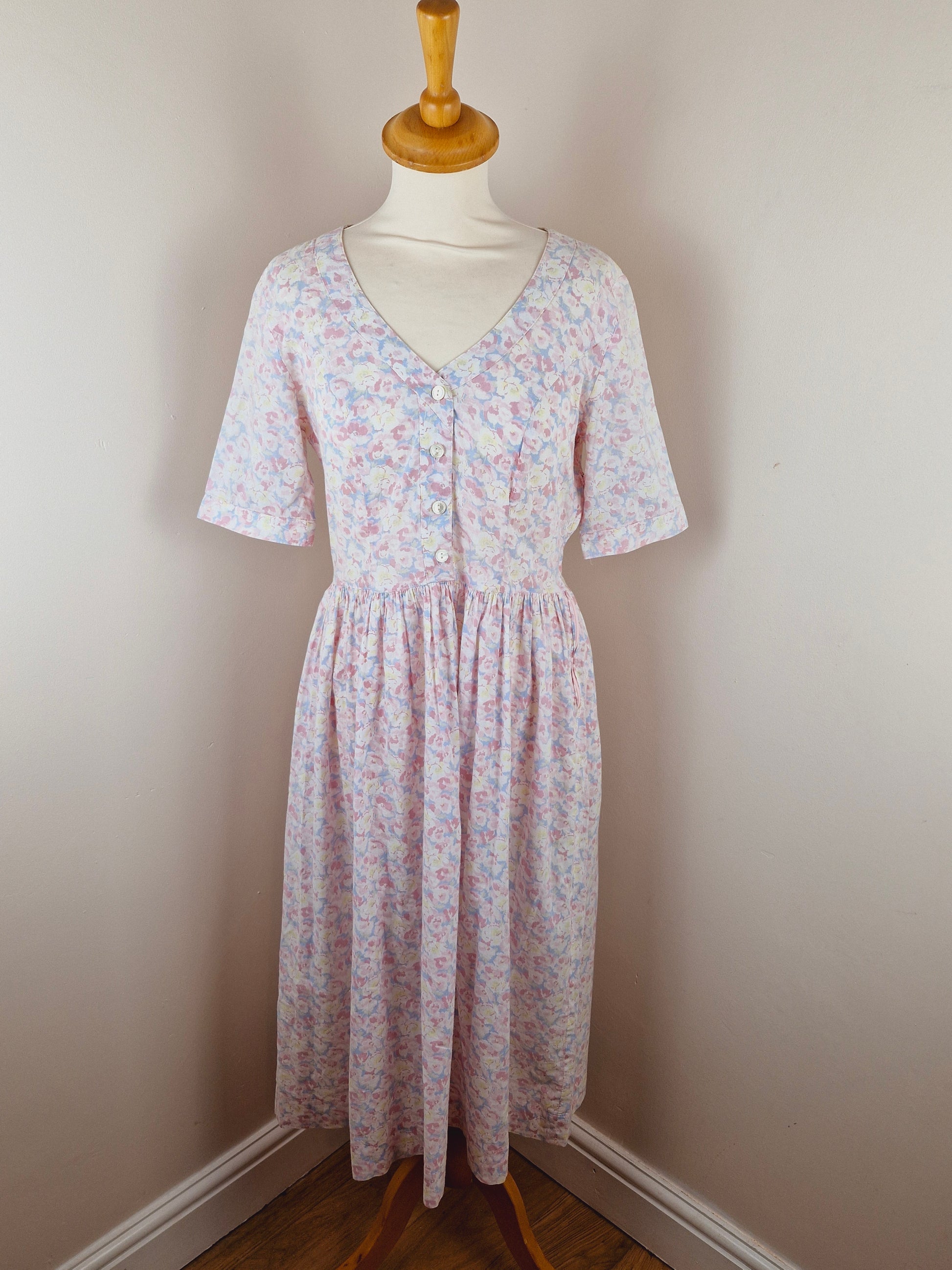 Vintage Cotton Midi Summer Pink Floral Dress S M