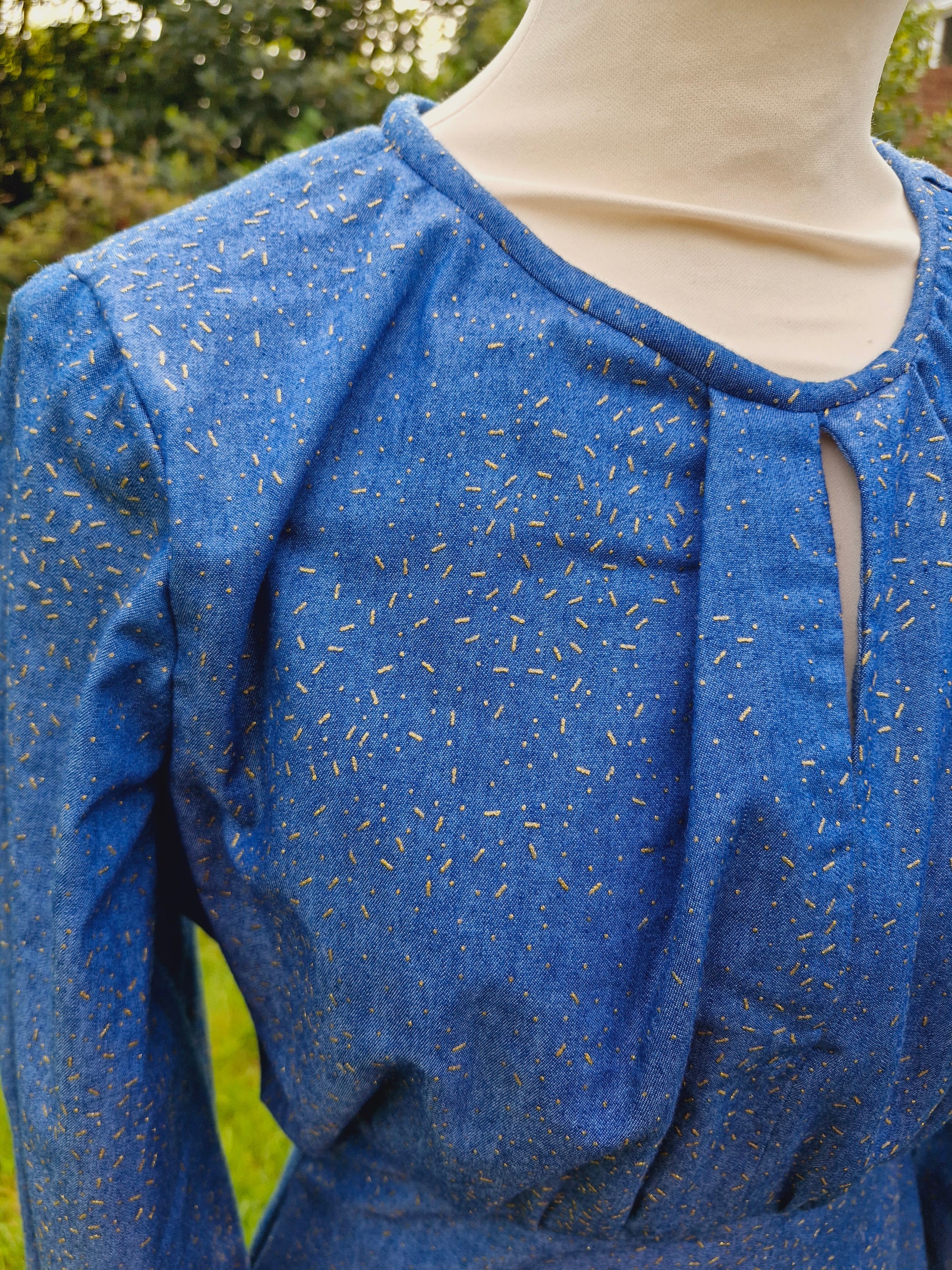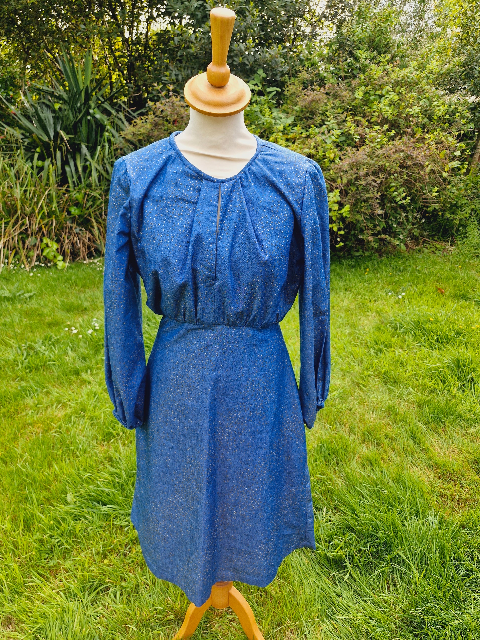 Vintage Handmade Denim Midi Long Sleeve Dress S