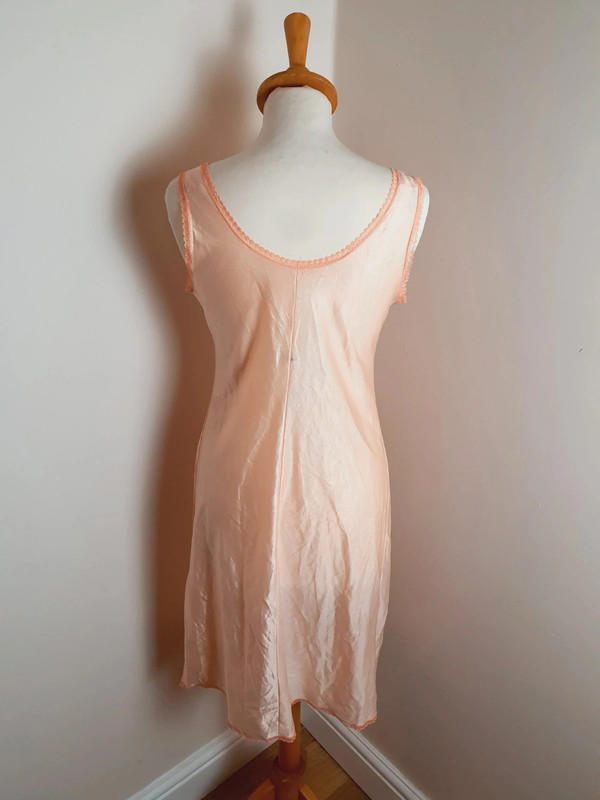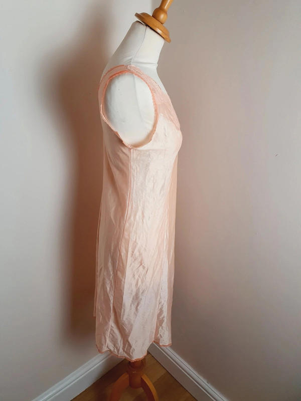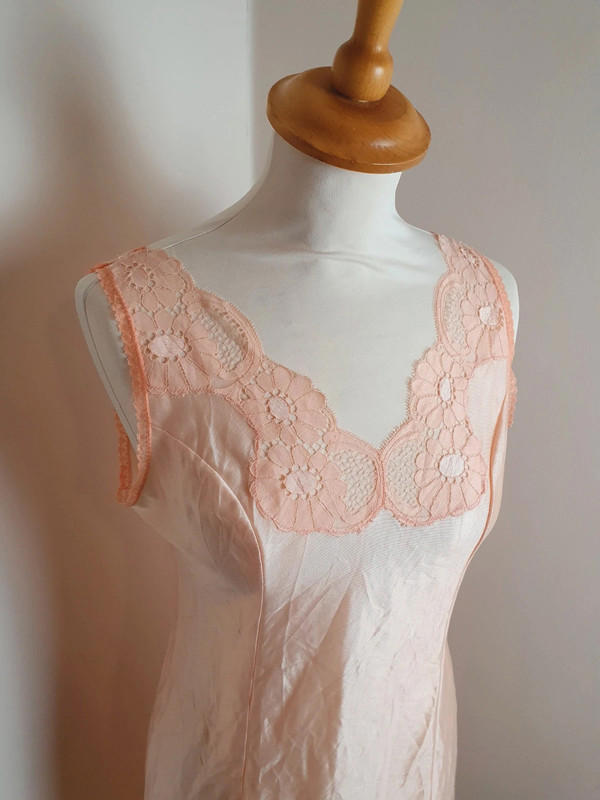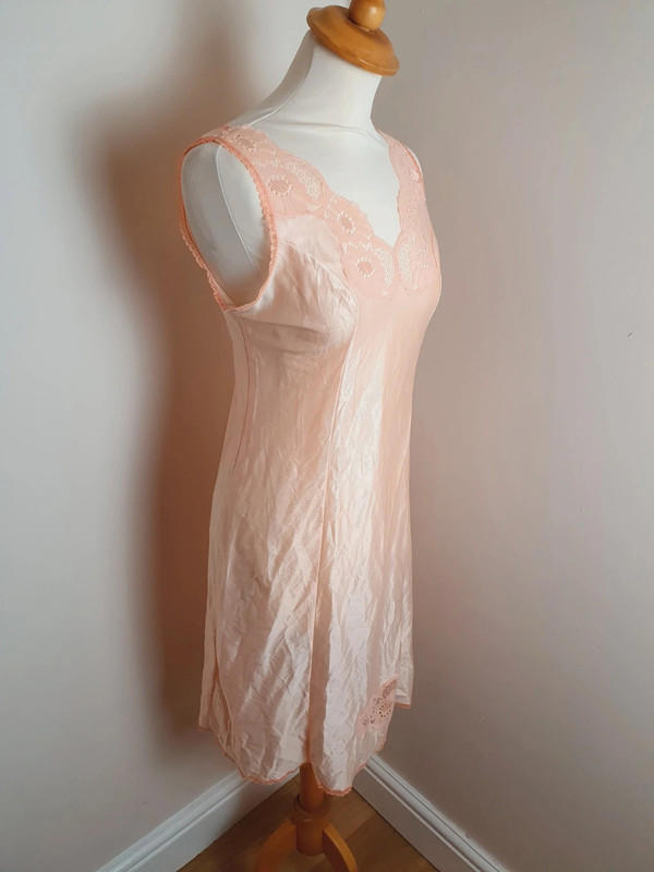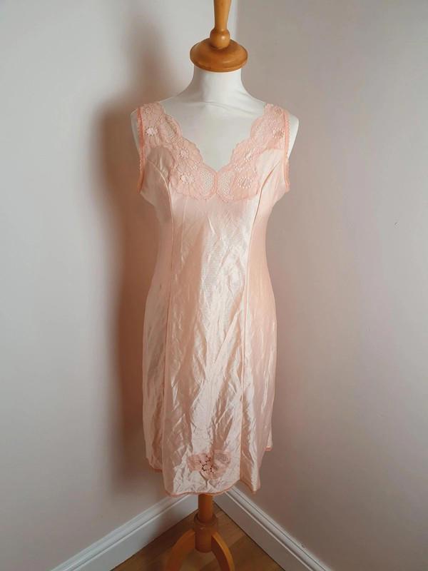 Vintage slip dress pink peach lace retro lingerie nightwear nightdress S UK8