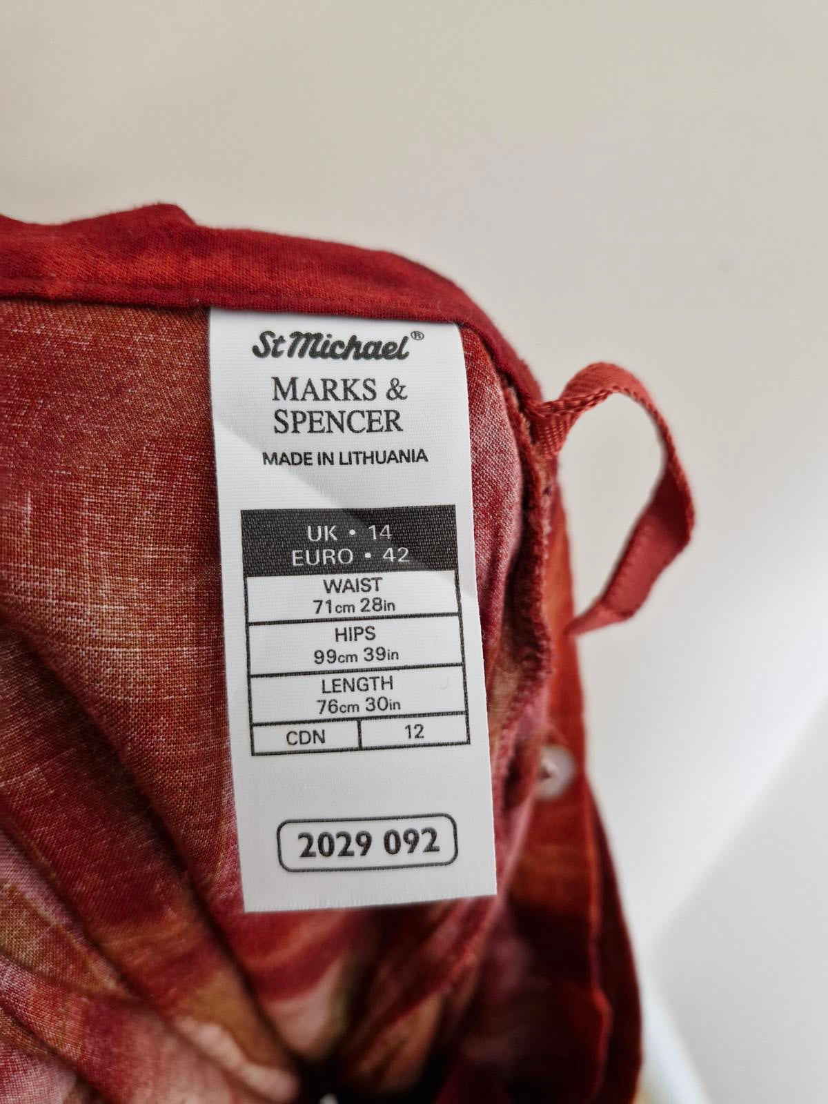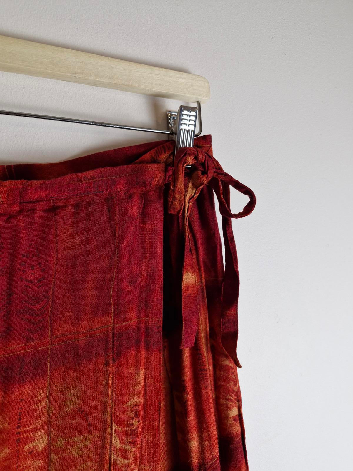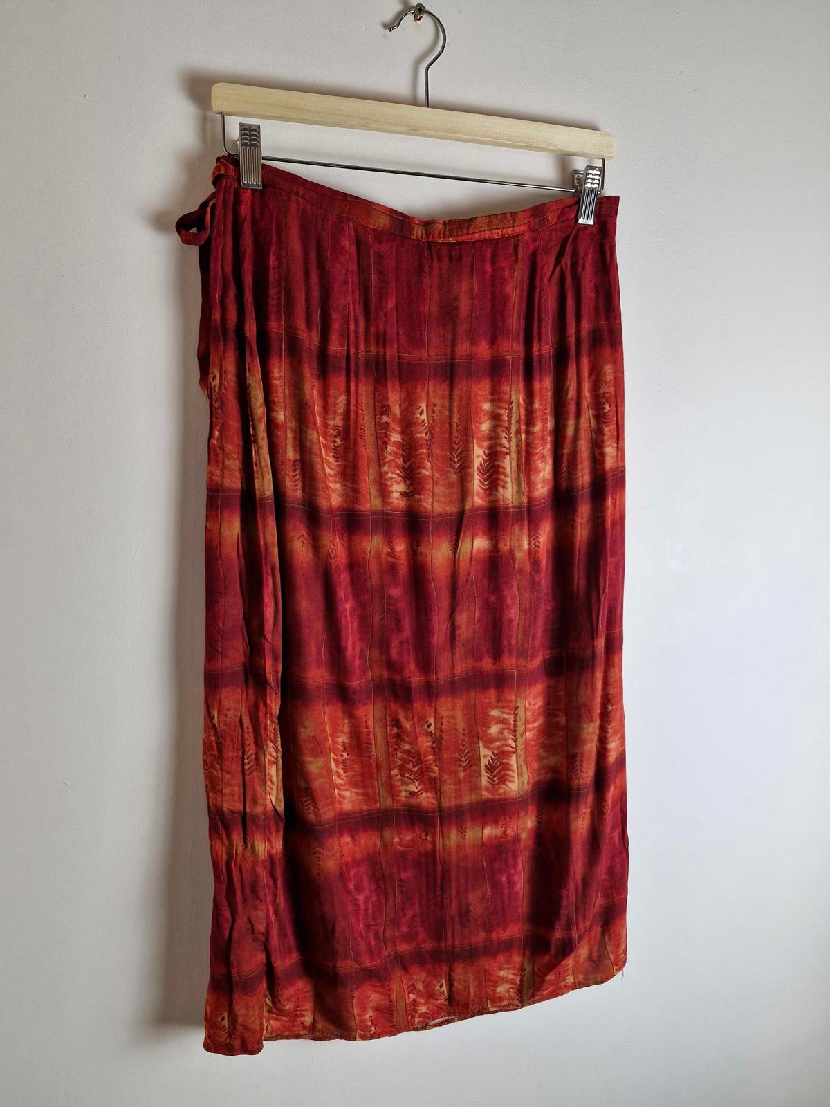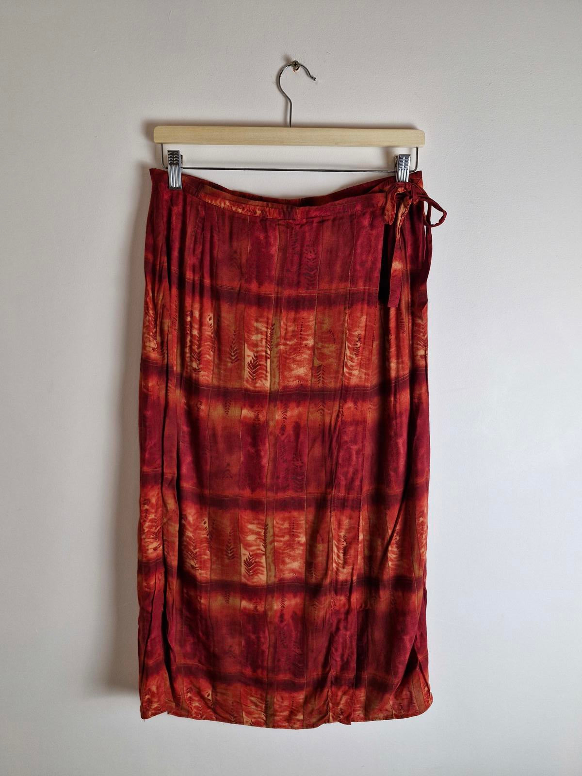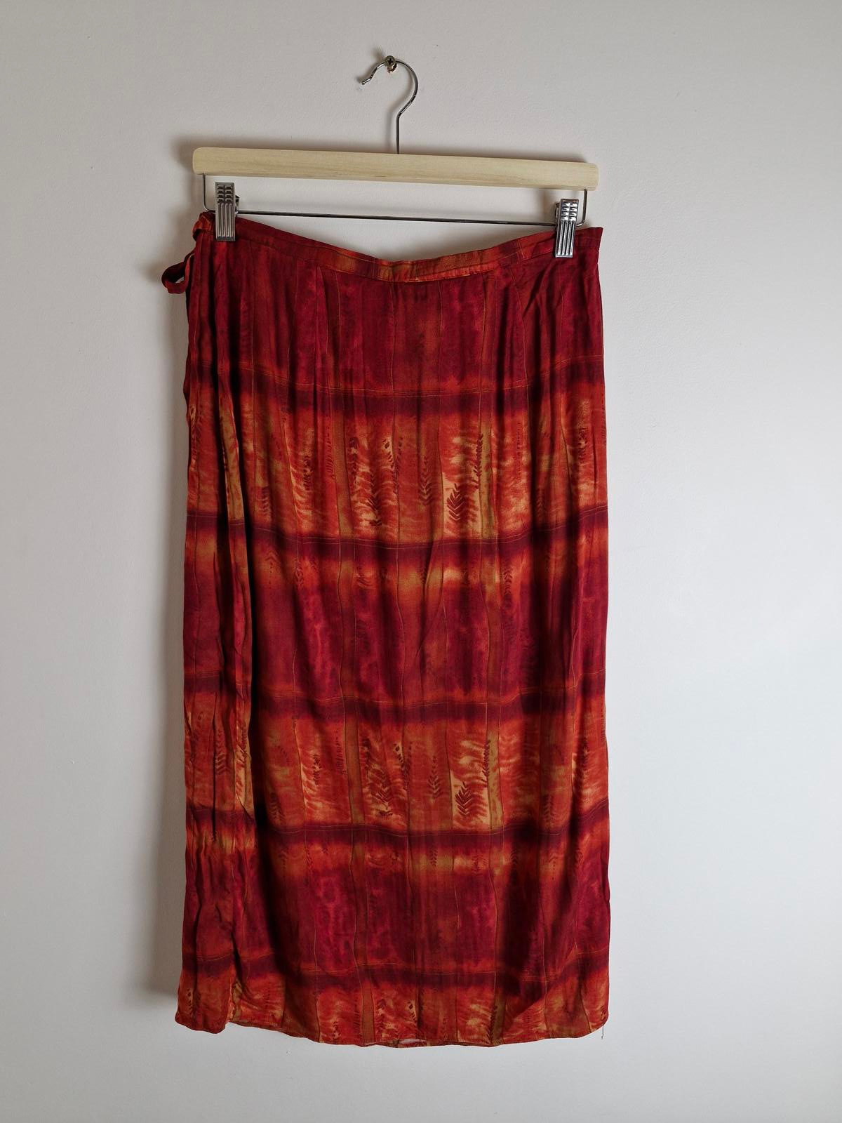 Vintage St Michael Wrap Midi Long Summer Slip Skirt Orange Red UK14 L