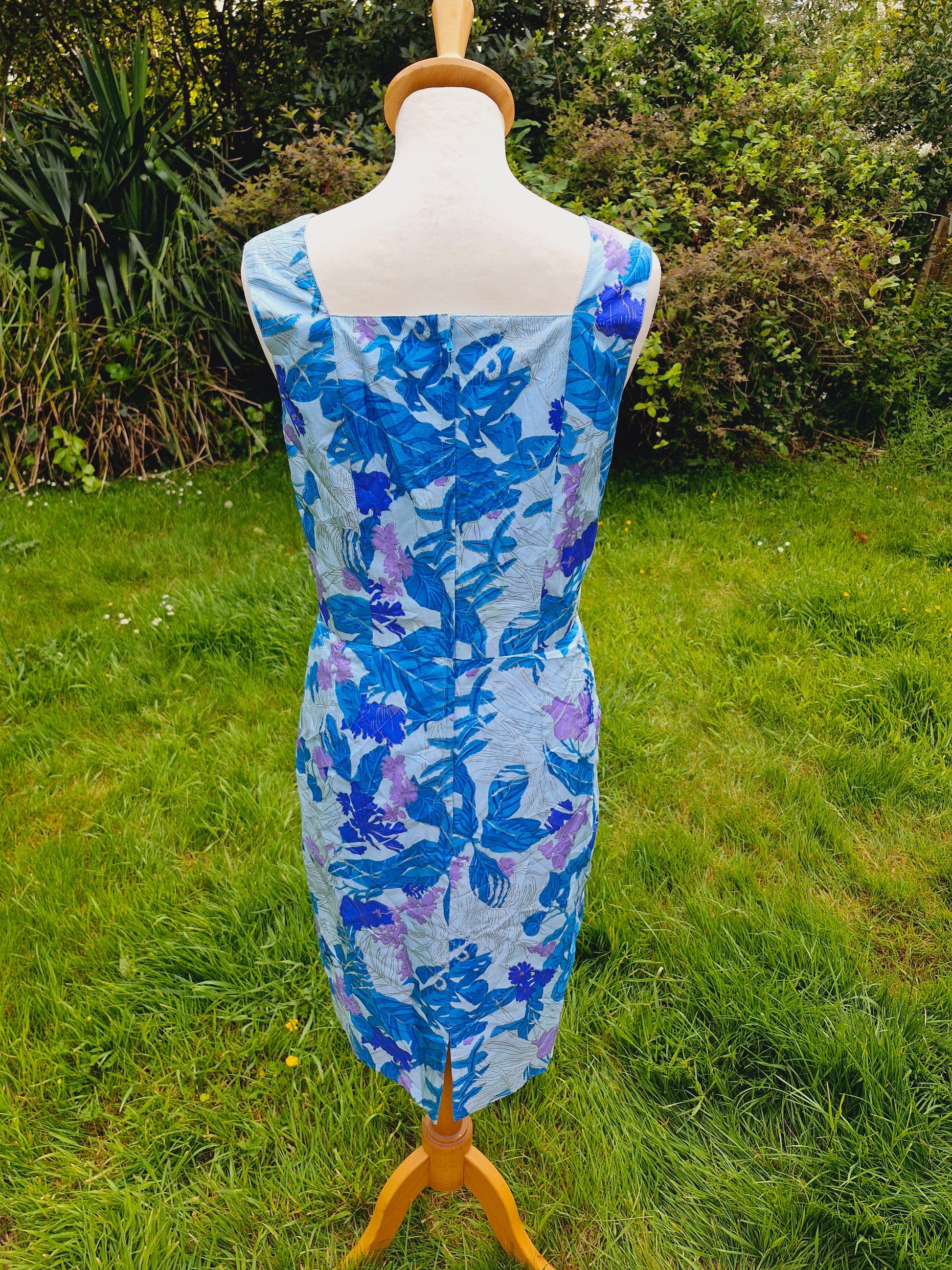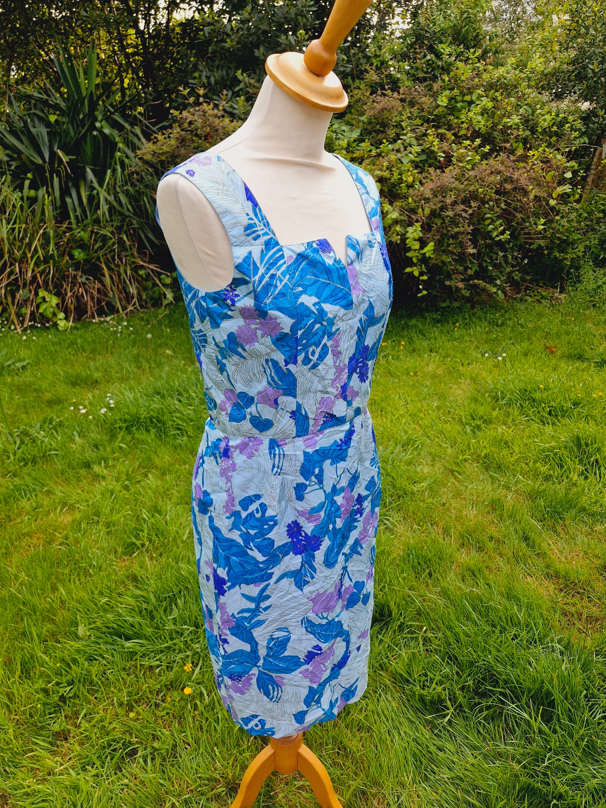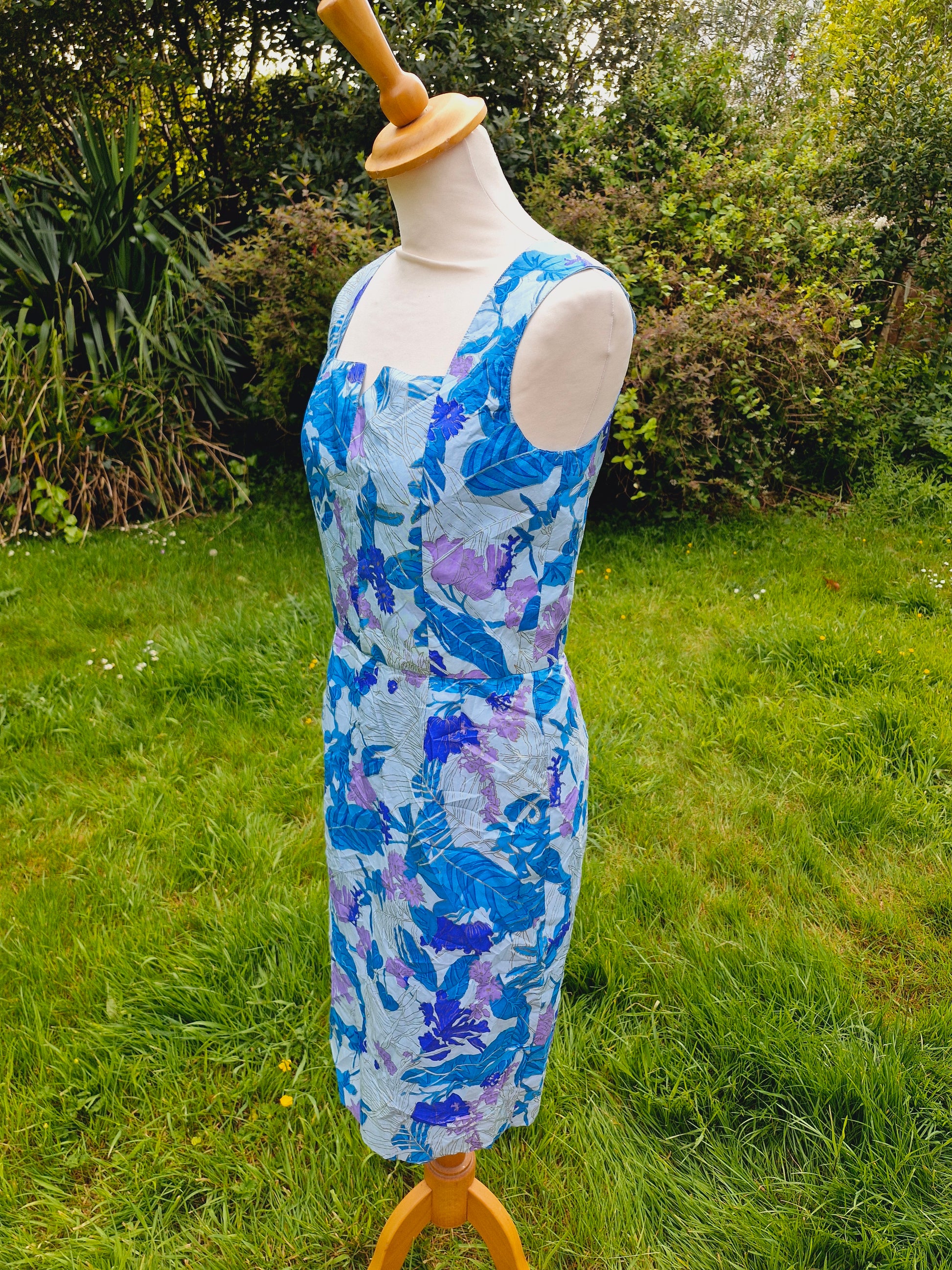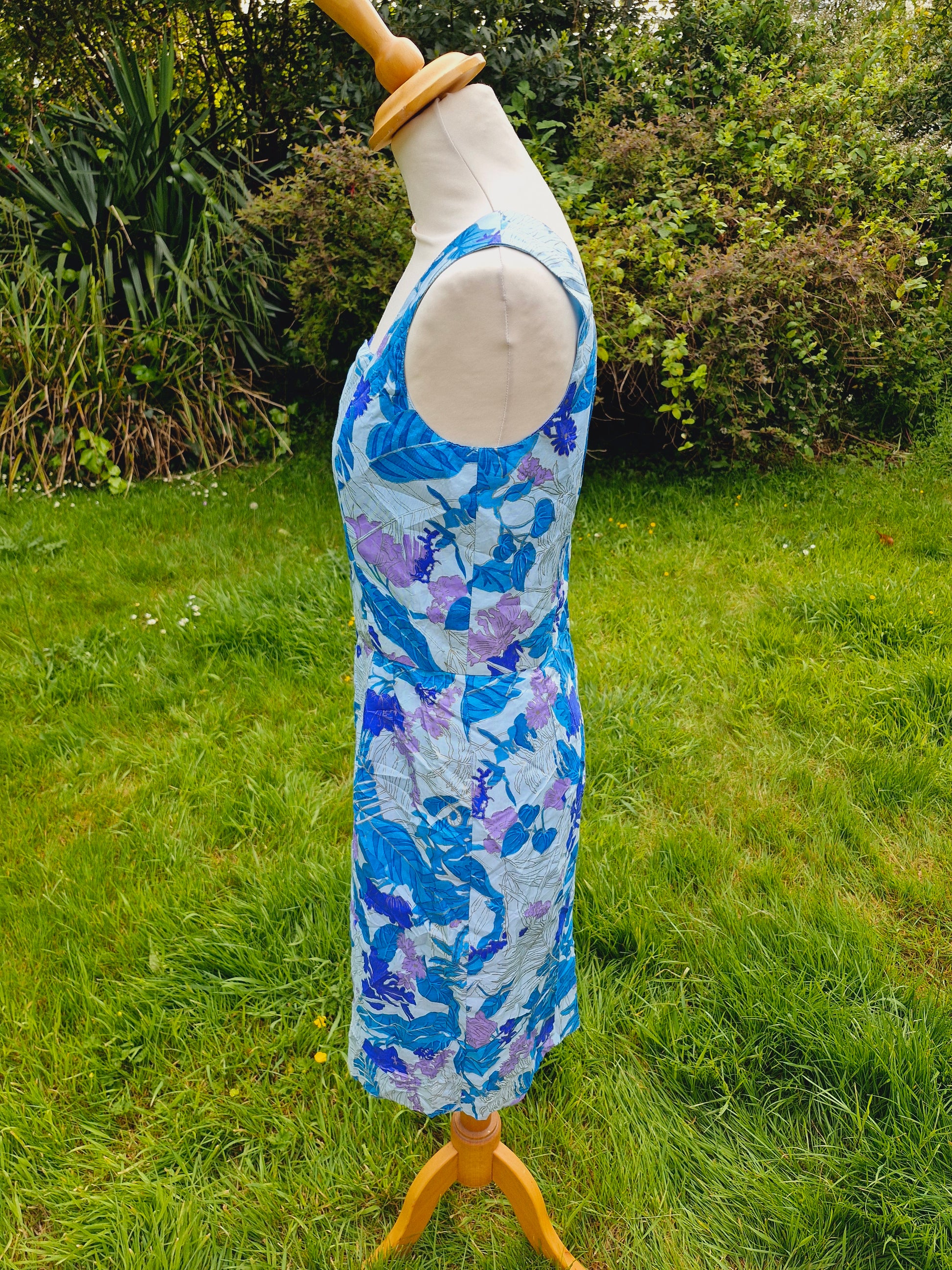 Vintage Thai Silk Blue Shift Dress S