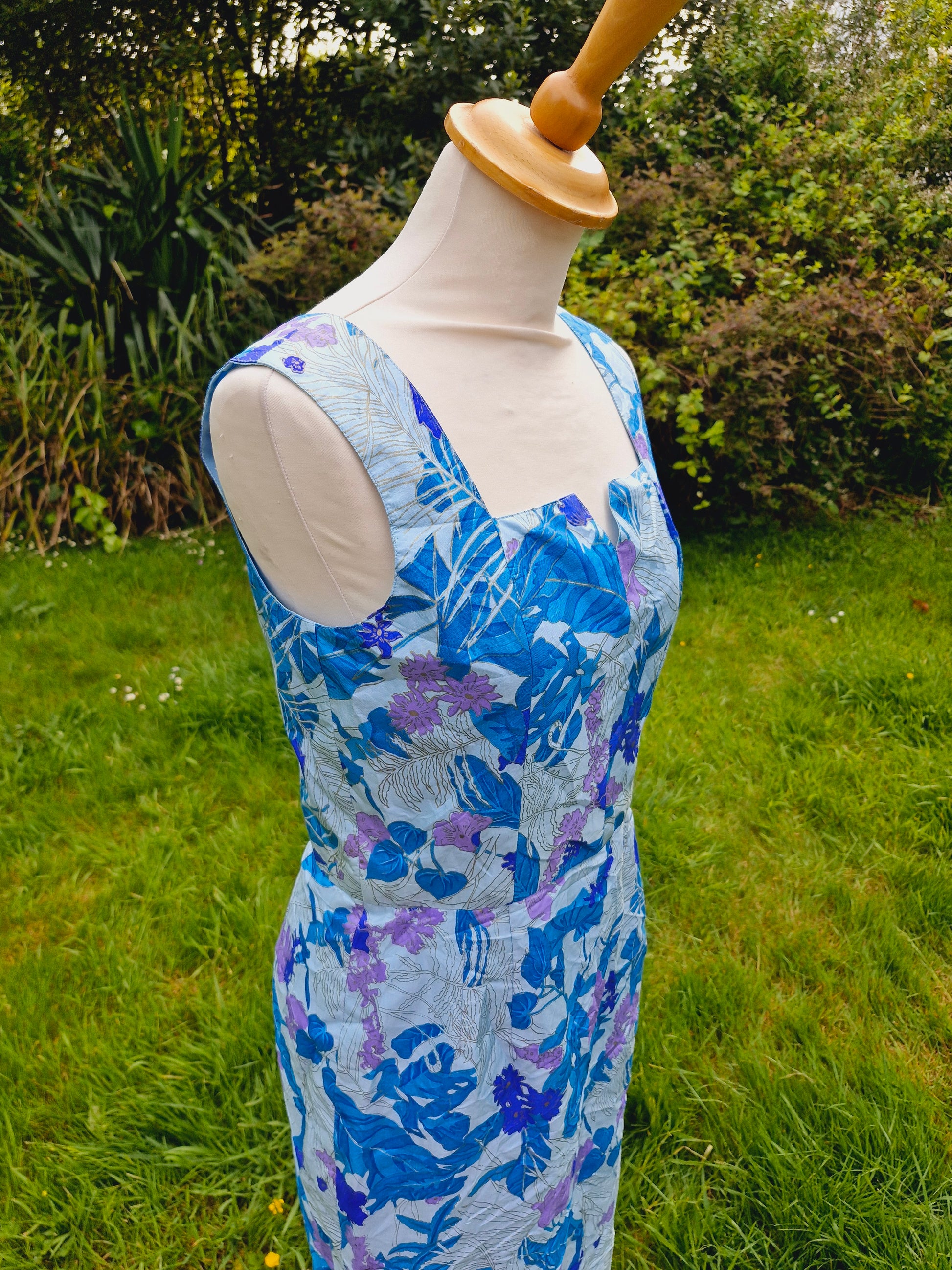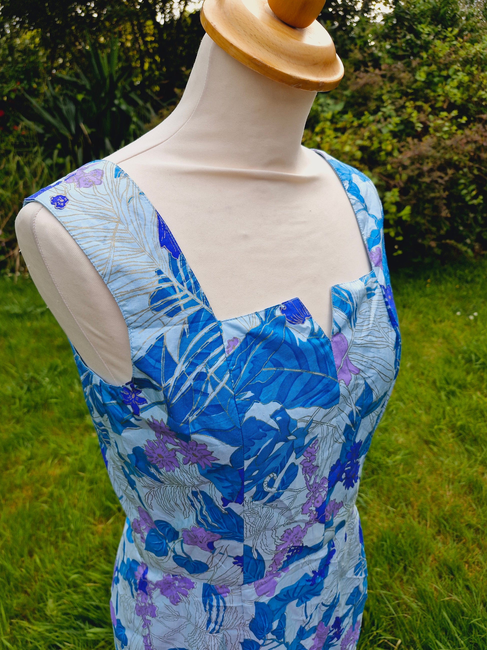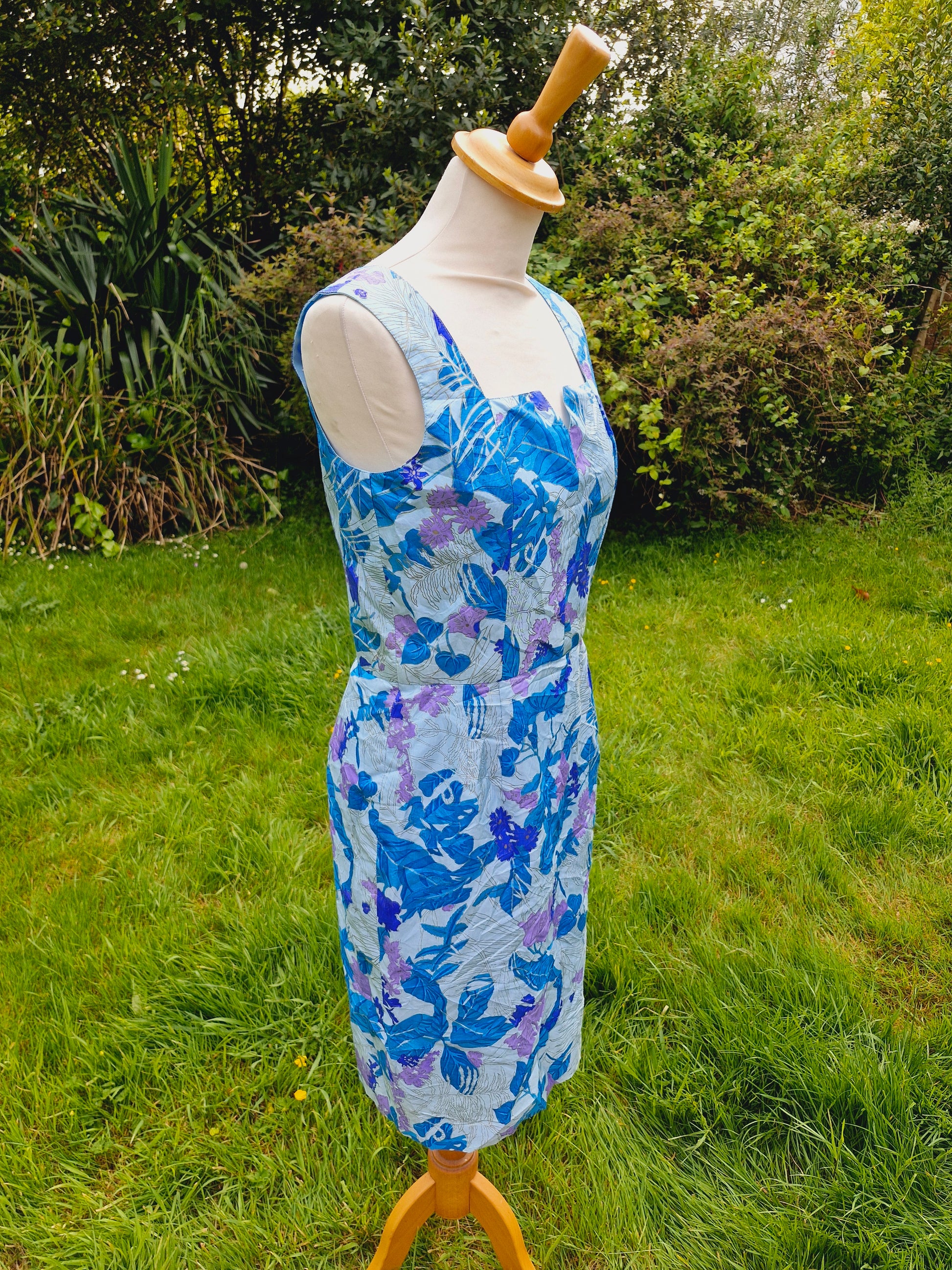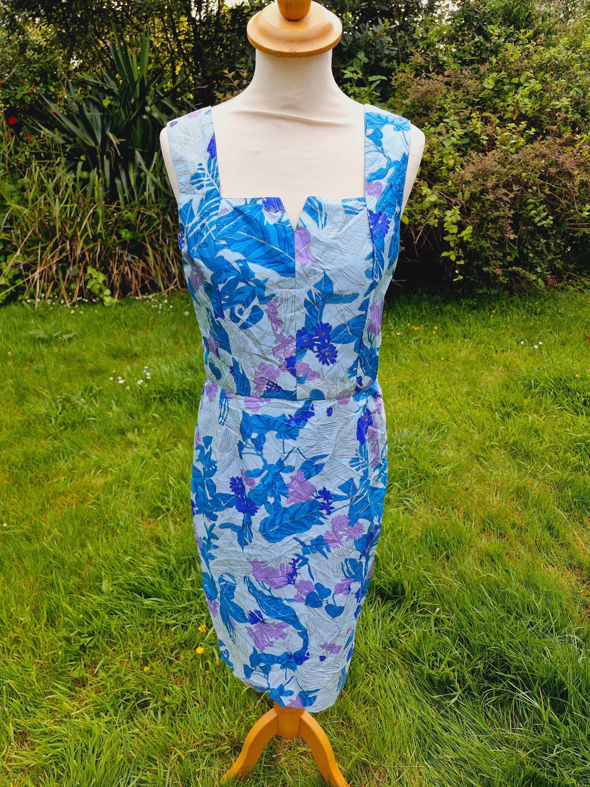 Vintage Thai Silk Blue Shift Dress S