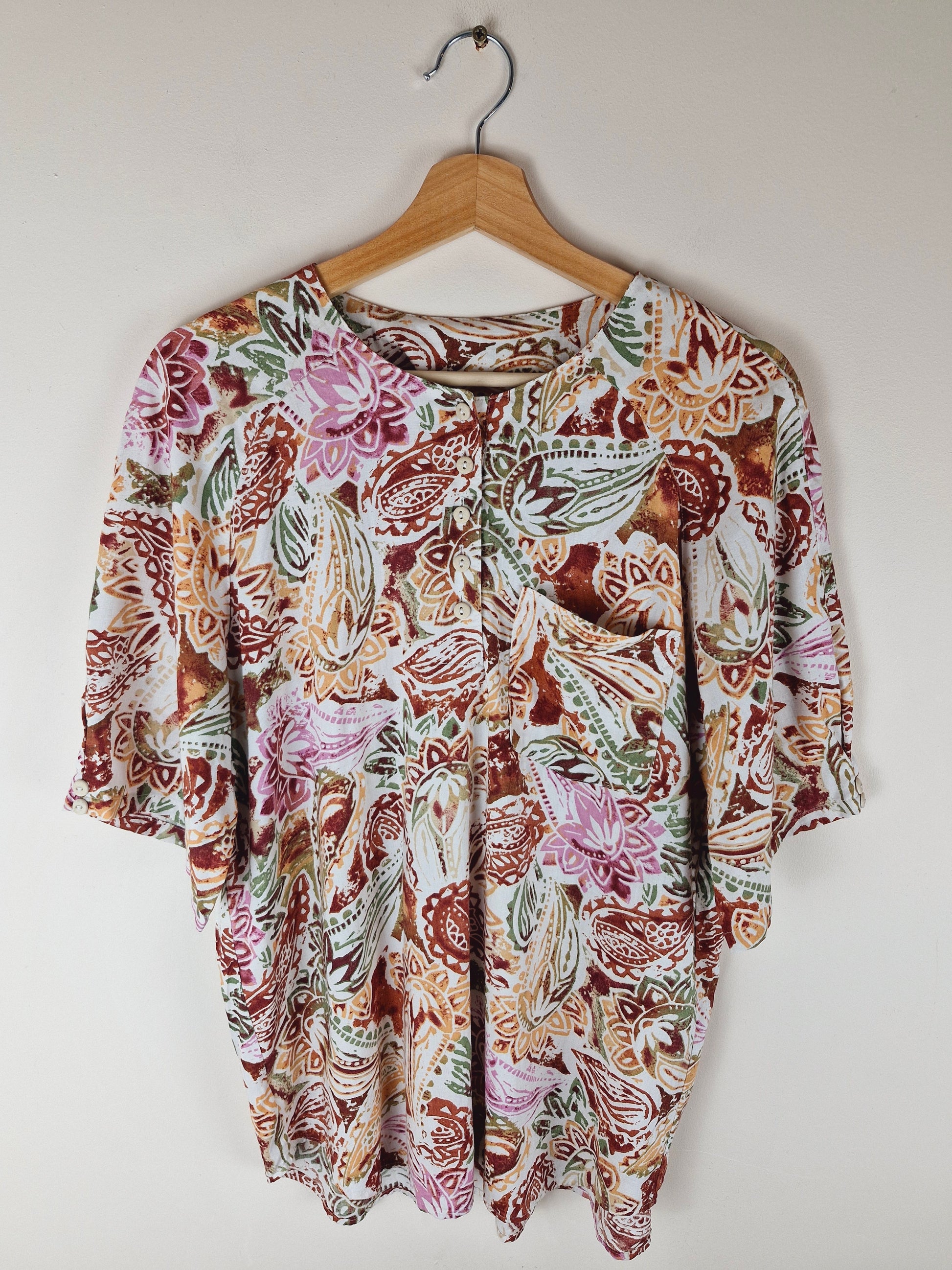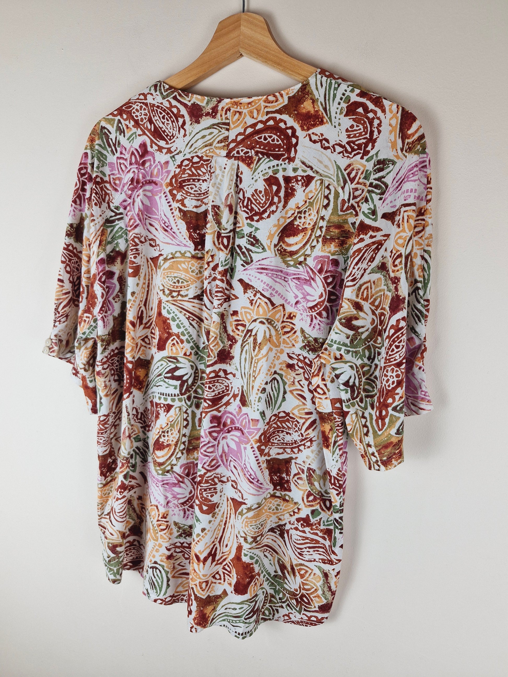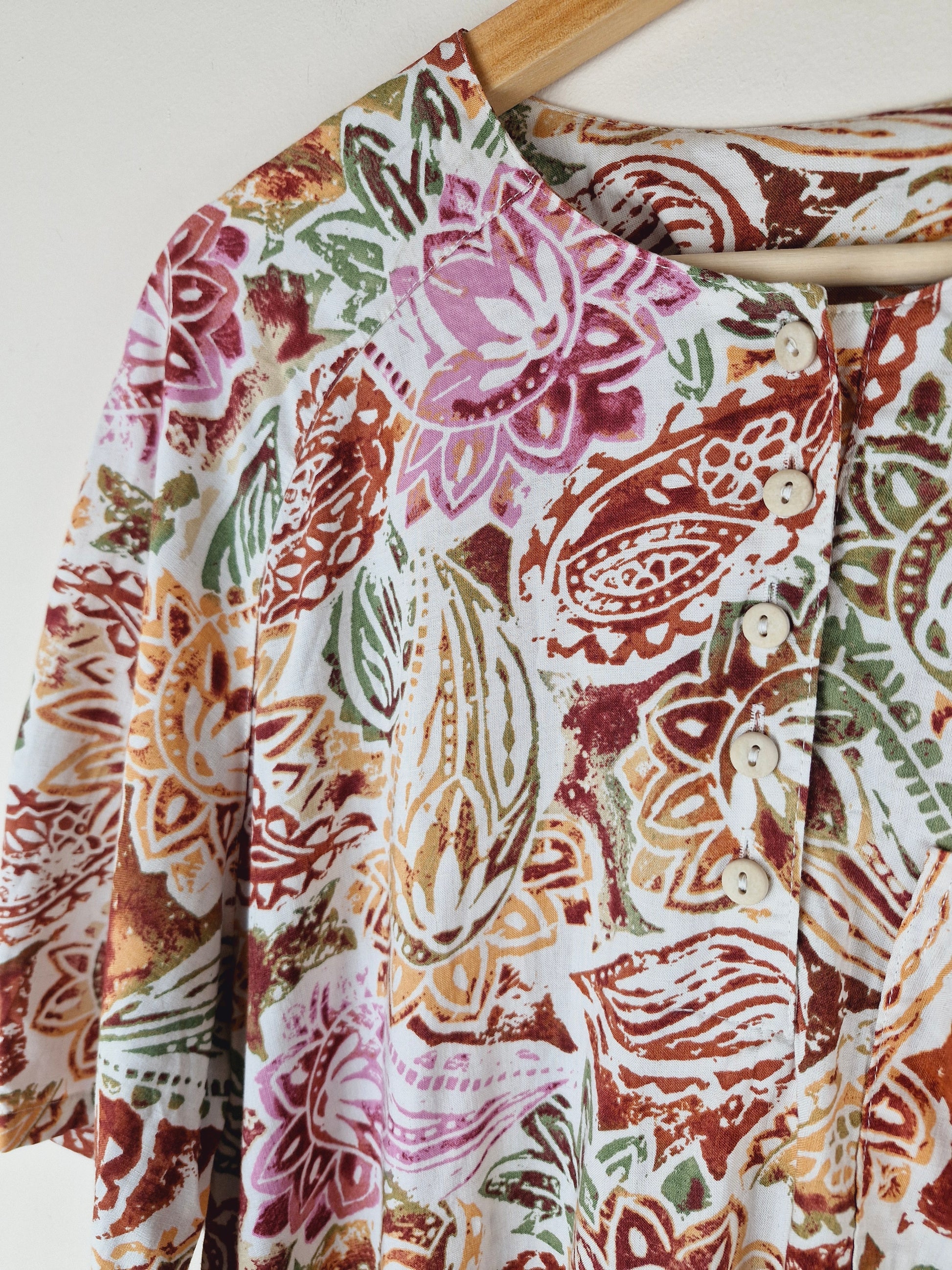 Vintage Viscose Linen Summer Top Paisley Print M L
