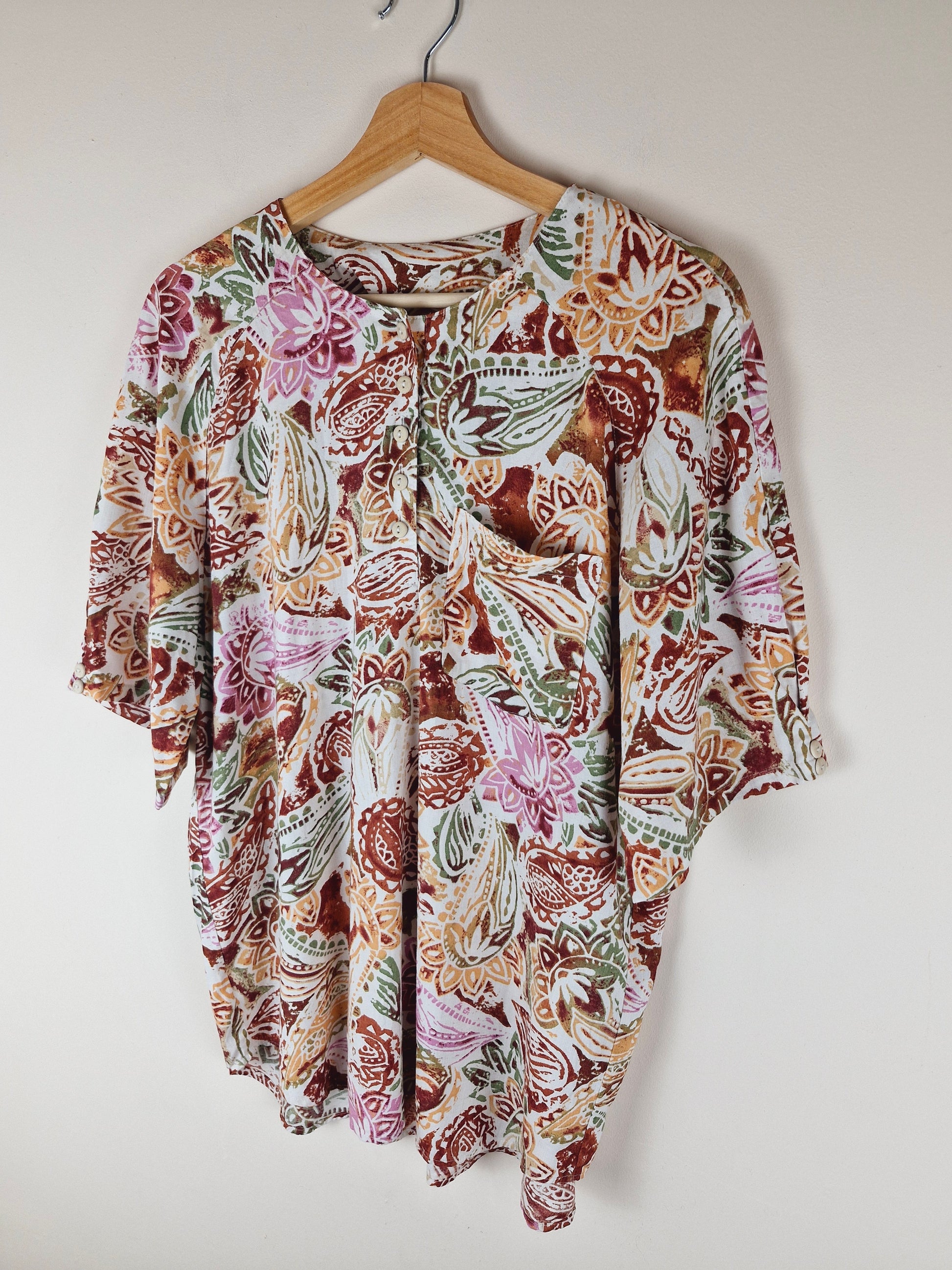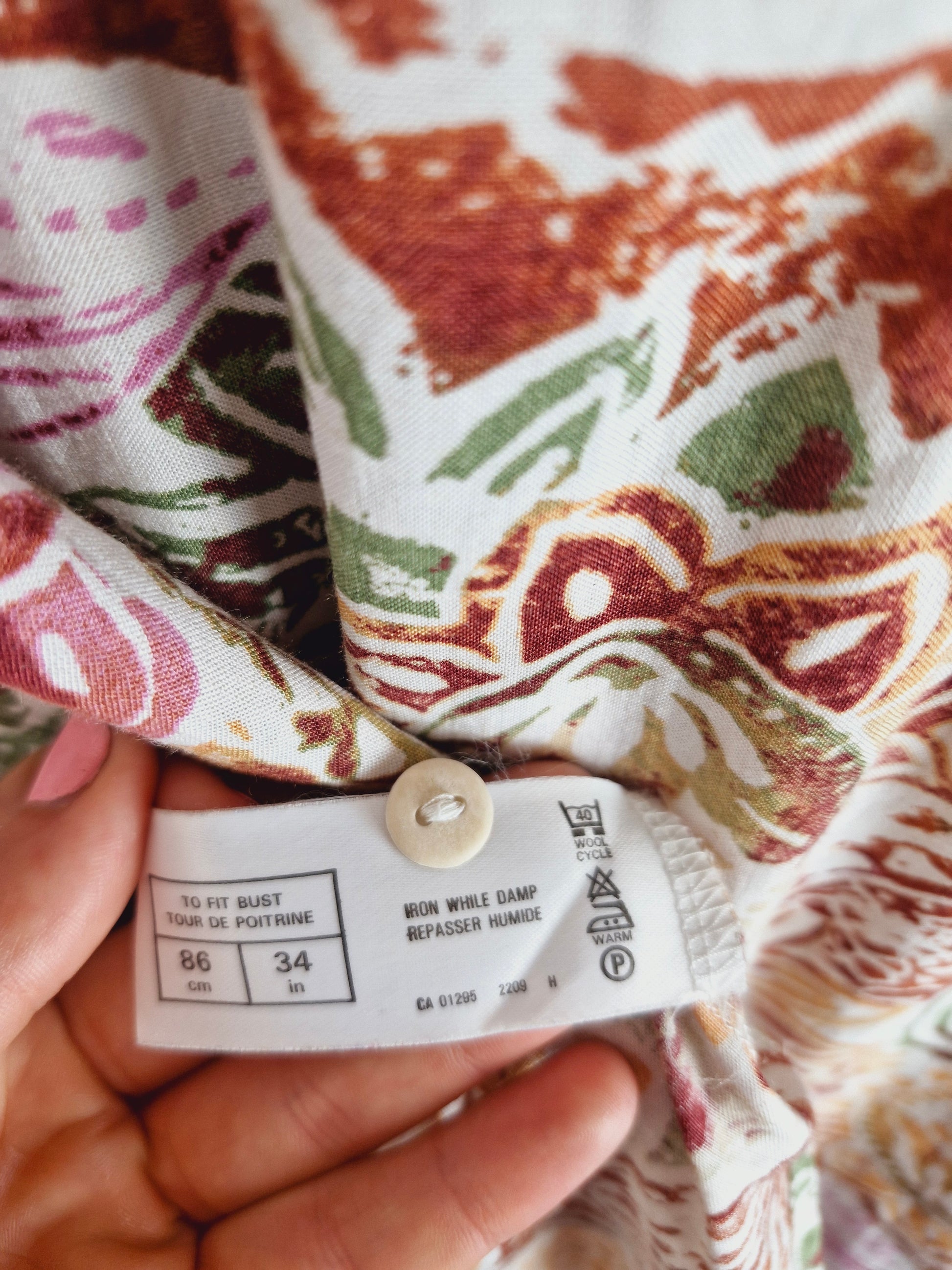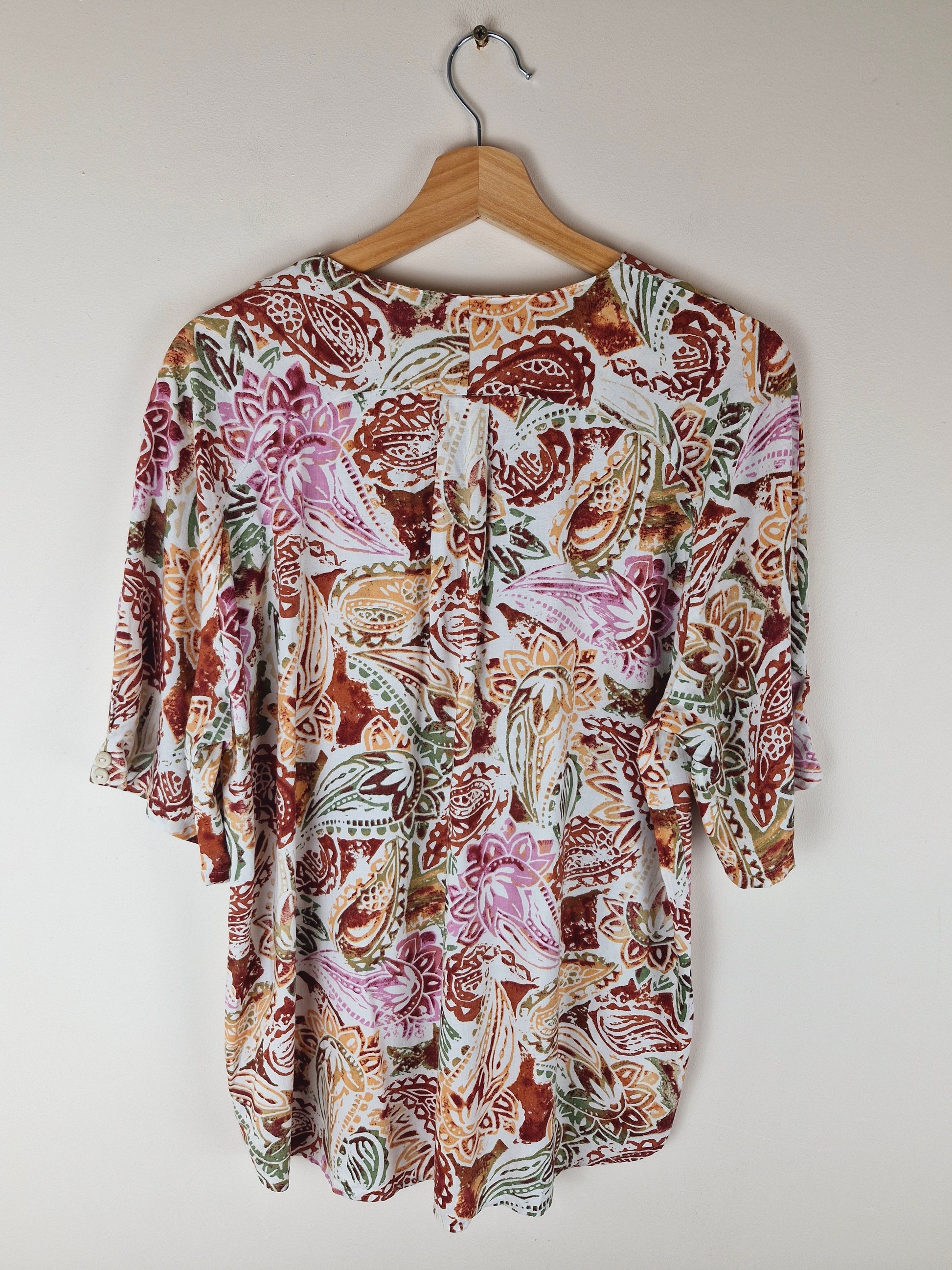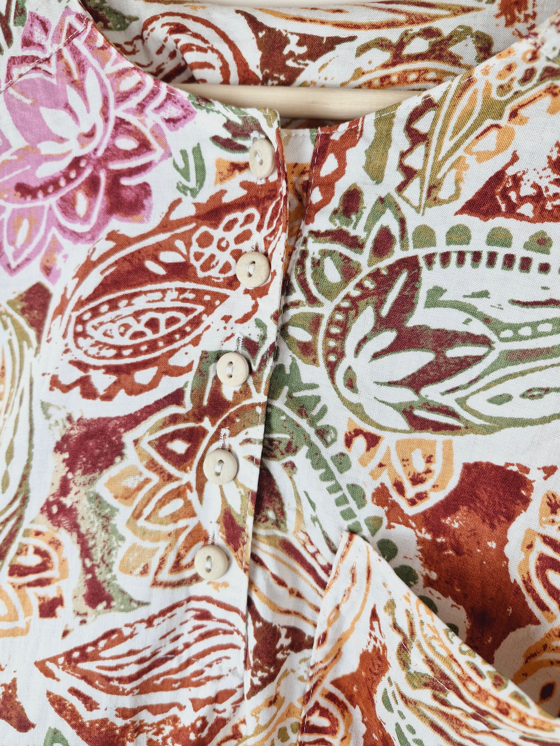 Vintage Viscose Linen Summer Top Paisley Print M L