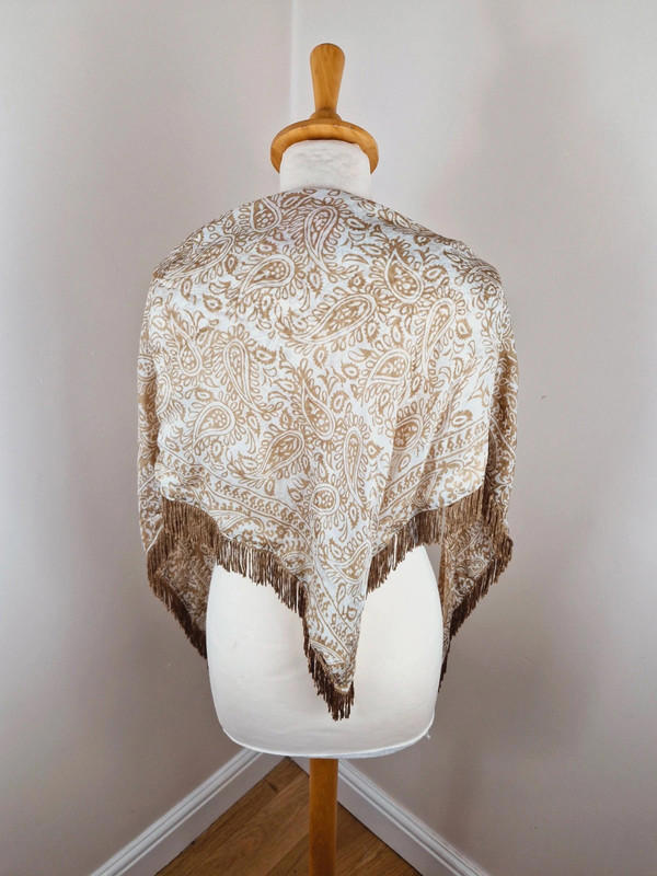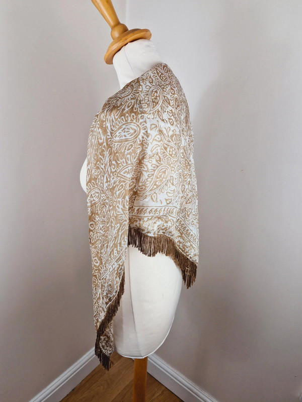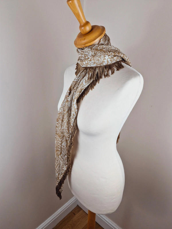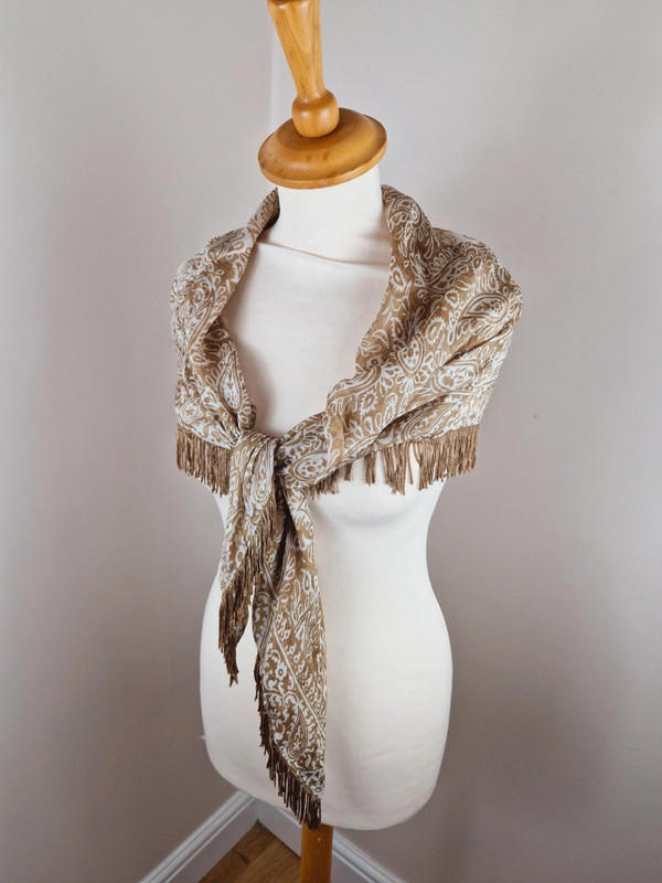Womens Alexia London Fringed Tassel Beige Triangle Scarf Shawl Neck Tie
