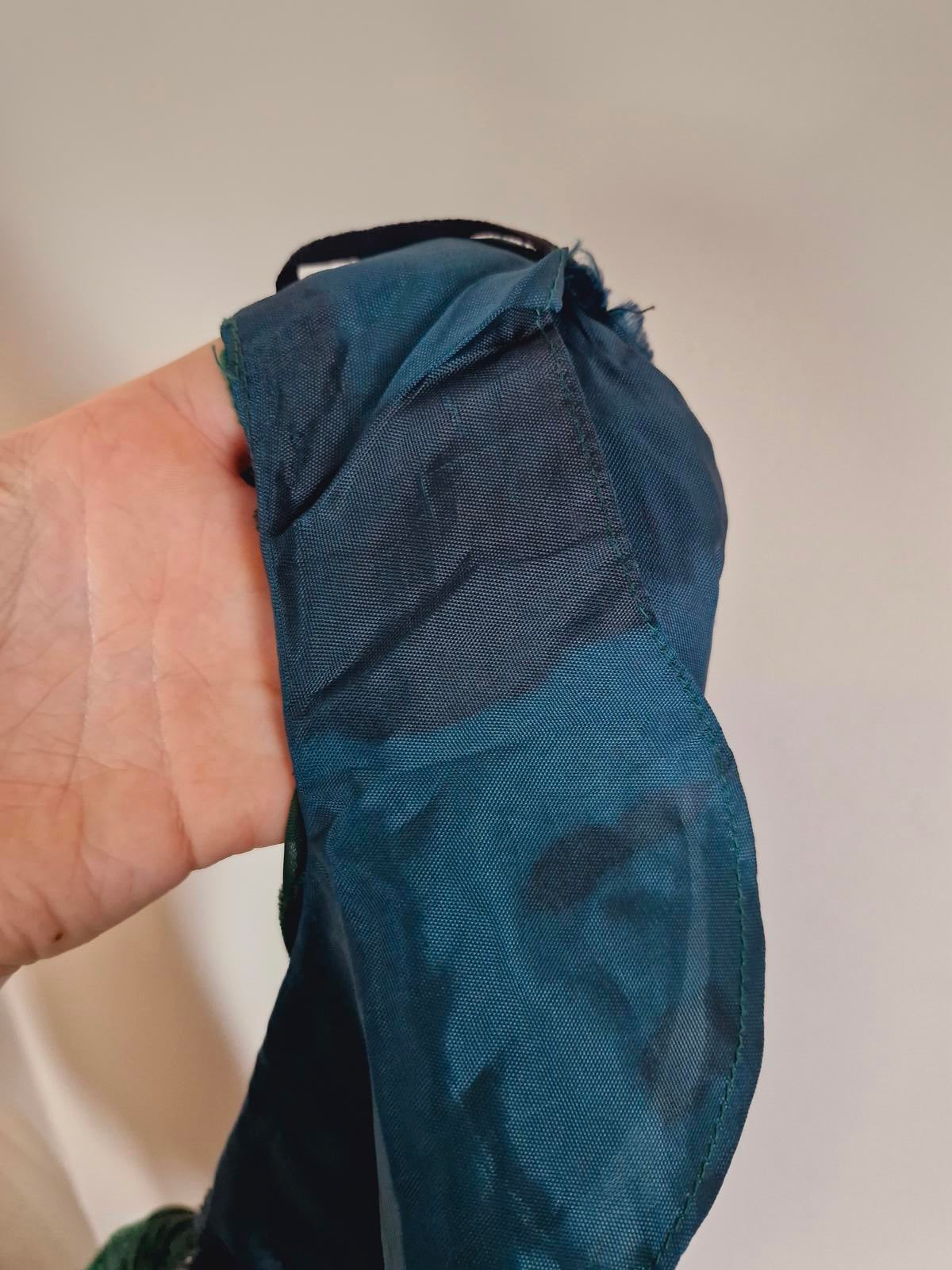 In good vintage condition - a few threads have come off popper. Darker area of lining not seen when worn. Beautiful slightly sheer sleeves with velvet cuff