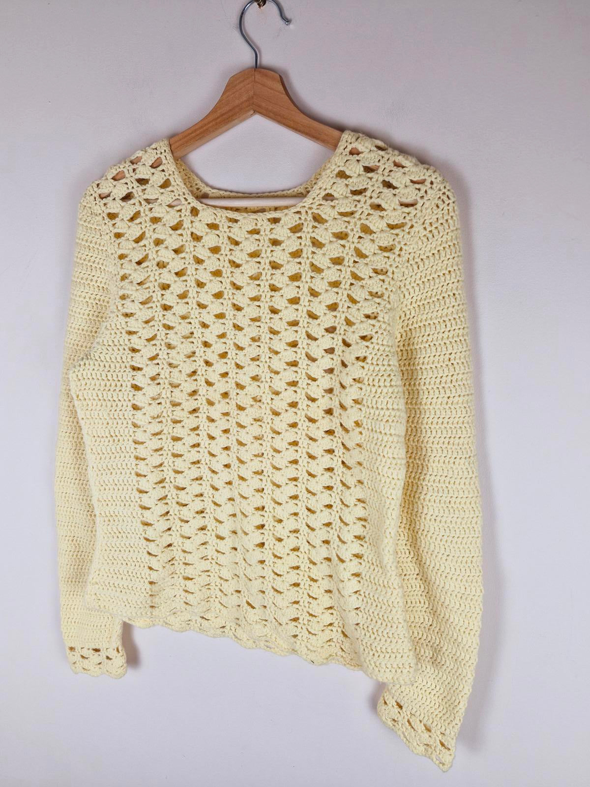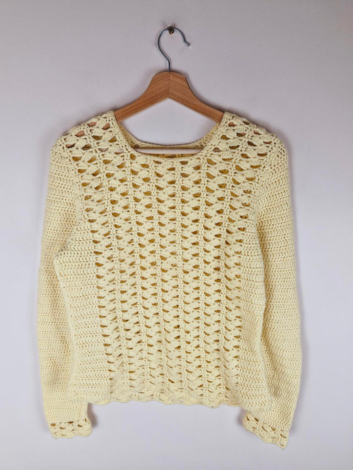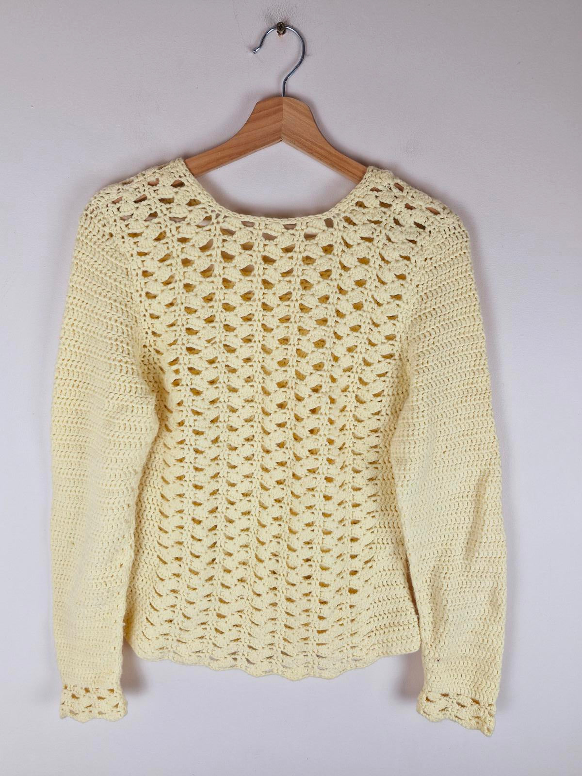 Womens Vintage 1970s 70s Handknitted Knitted Crochet Yellow Jumper Top S