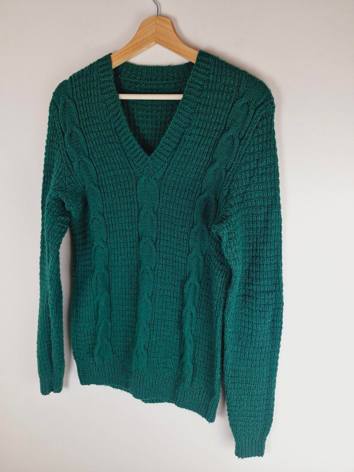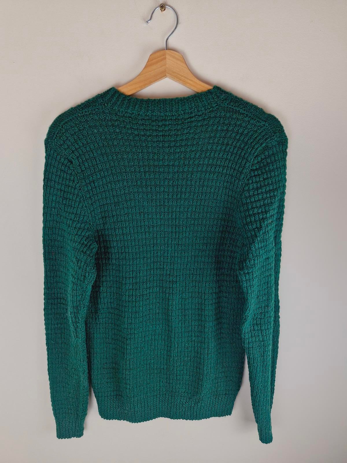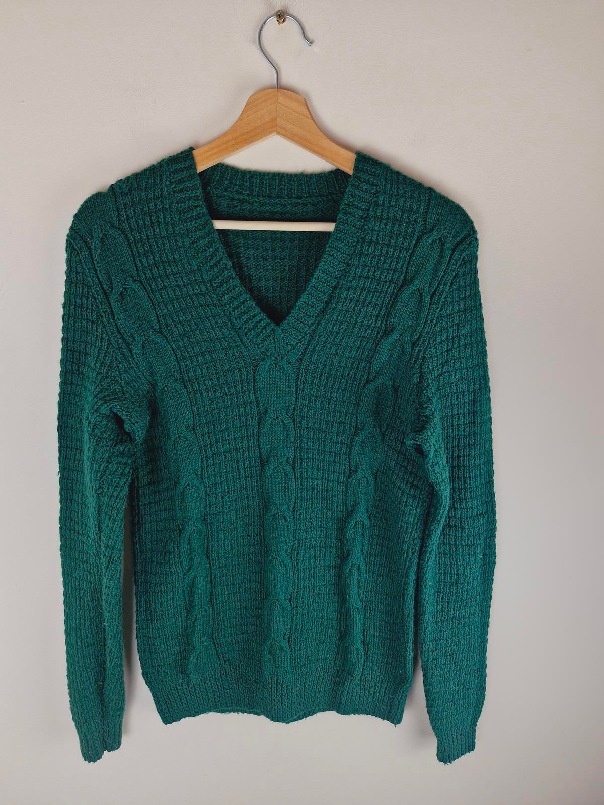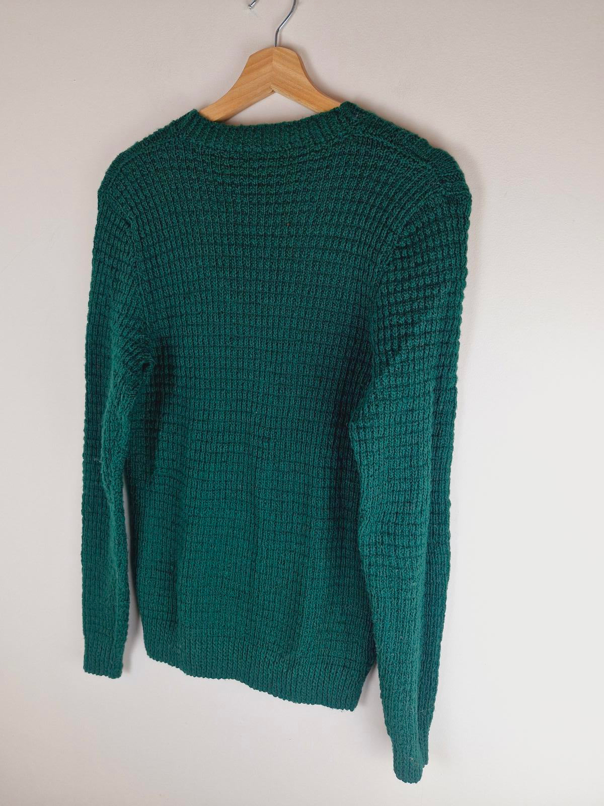 Womens Vintage 1970s 70s handknitted Knitted green jumper Sweater M