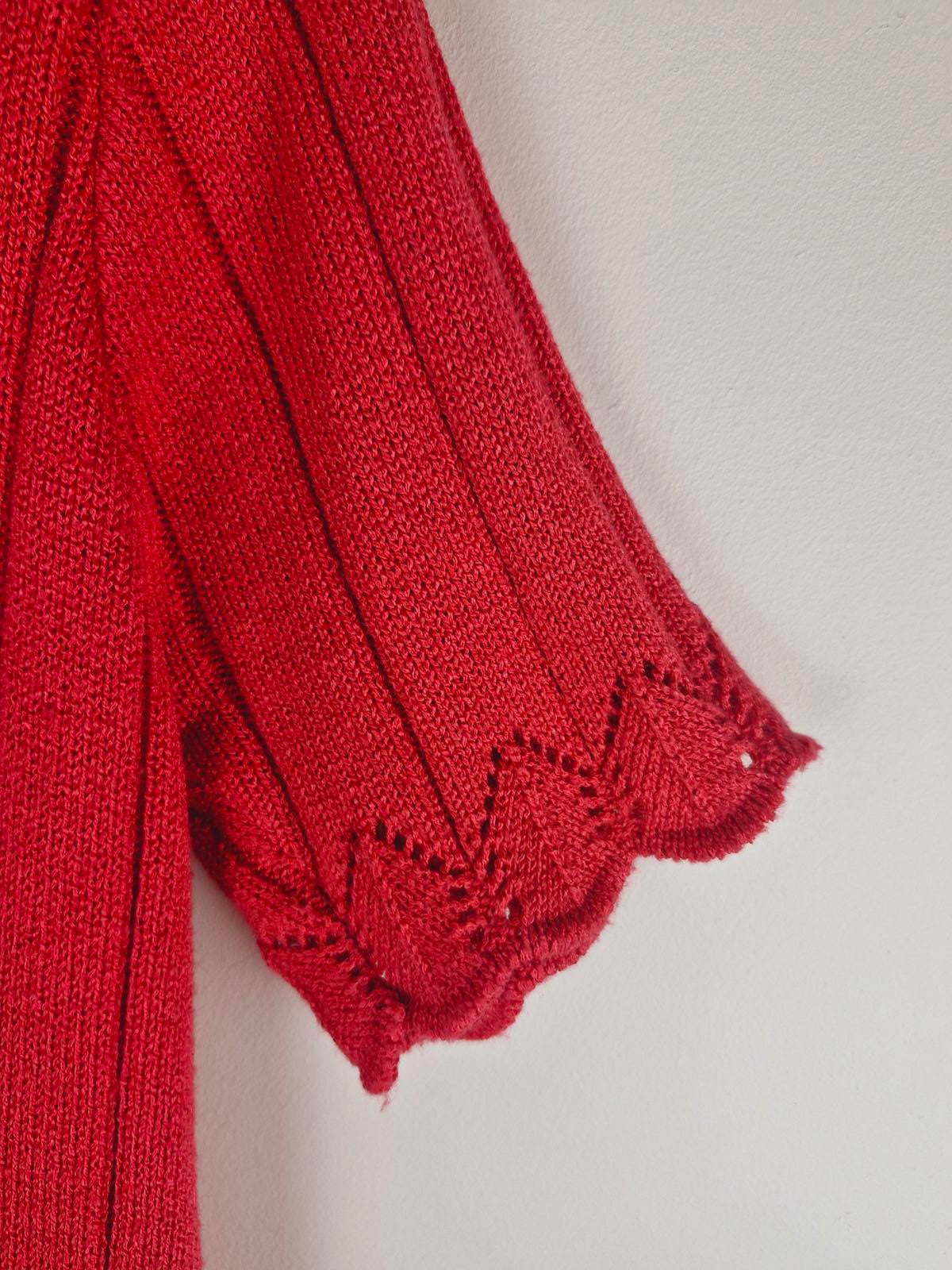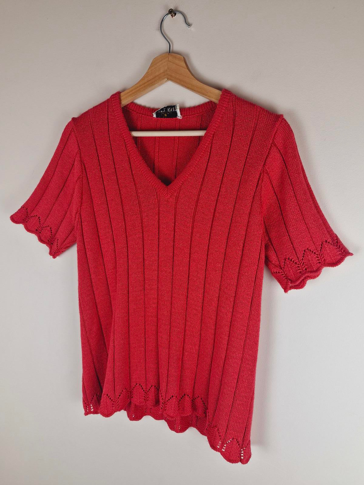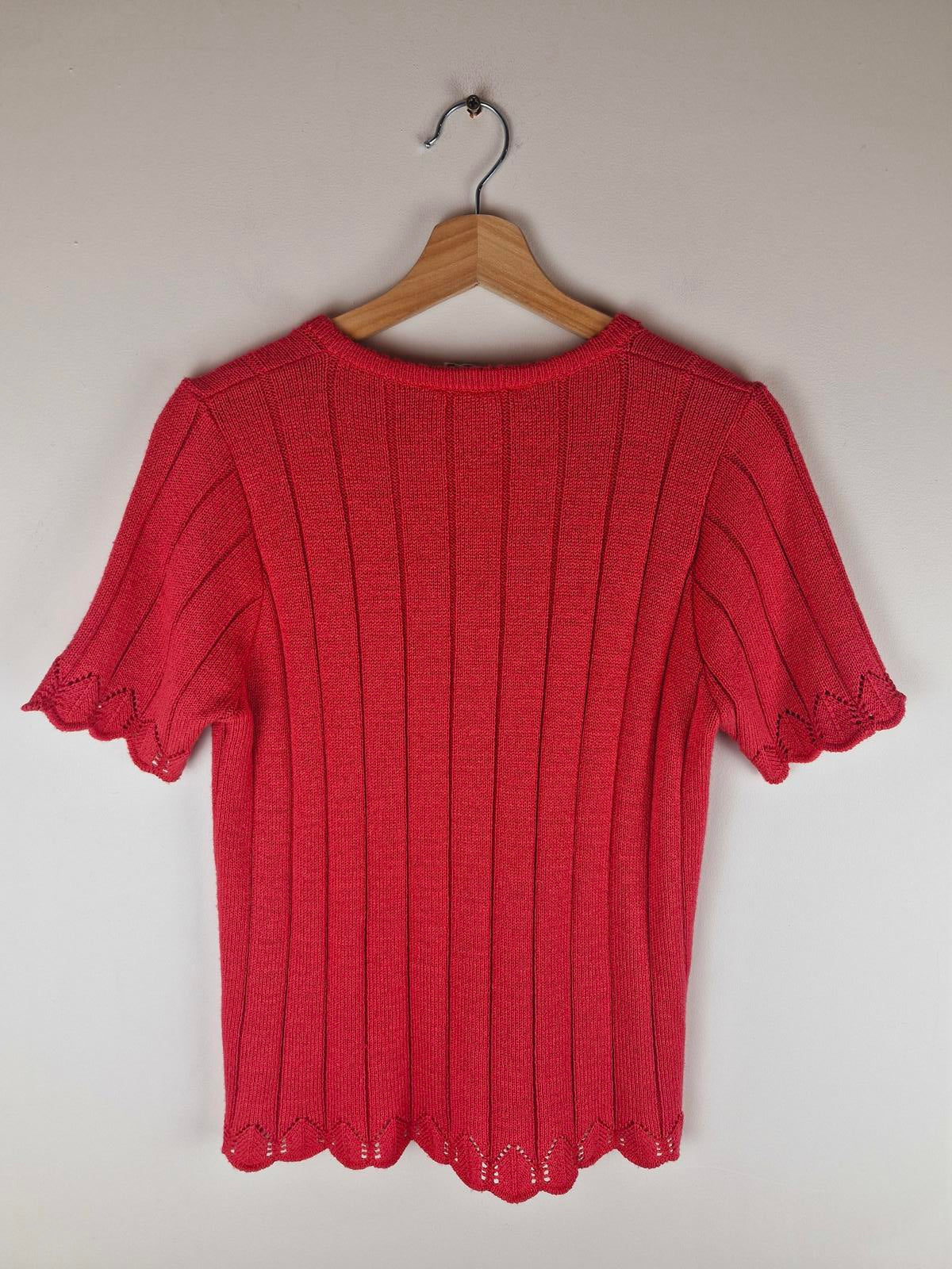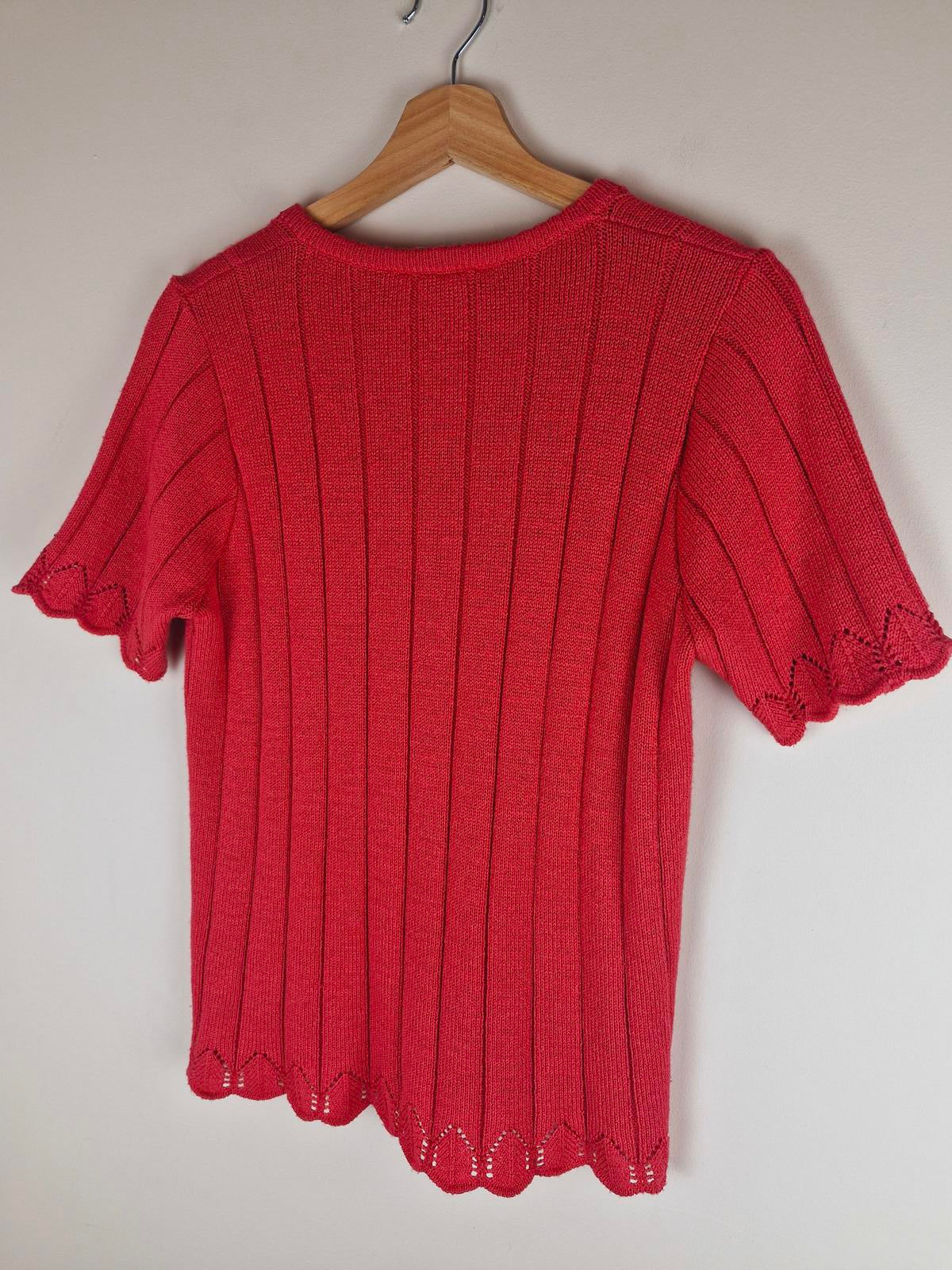 Womens Vintage 1970s 70s Orange Pink Short Sleeve Knitted Top Jumper Sweater M