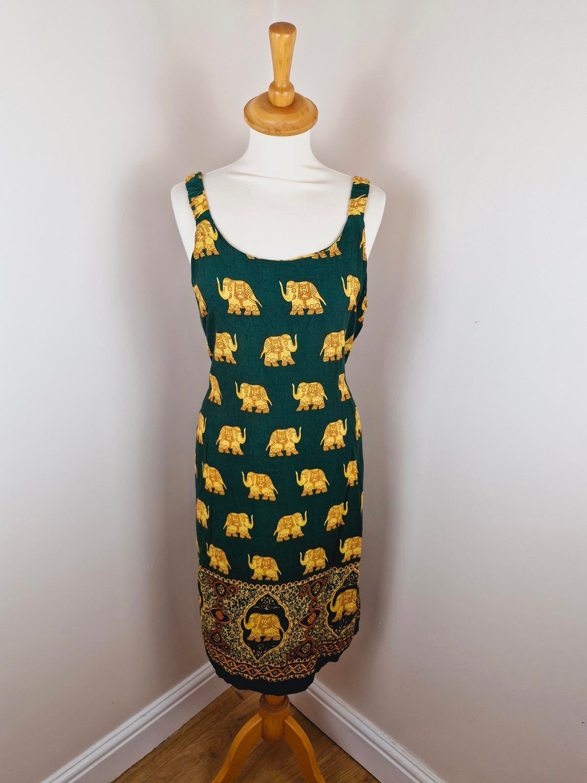 Womens Vintage 90s Green Elephant Slip Dress Yellow M