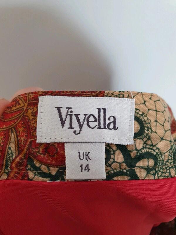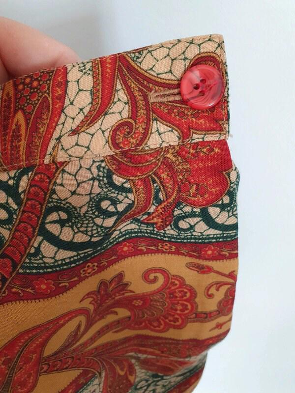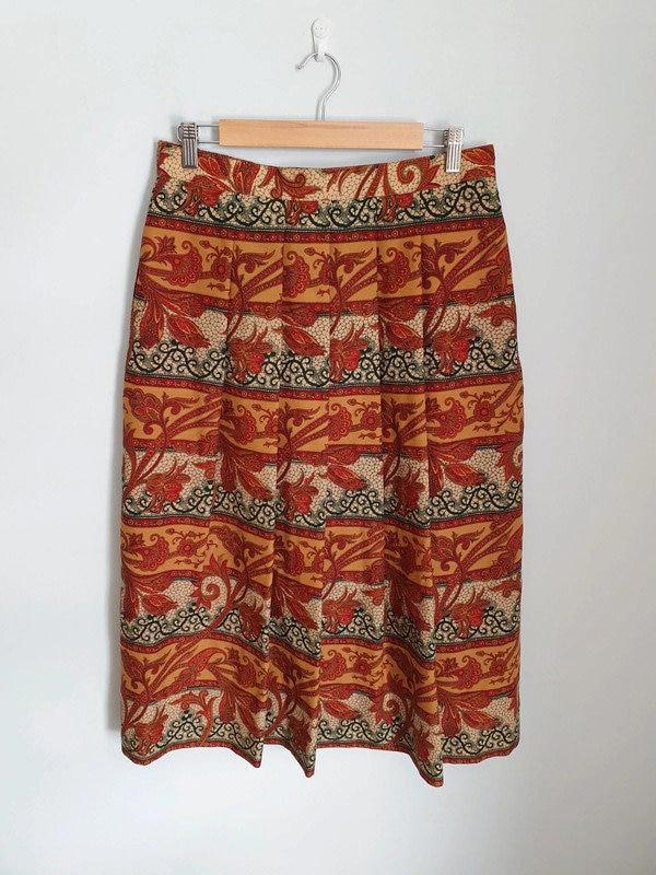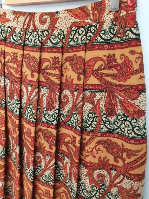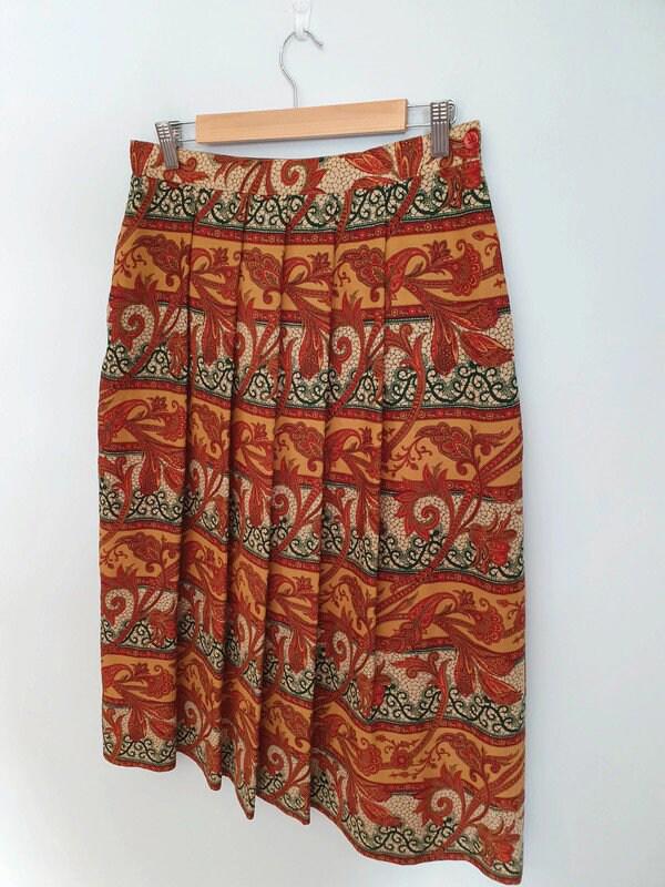 Womens Vintage A-Line Pleated Paisley Boho Wool Midi Skirt UK14