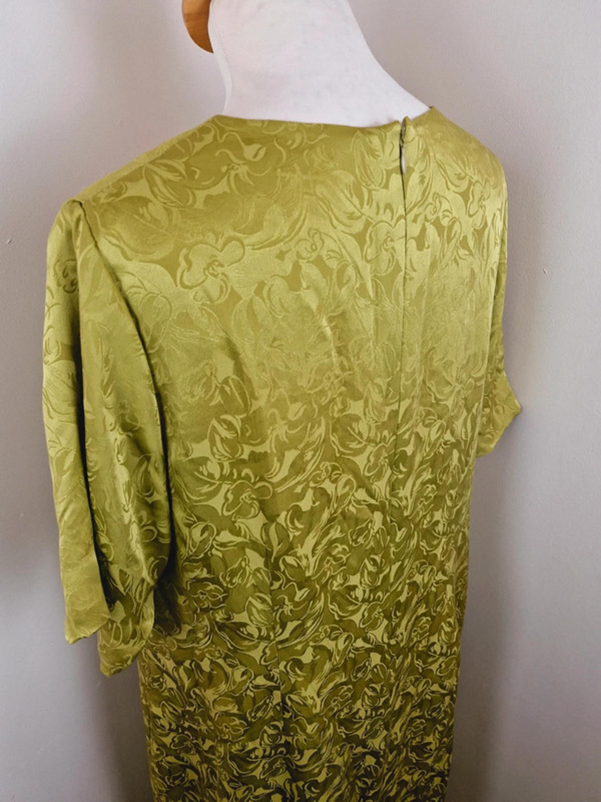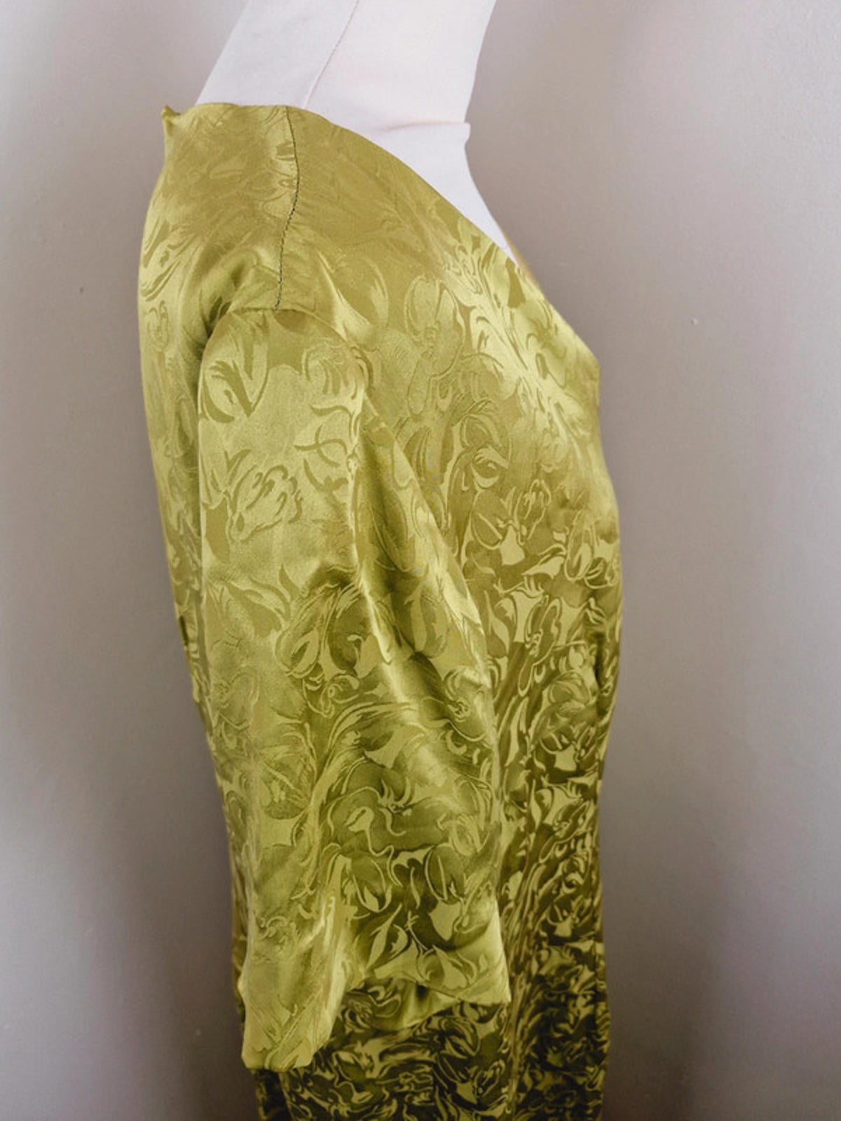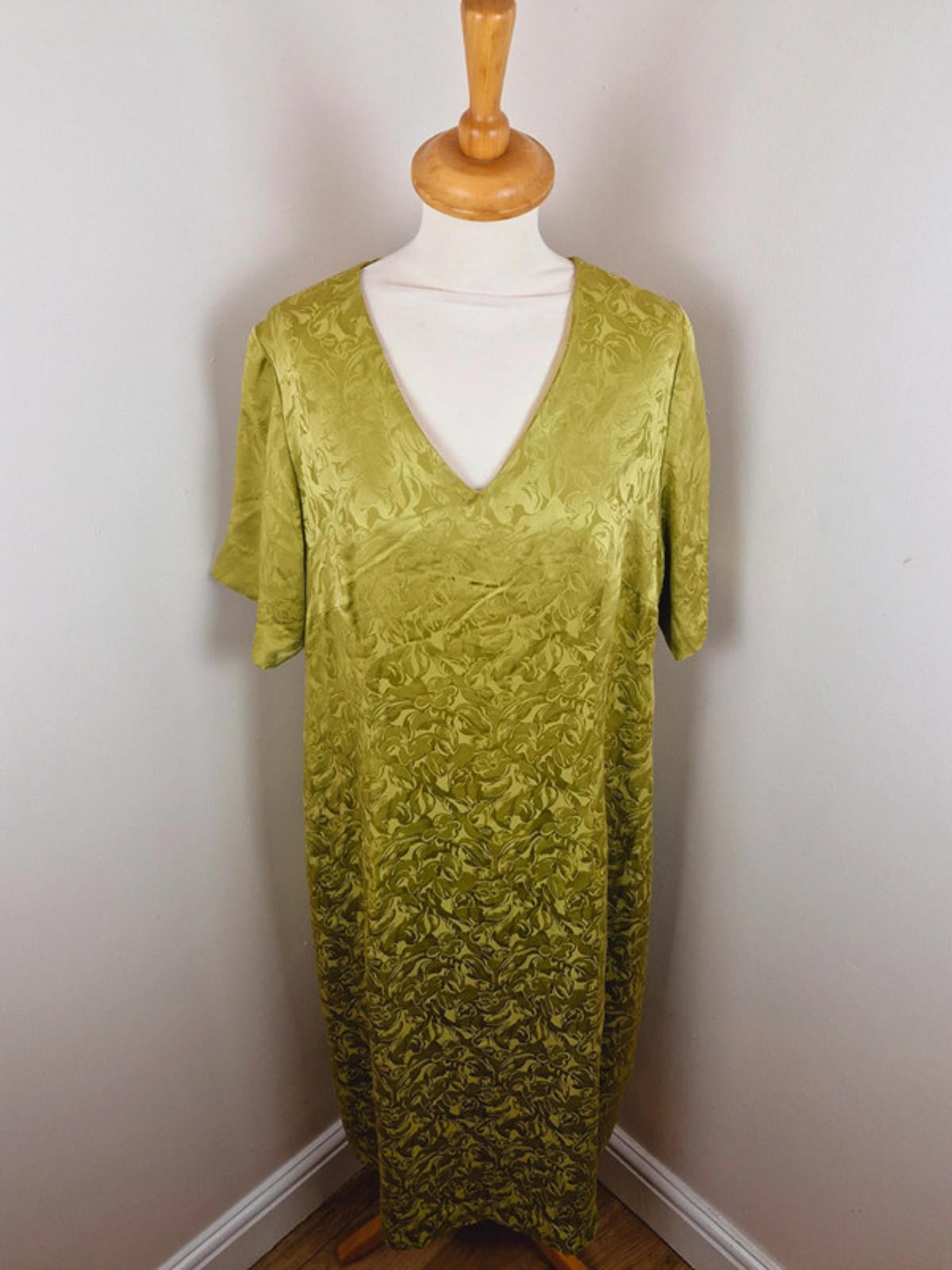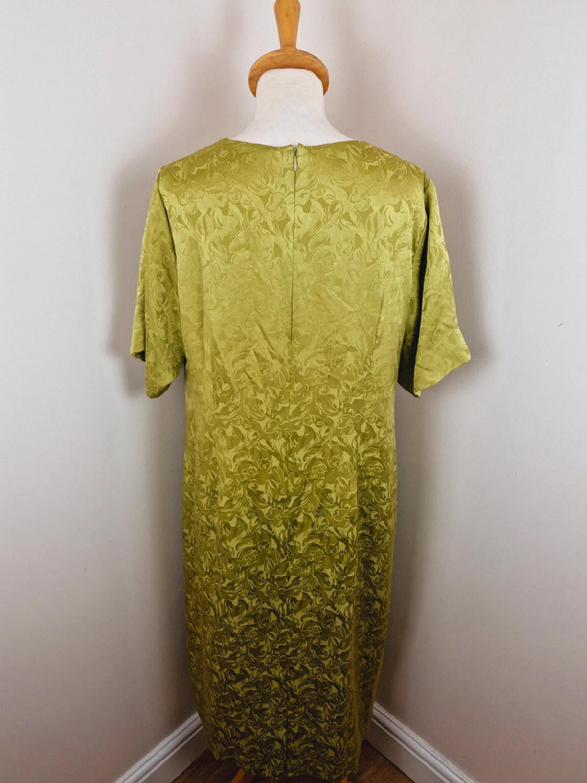 Womens Vintage green yellow Mustard satin long dress Midi Slip L