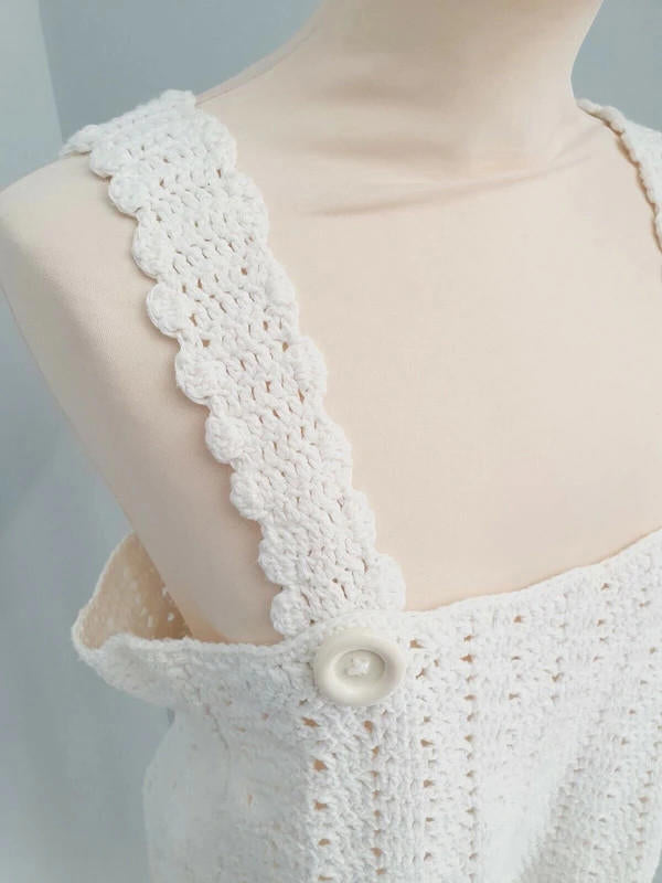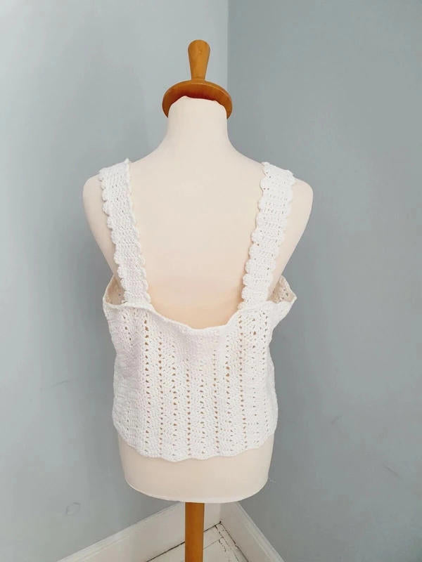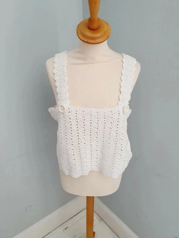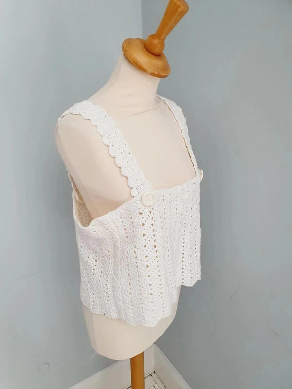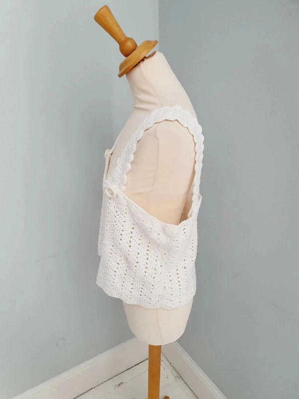 Womens Vintage Handknitted Handmade 70s Style White Crochet Summer Top XL