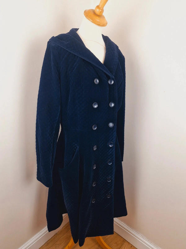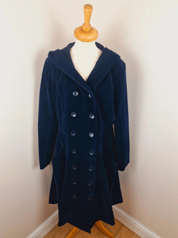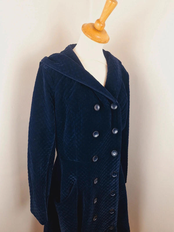 Stunning velvet coat with beautiful shape. In good vintage condition - few light scuffs on the velvet and tear to lining of 1 pocket. Labelled 18 but would fit modern UK16.