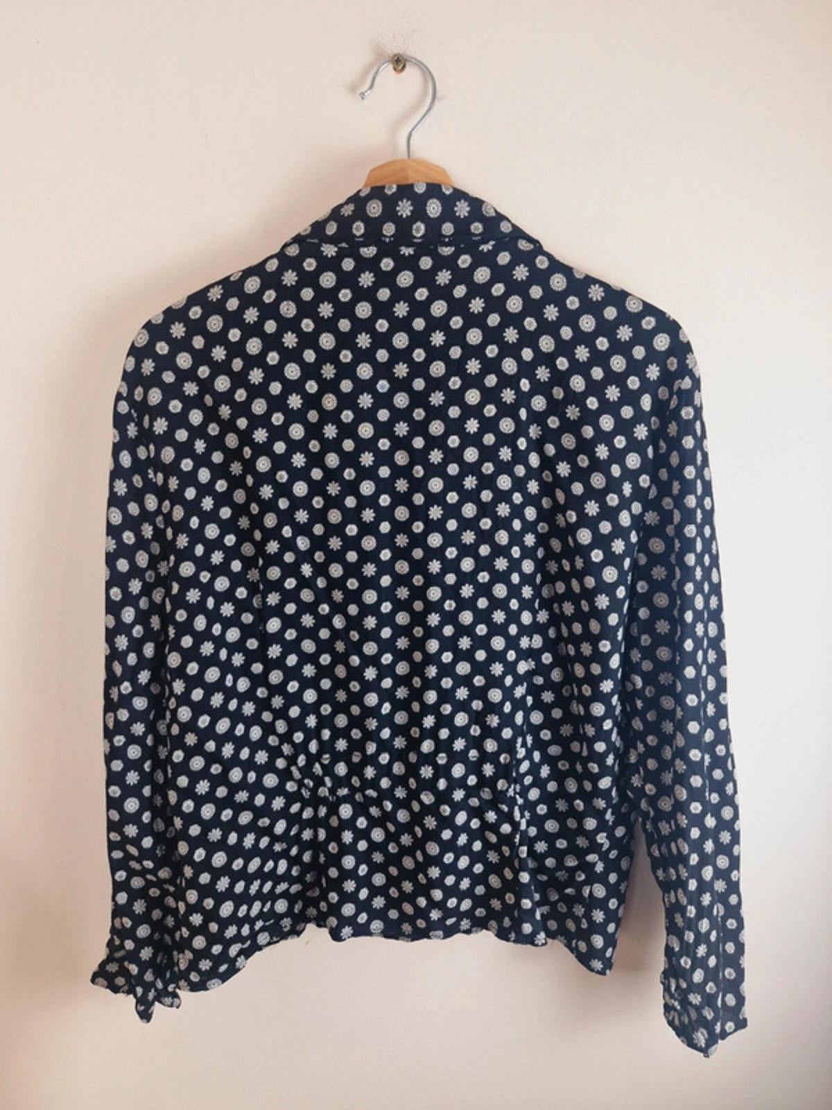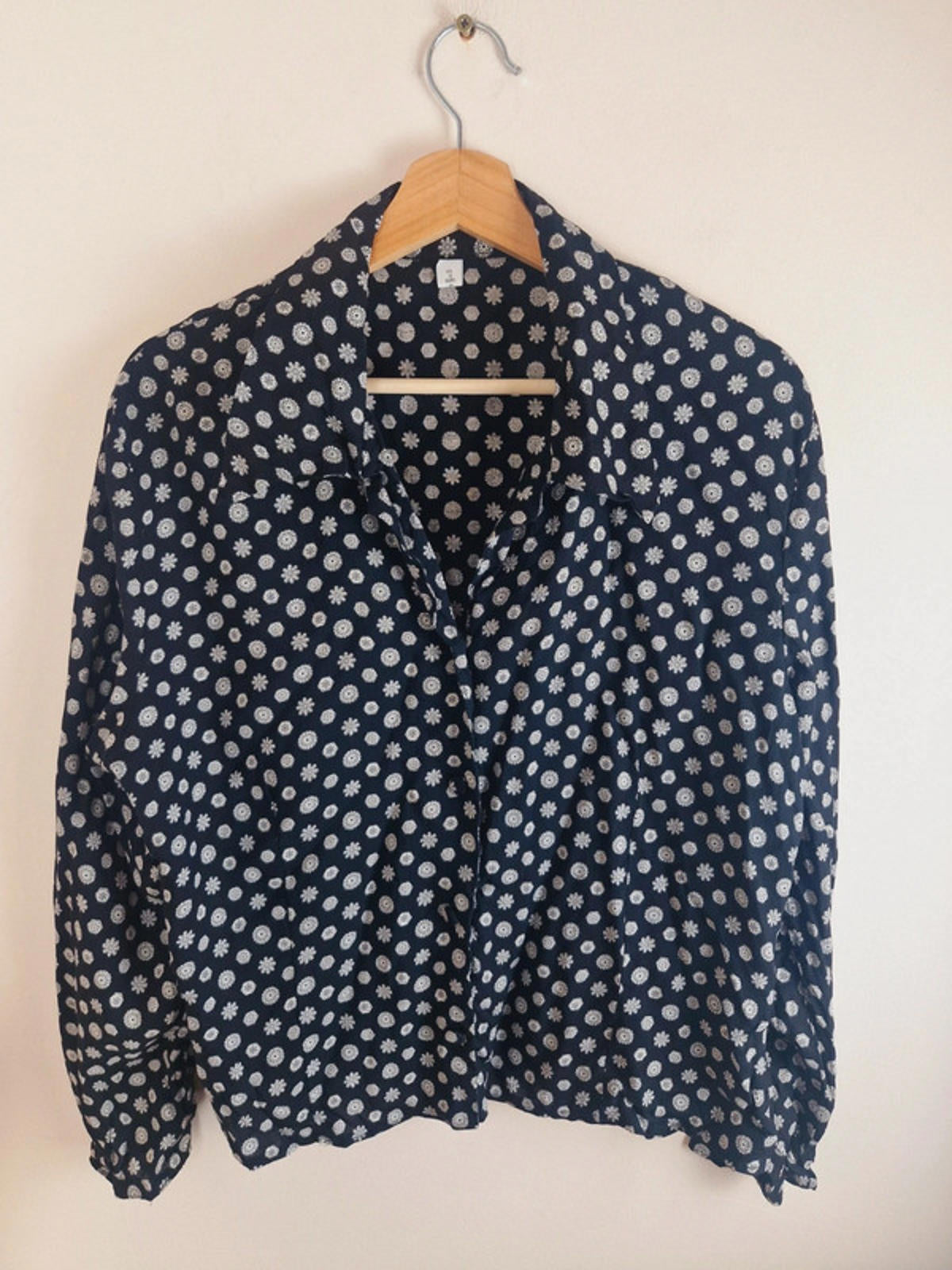 Womens Vintage Long Sleeve Shirt Top Blouse Print Black L