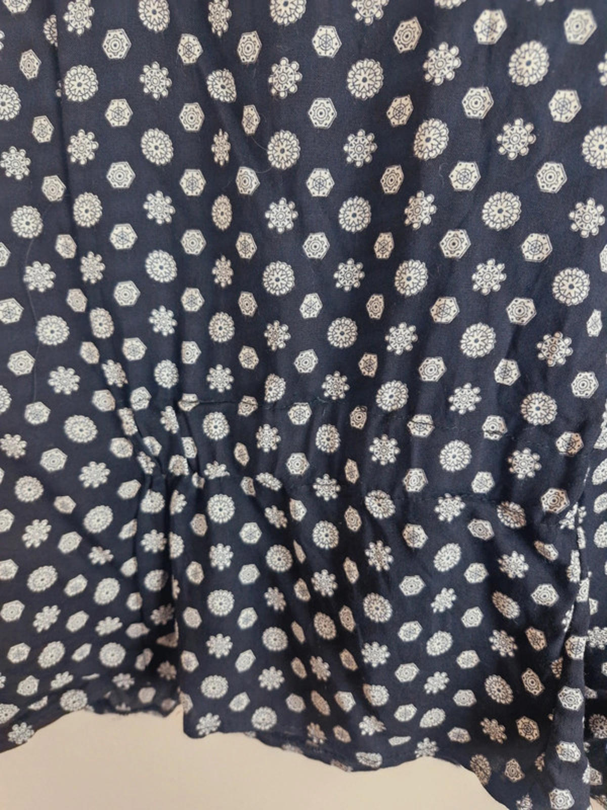 In good vintage condition. Is gathered with an elastic panel at the back which makes it more tailored. Labelled 18 but would fit modern UK16