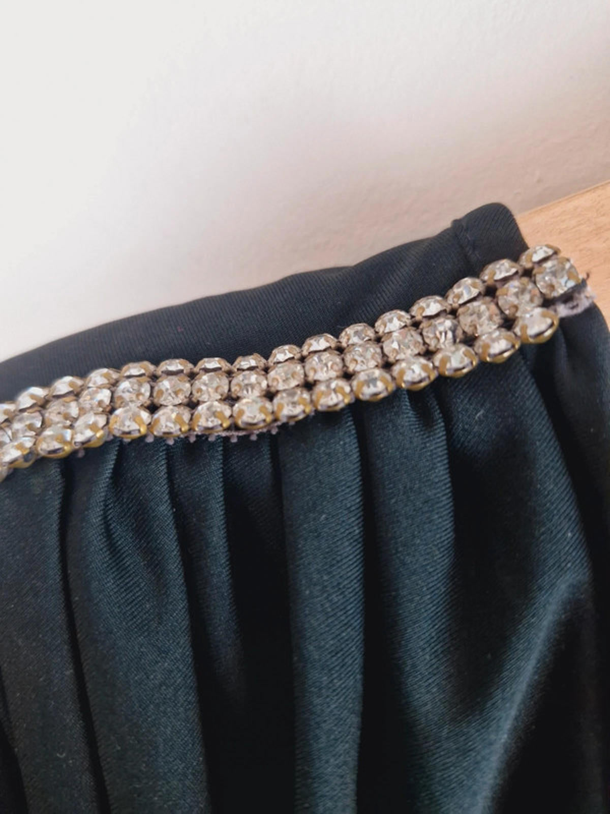 In good vintage condition - a few very light marks,some stitching undone at slit, care label removed, decoration not stitched down as much on 1 shoulder, and 1 gem missing all as shown