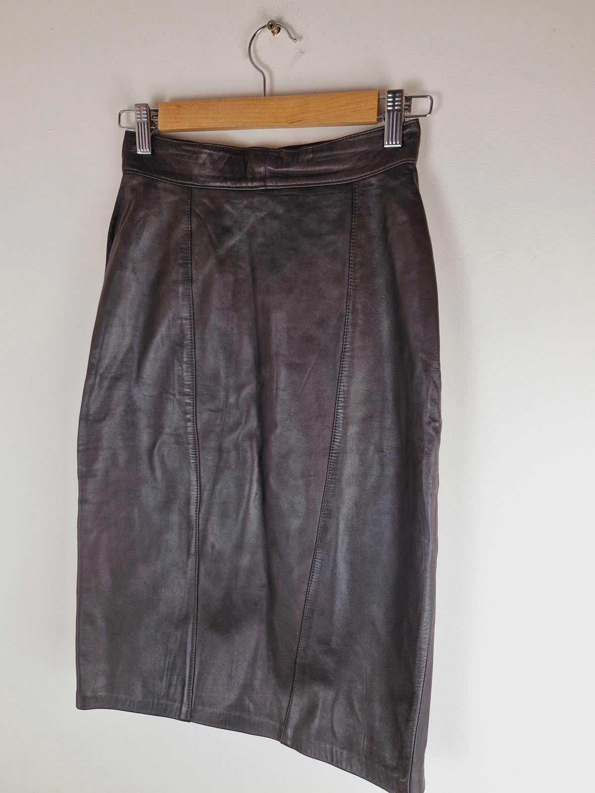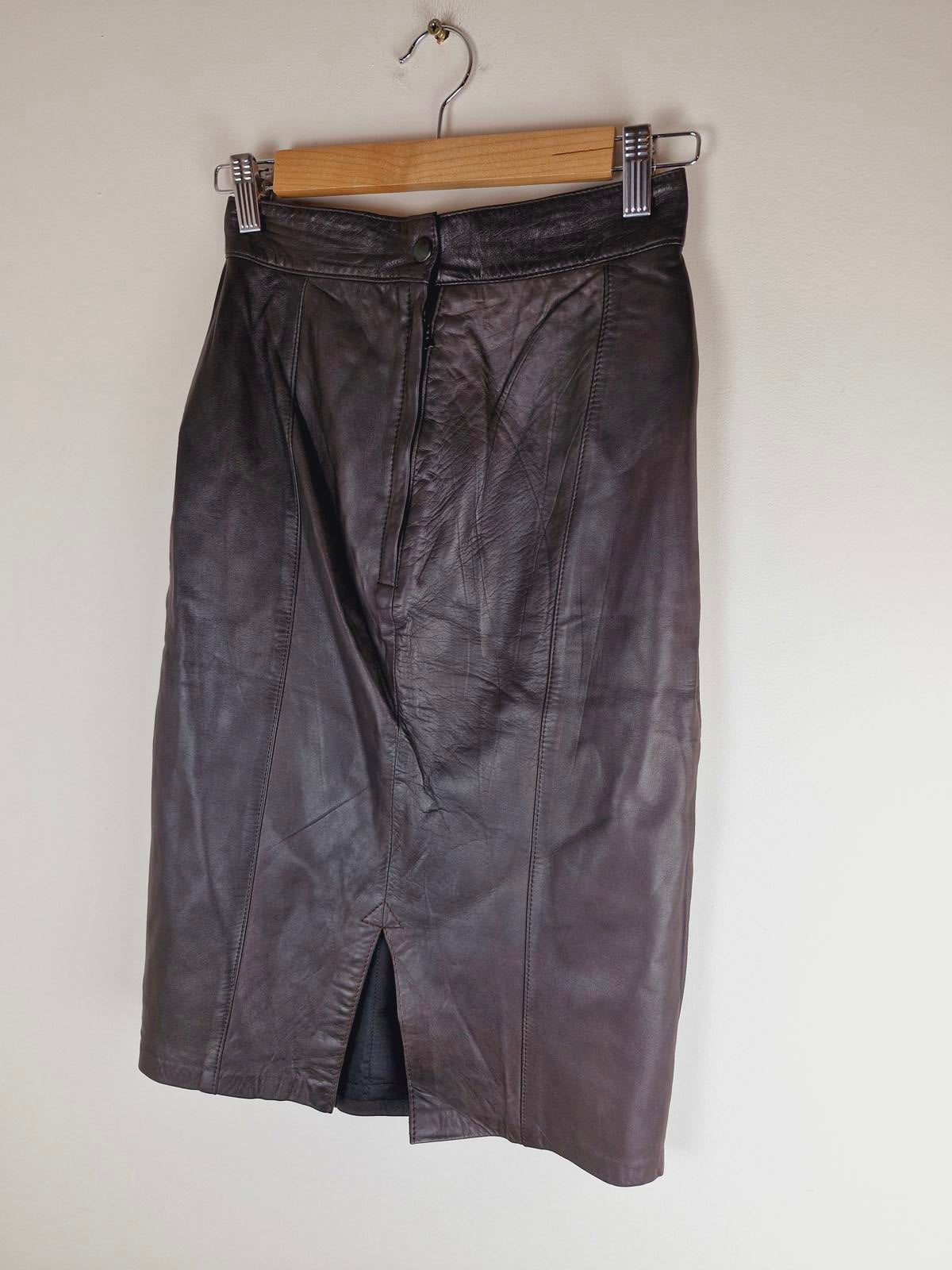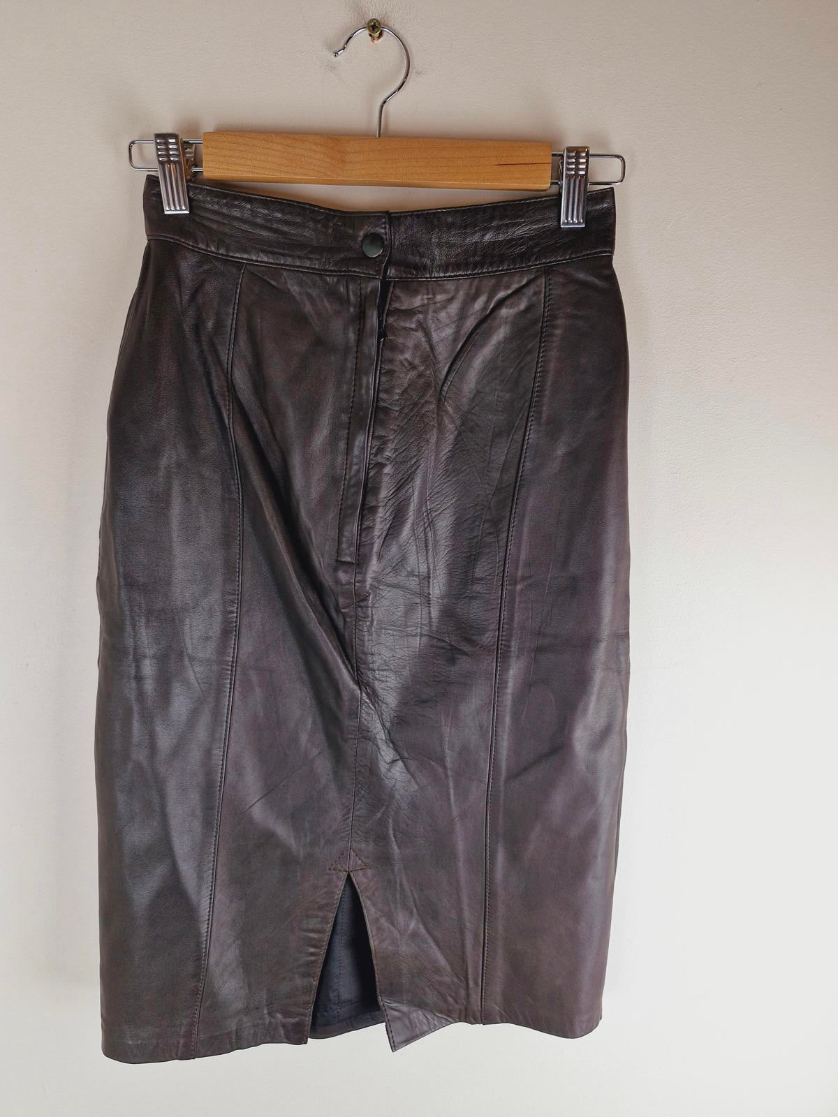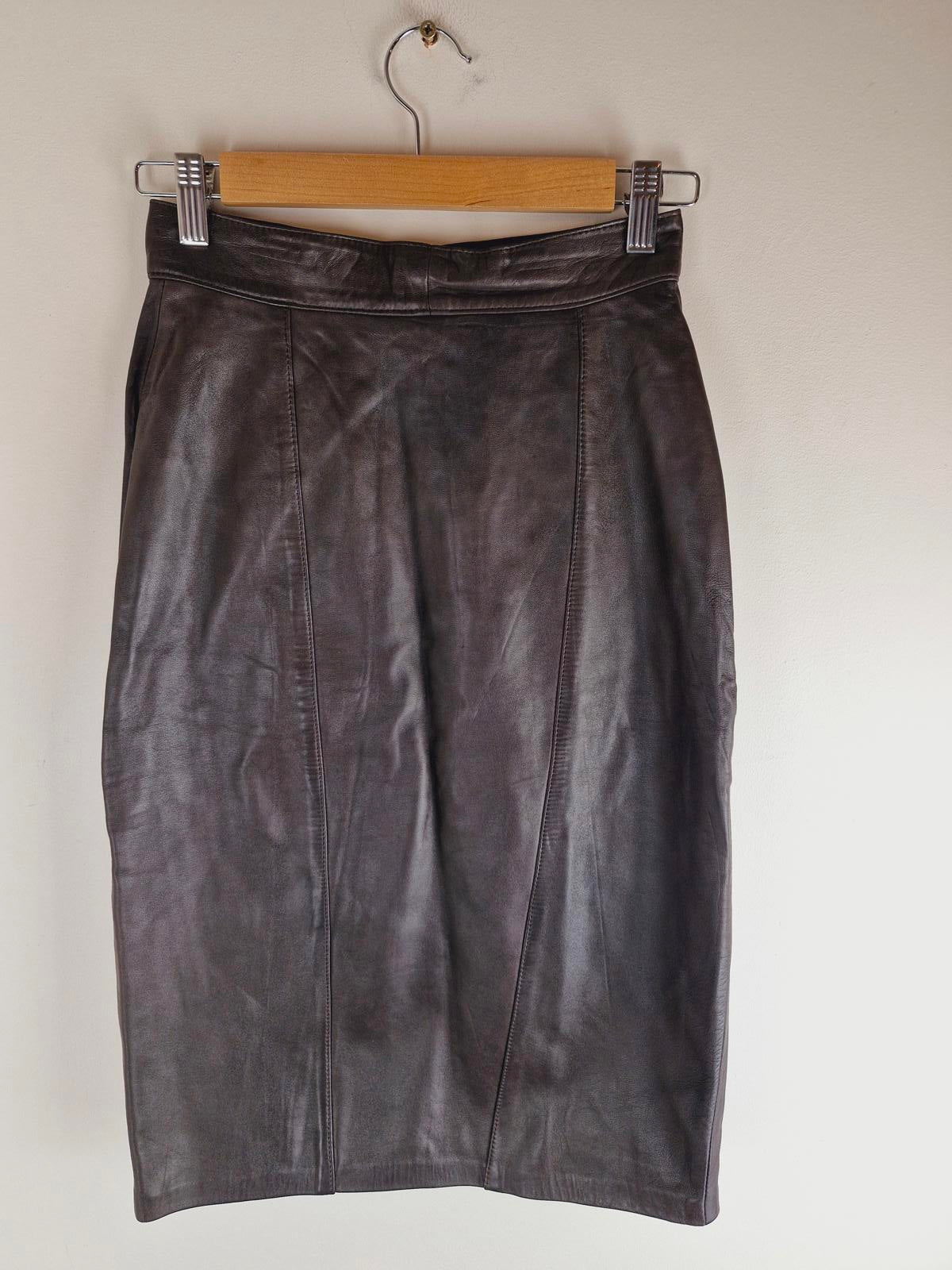 Womens Vintage Real Leather Jane Norris Skirt Pencil XS