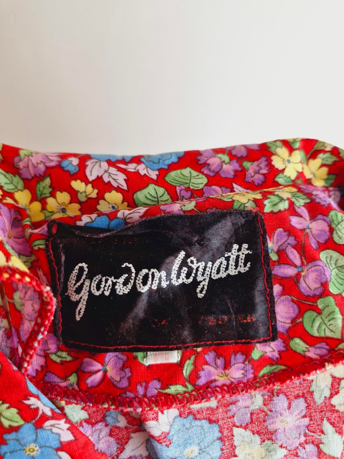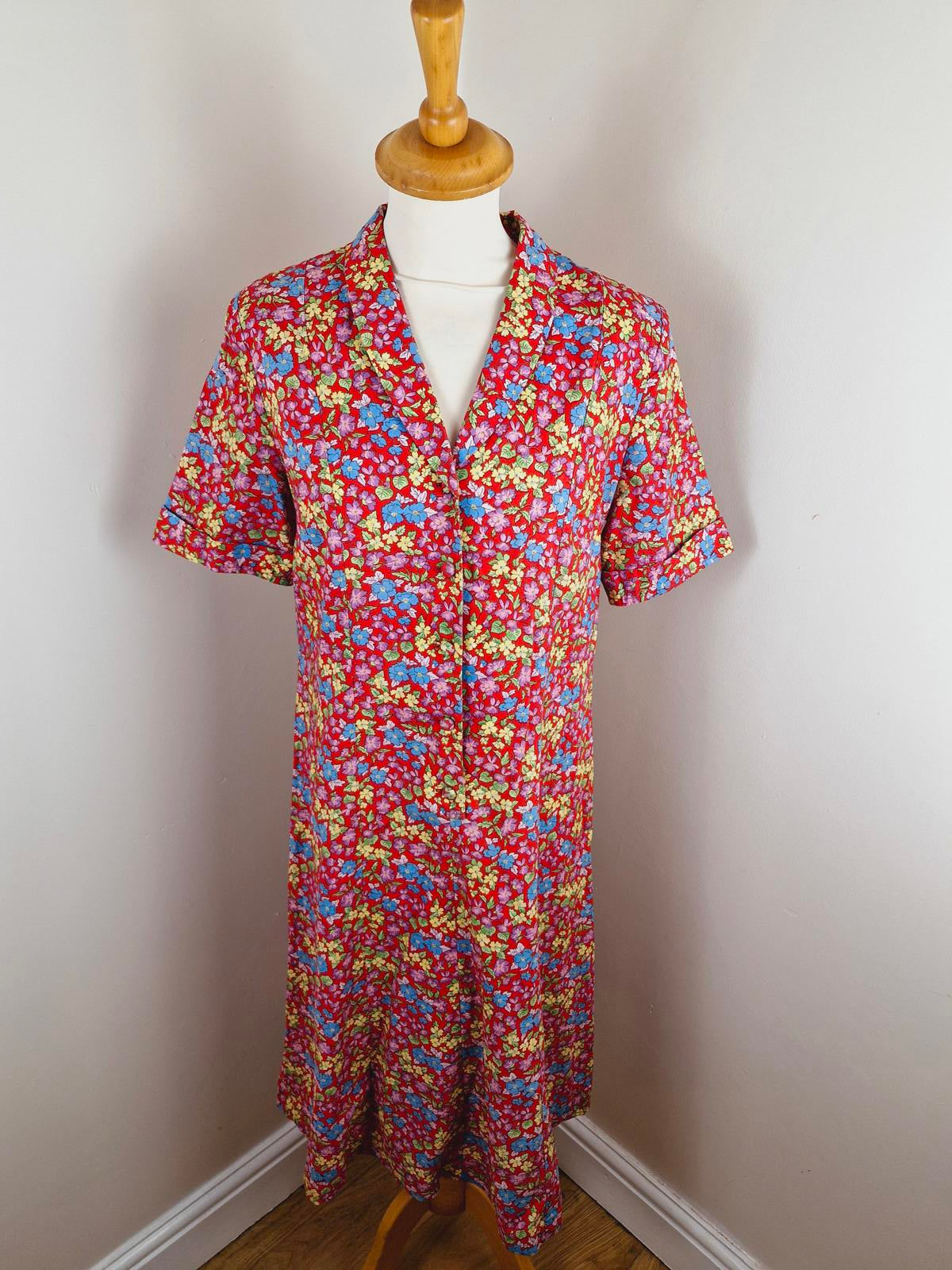 Womens Vintage retro 1970s 70s Gordon Wyatt Midi red floral teadress dress M