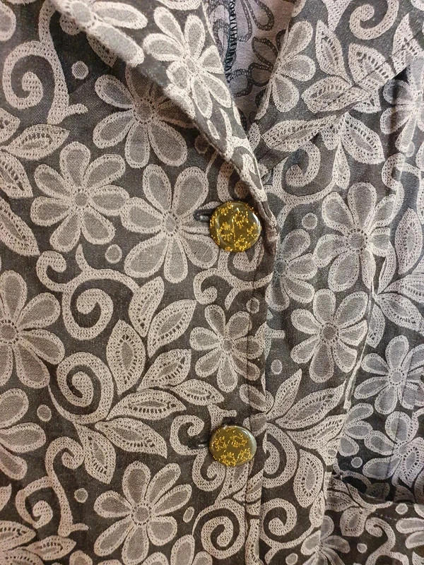 In good vintage condition - light mark on sleeve. Great print and buttons.