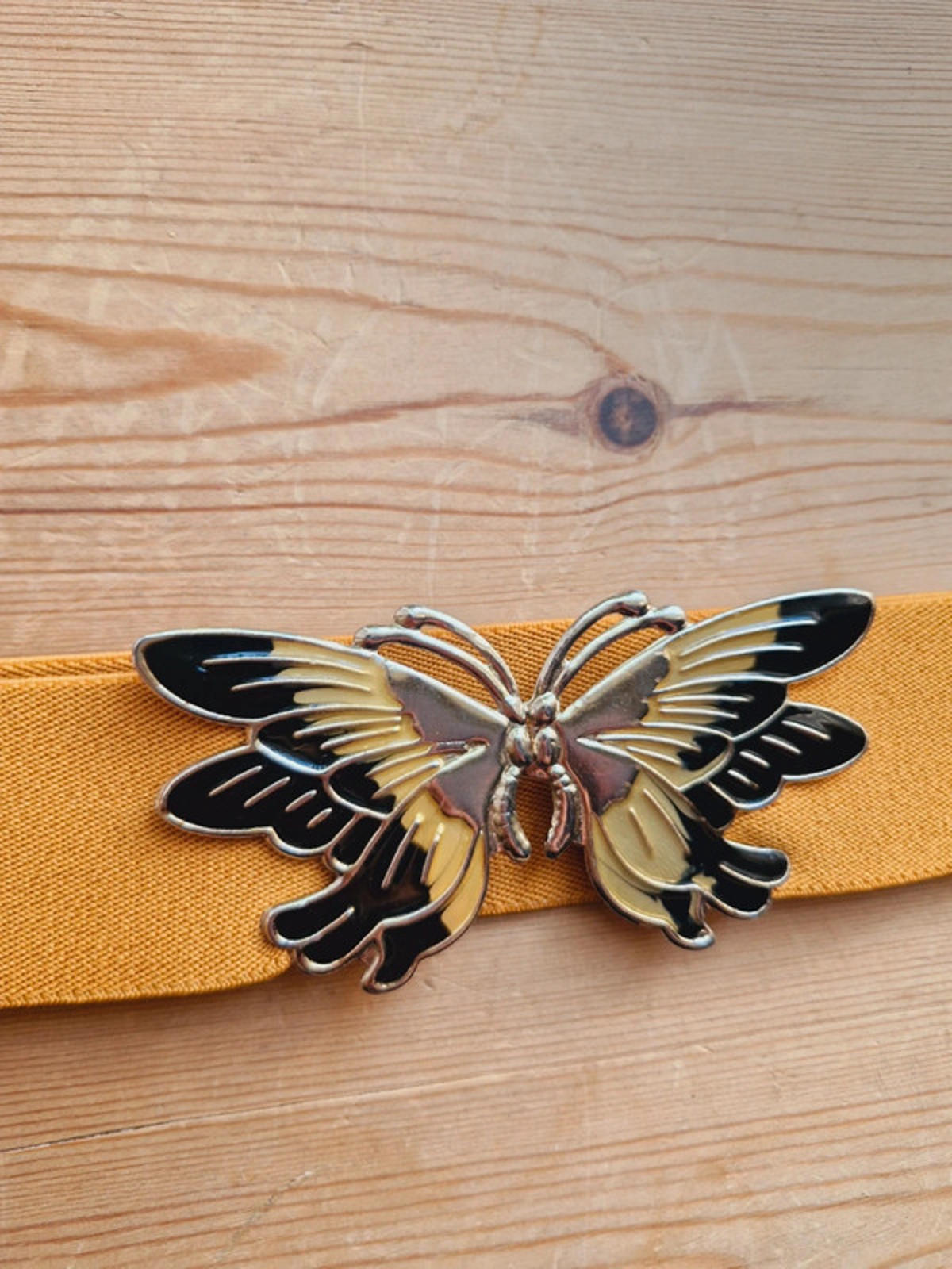 Womens Vintage Retro Butterfly Stretchy Belt Buckle