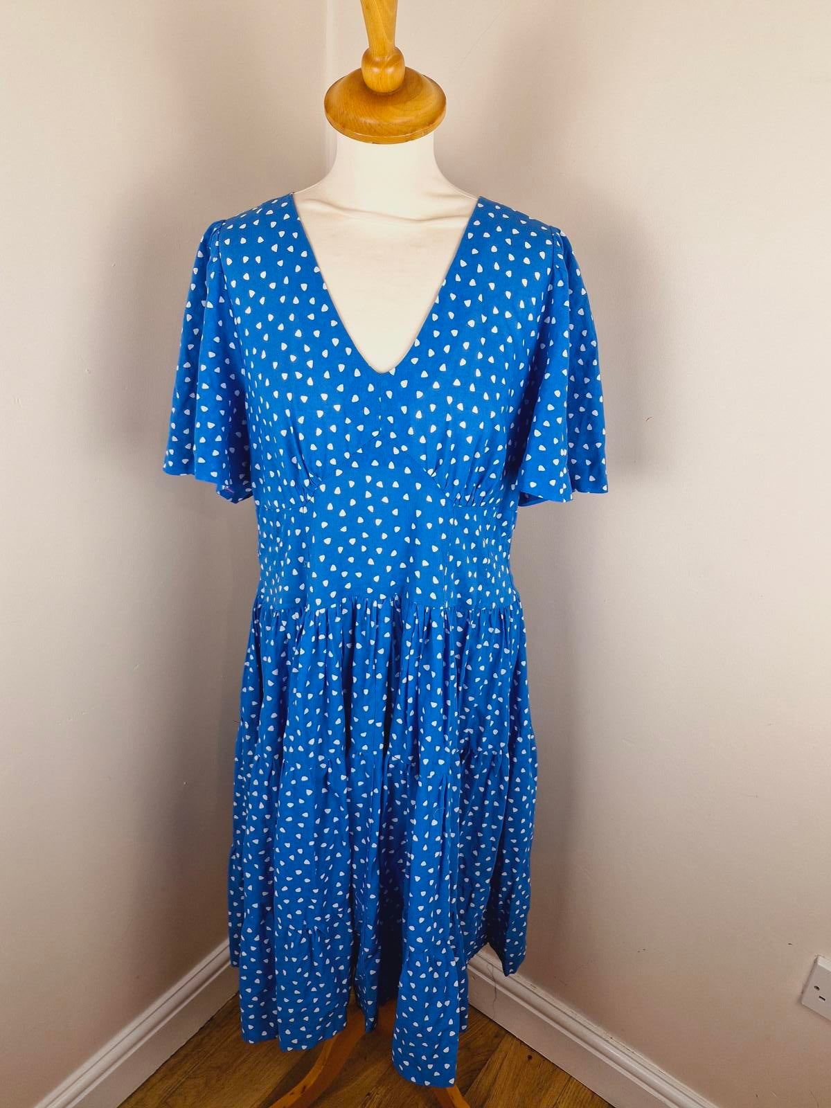 Womens Vintage Retro Handmade Midi Long Blue Spotty Dress Teadress UK14 M L